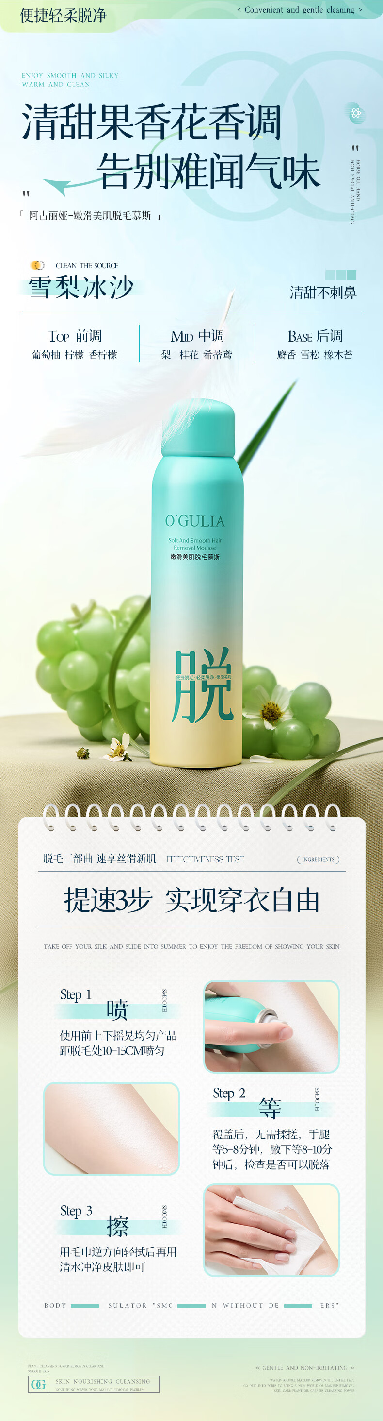 BEAUTY NOTES Hair Removal Cream Spray Armpits Private Parts Hands and Legs Hair Removal Cream Men and Women Non-Never Hair Removal Mousse 150ml