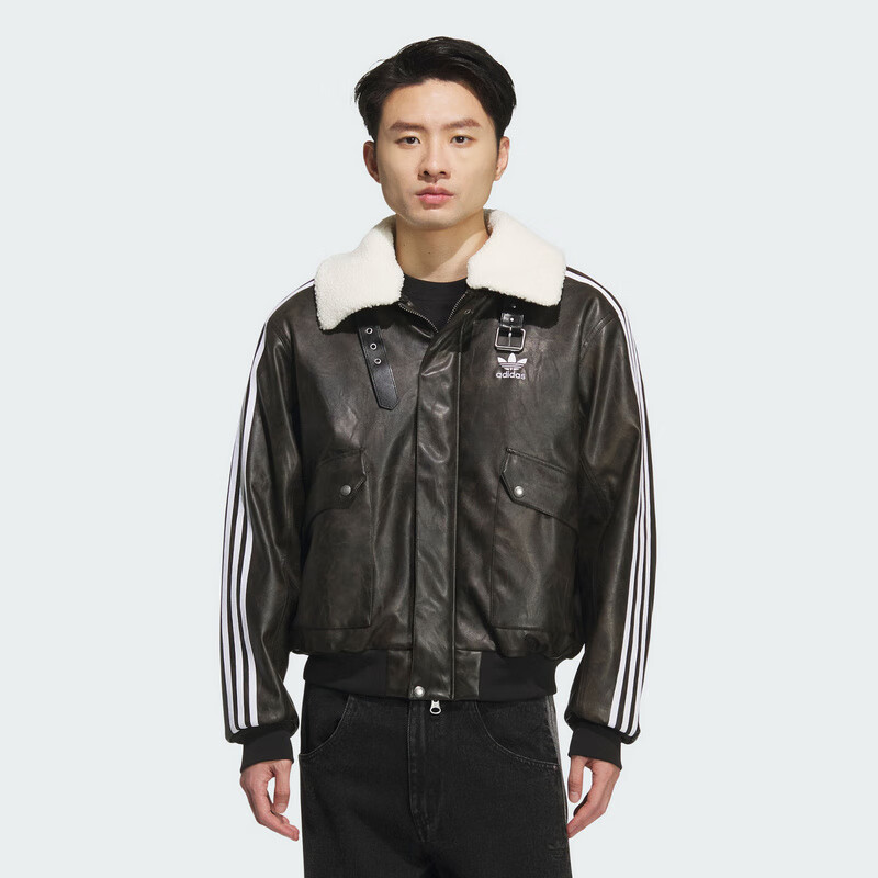 Adidas Clover Series Men's NEW PU PAD JKT Leather Jacket Short Cotton Jacket KF3691 Black M