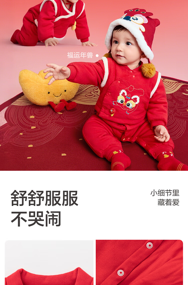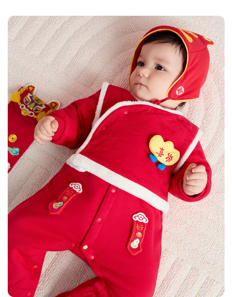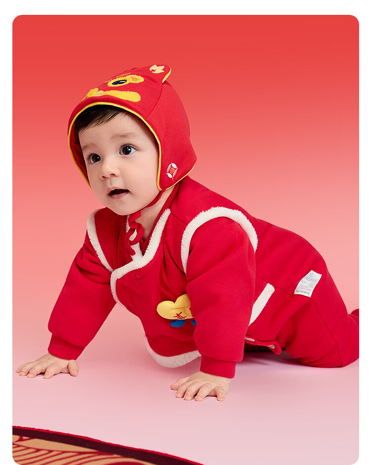 Balabala children's clothing baby jumpsuit baby New Year's clothing romper suit hayi 2025 new winter clothing bag fart clothing festive and cute