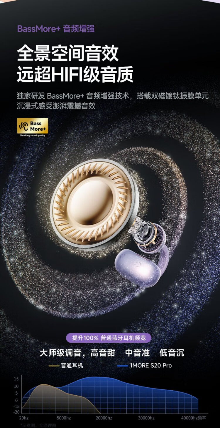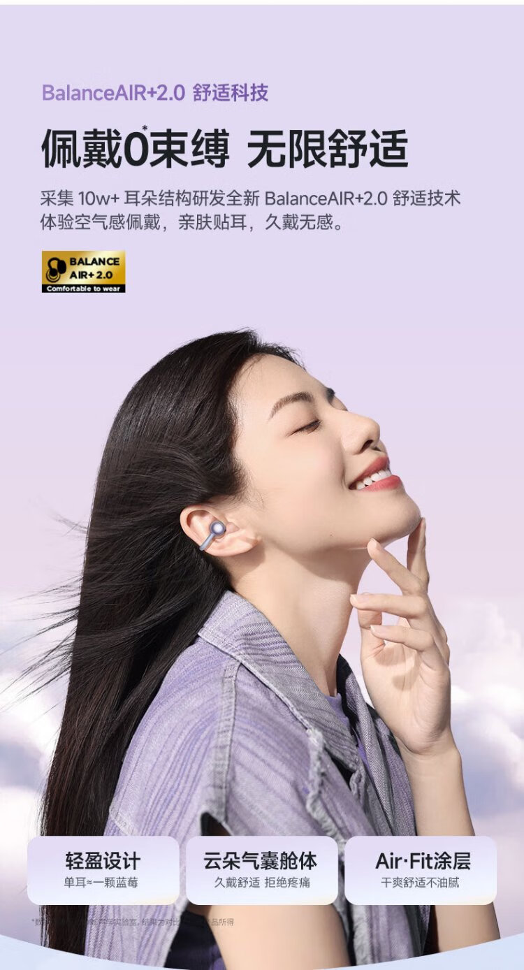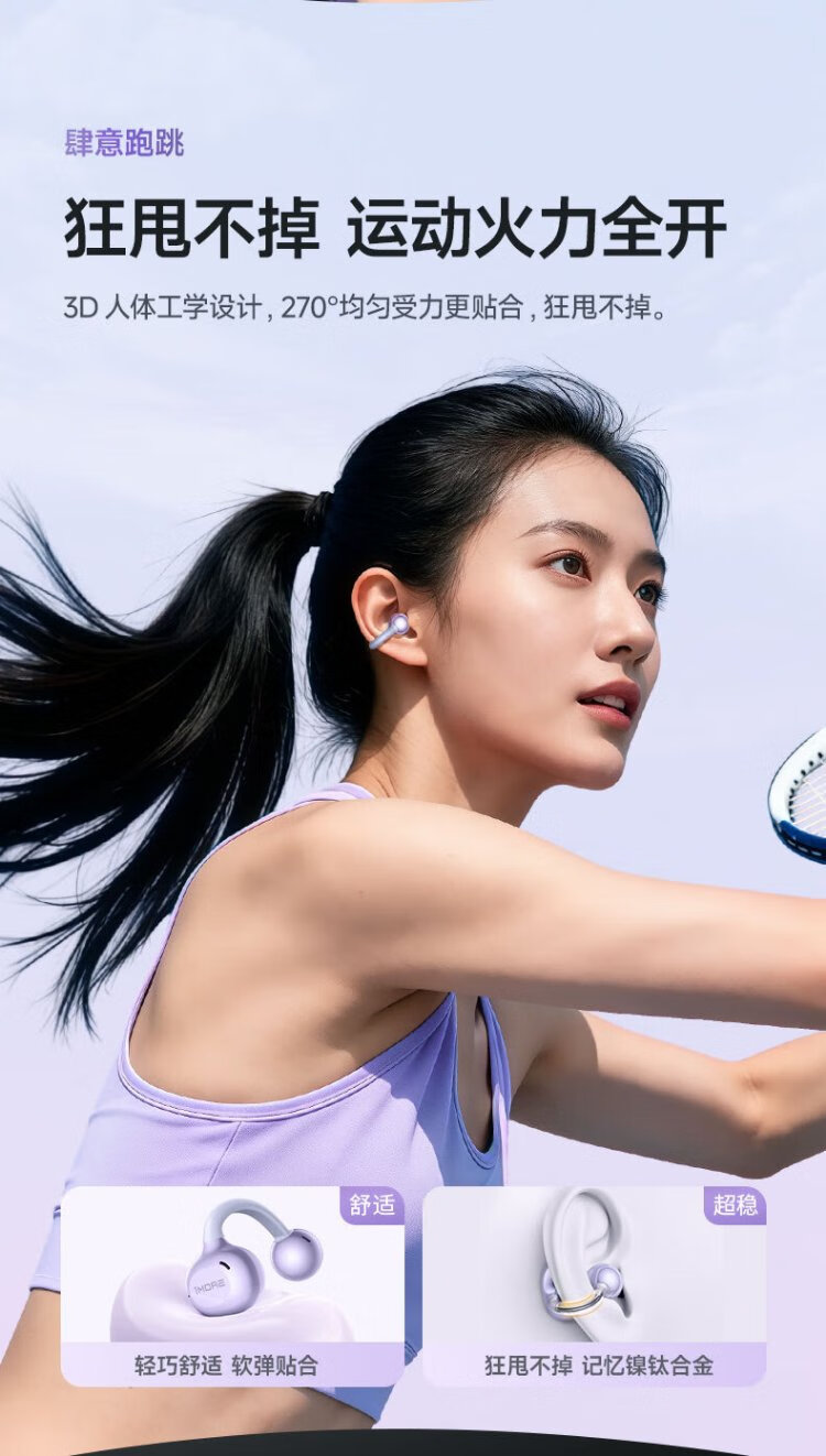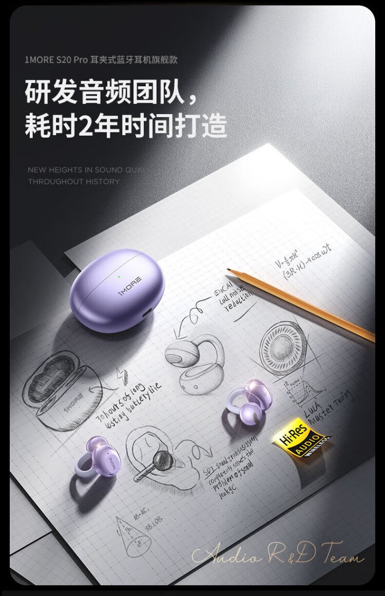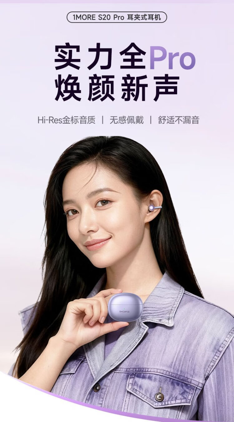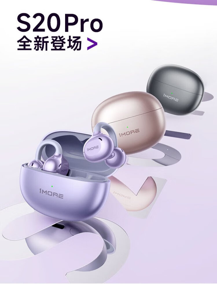 Wanmo (1MORE) S20Pro Bluetooth headset ear clip type non-in-ear open type air bone conduction concept sports long battery life call noise reduction suitable for mobile phone Jay Chou texture black