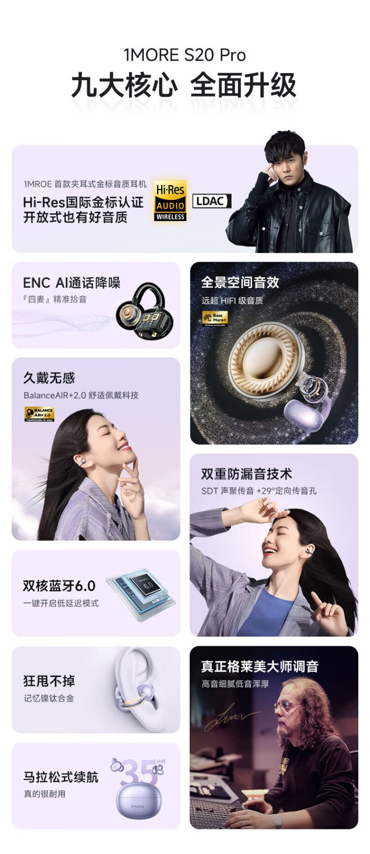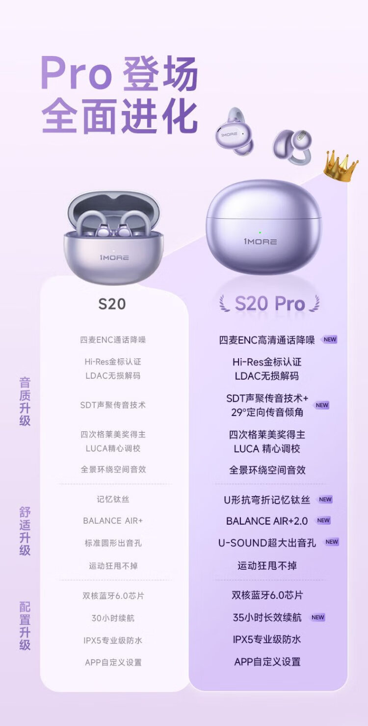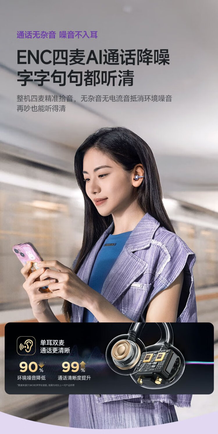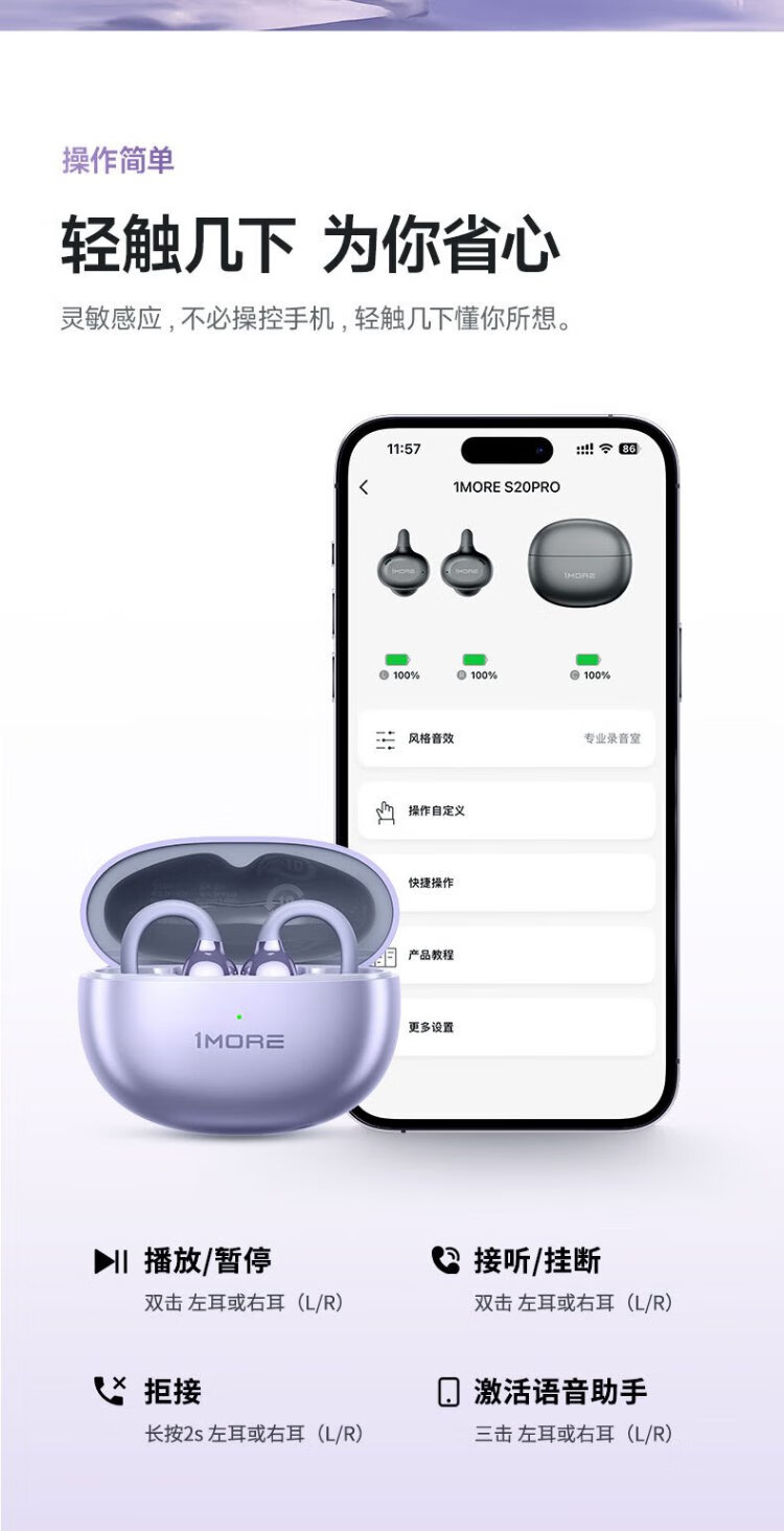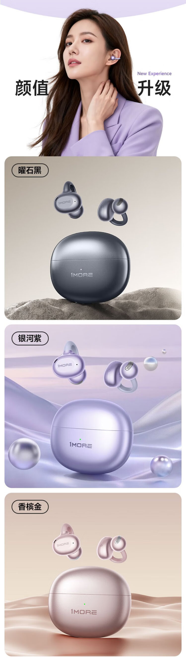 Wanmo (1MORE) S20Pro Bluetooth headset ear clip type non-in-ear open type air bone conduction concept sports long battery life call noise reduction suitable for mobile phone Jay Chou texture black
