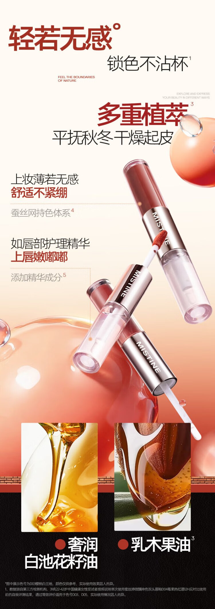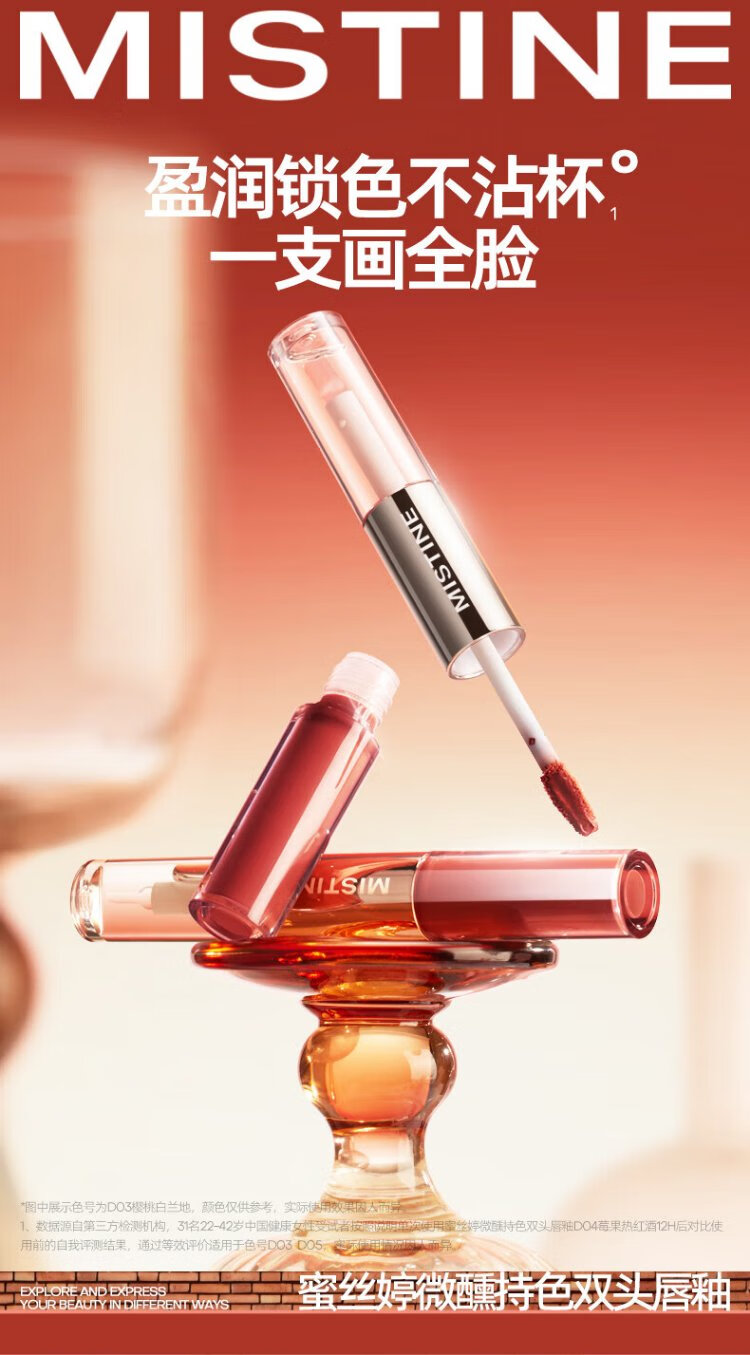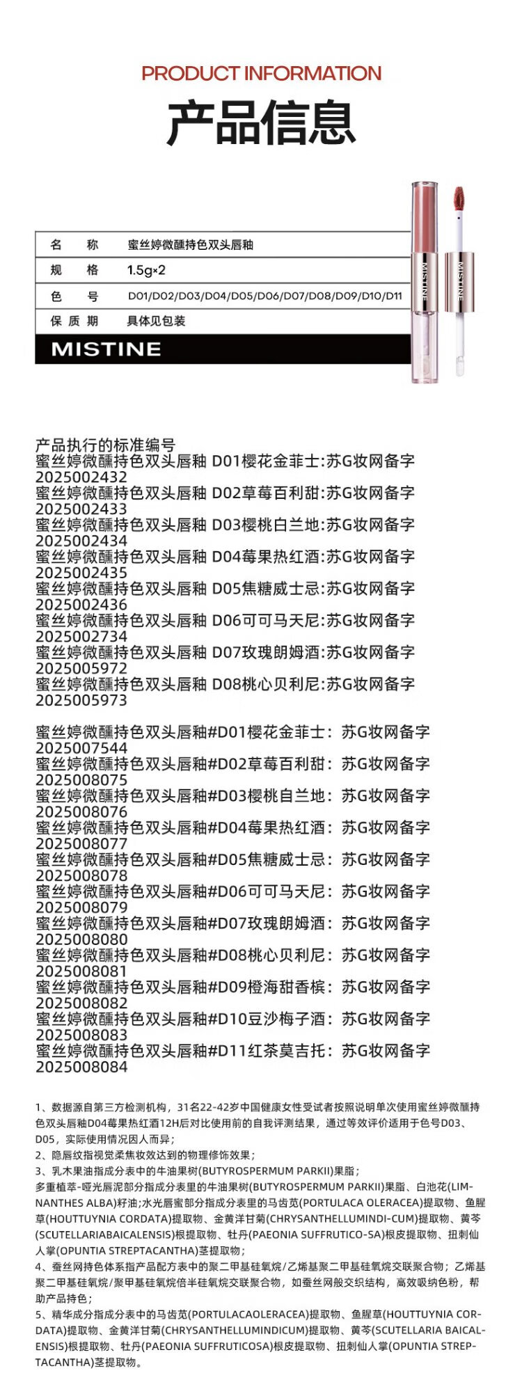 Mistine double-ended lip glaze slightly drunk non-stick lipstick D05 caramel whiskey Christmas gift for girlfriend