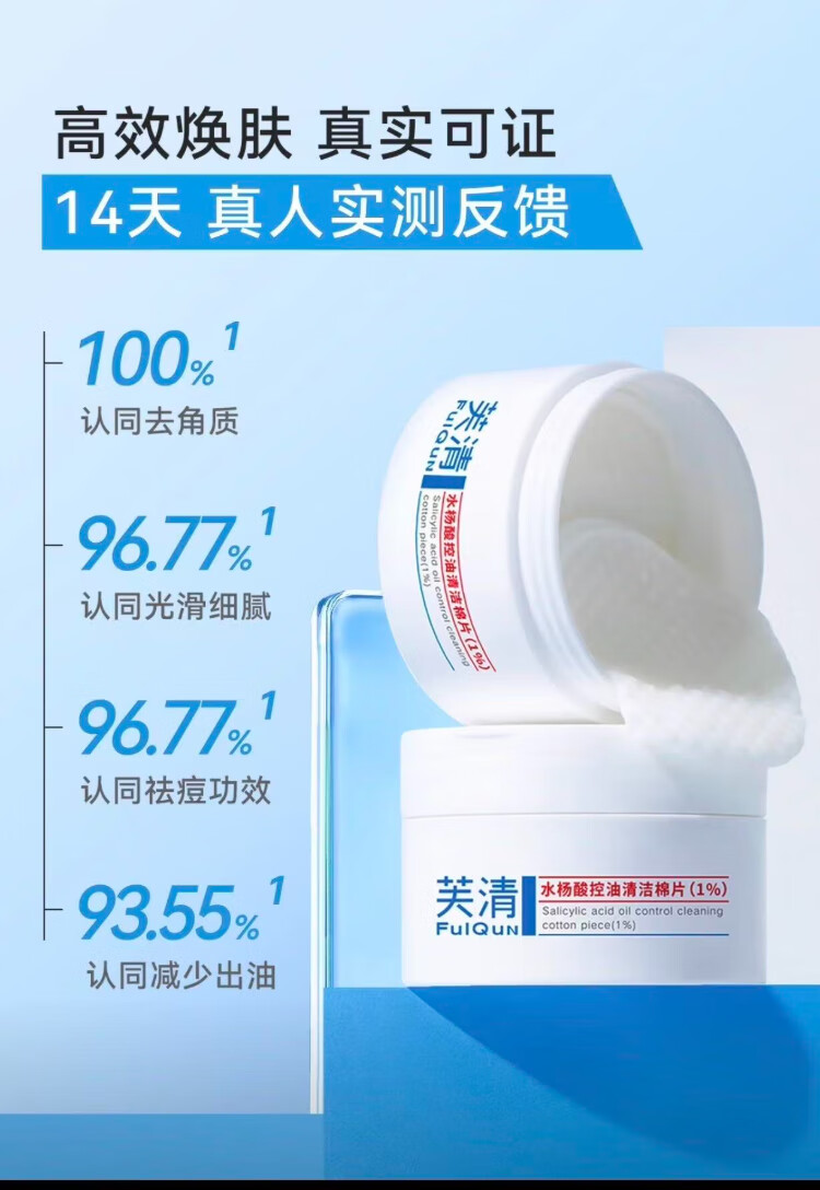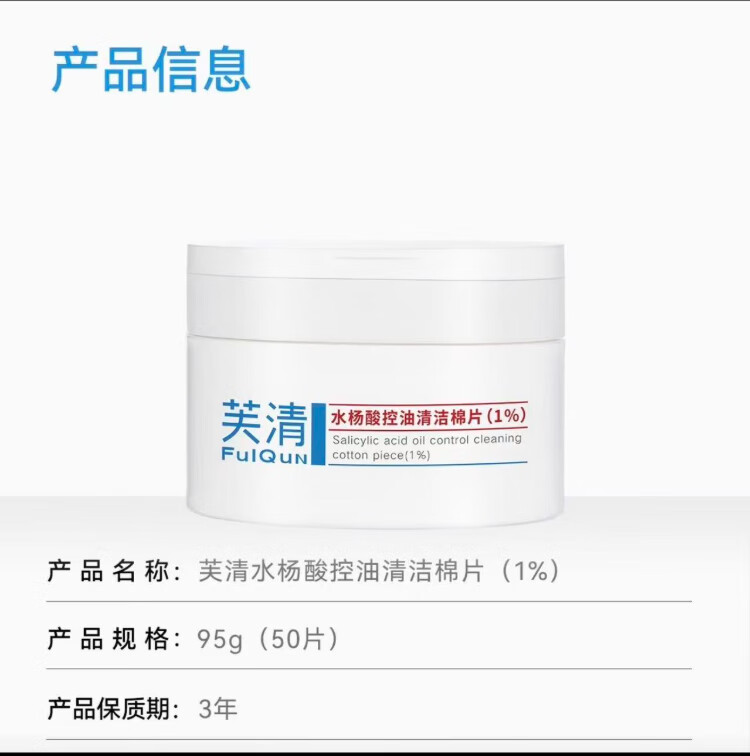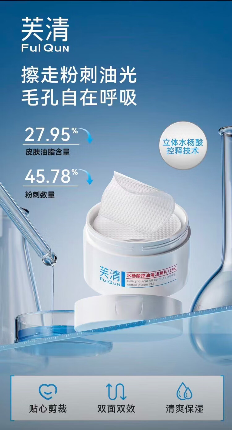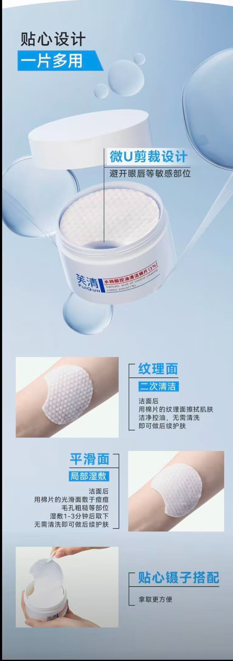 Fuqing Salicylic Acid Oil Control Cleansing Cotton Tablets (1%) 95g Anti-acne Oil Control Removes Closed Acne and Cuticles Clearance