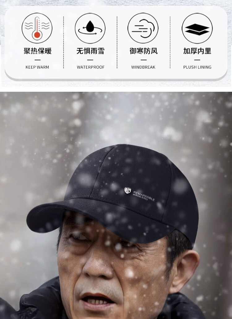 Catman Hat Men's Winter Plush Warm Peaked Cap Men's Outdoor Windproof and Rainproof Fishing Sports Baseball Hat Black