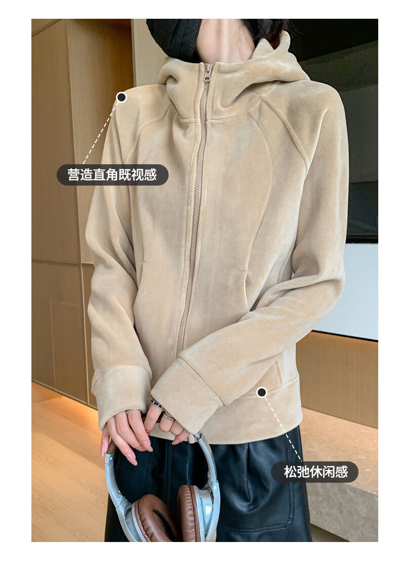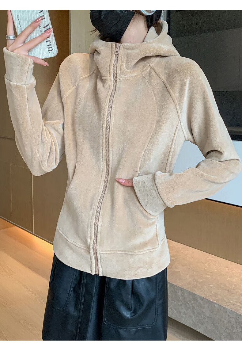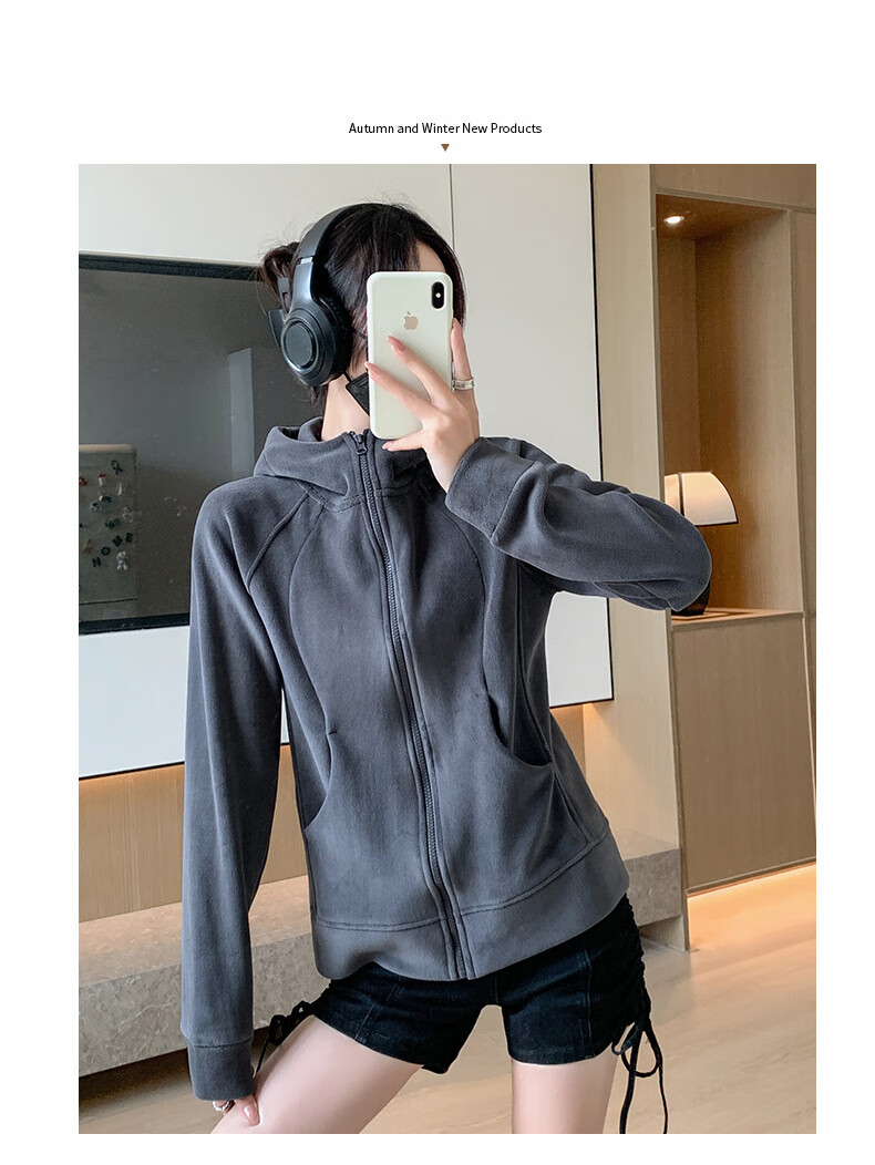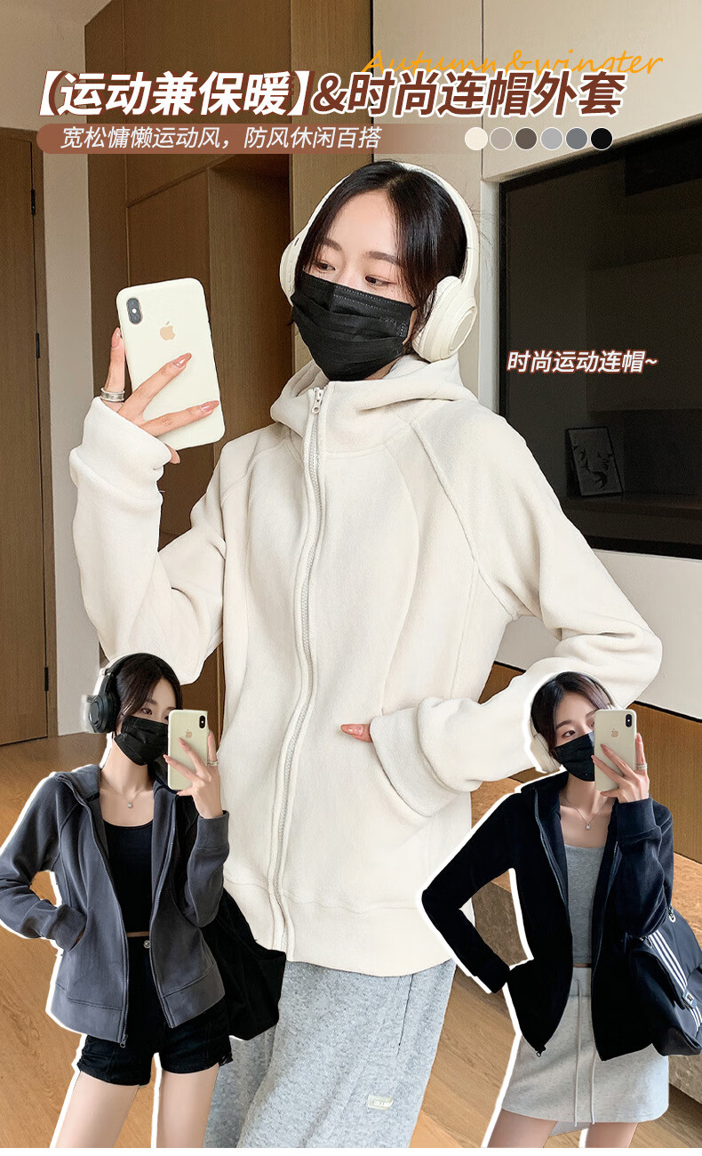Langsha Polar Fleece Jacket Women's Winter 2025 New Hooded Sweatshirt Plus Velvet Cardigan Slim Yoga Wear Sports Top