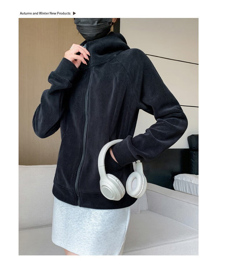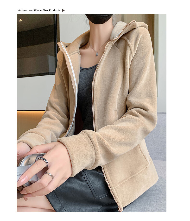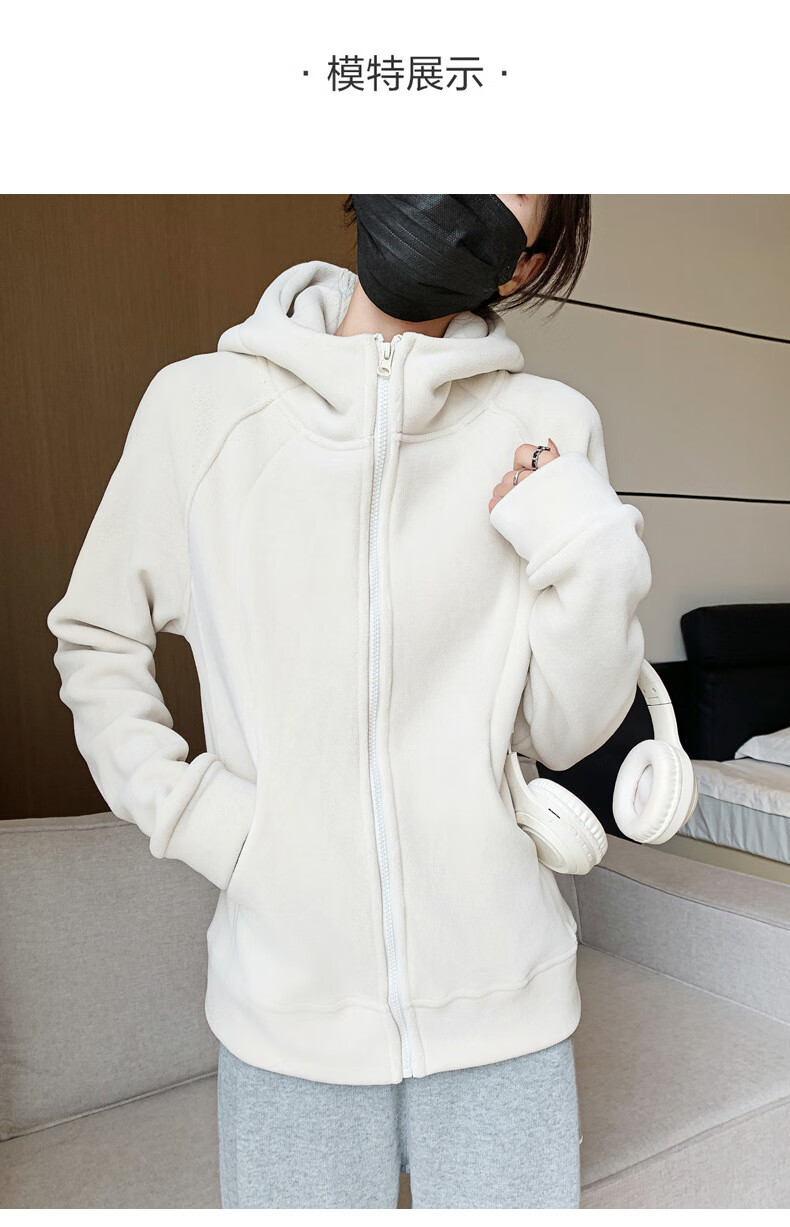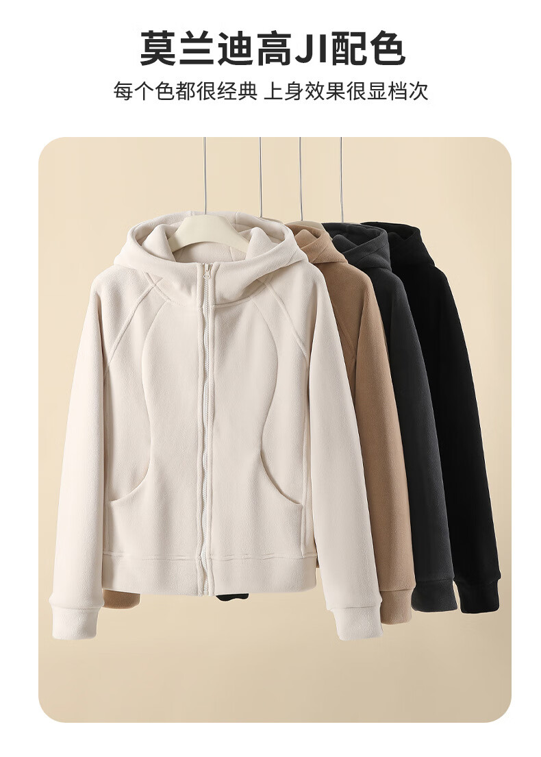 Langsha Polar Fleece Jacket Women's Winter 2025 New Hooded Sweatshirt Plus Velvet Cardigan Slim Yoga Wear Sports Top
