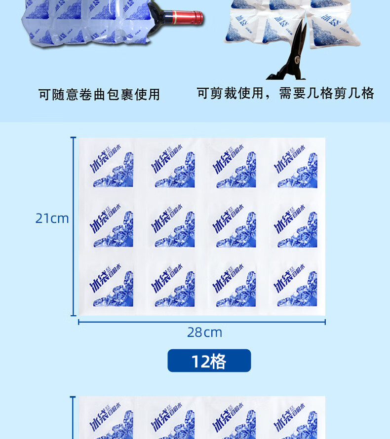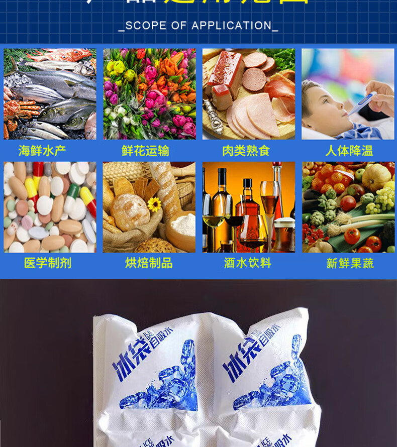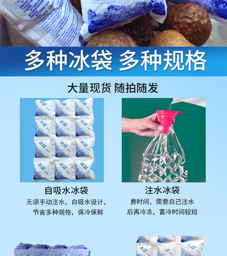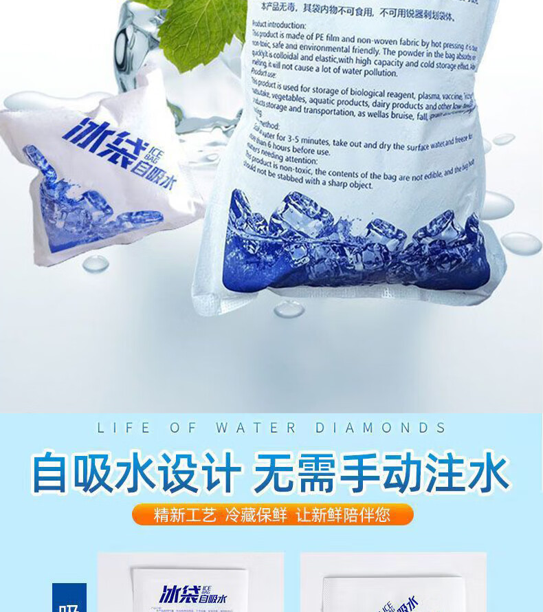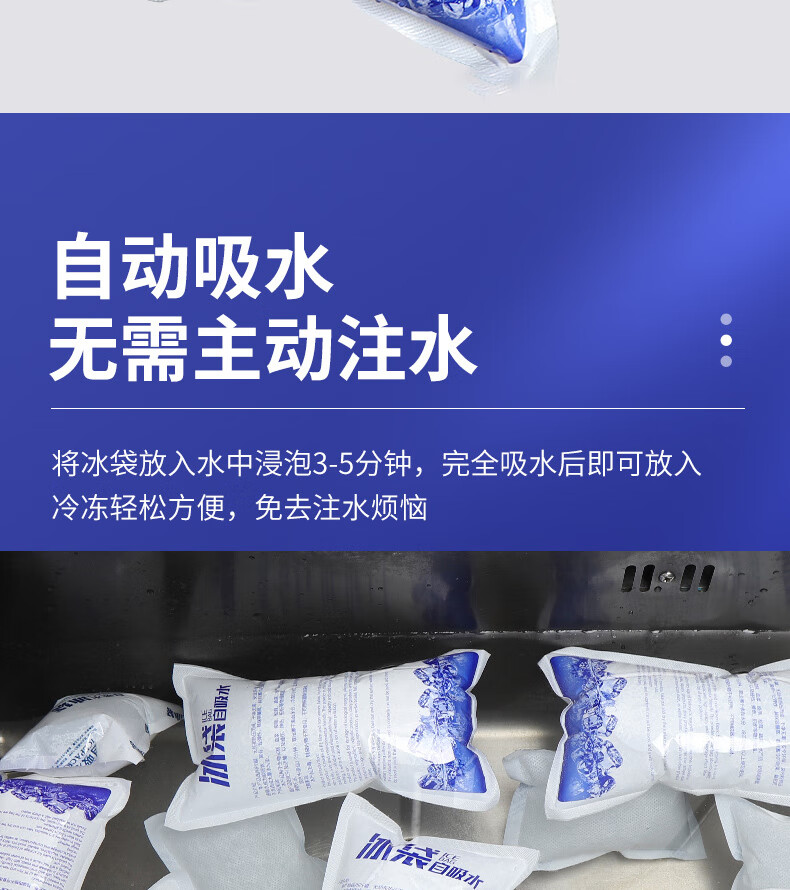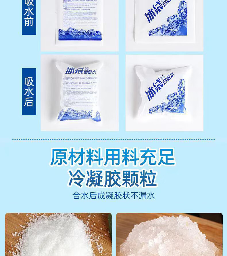 Jiujie self-absorbing water ice bag reusable cooling cold compress bag can be used for cold chain express seafood cold preservation ice bag 400ML*50 pieces