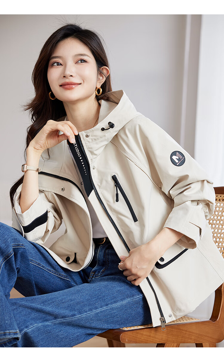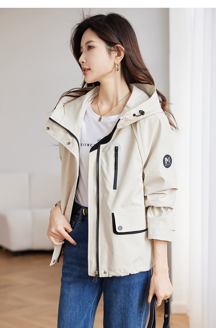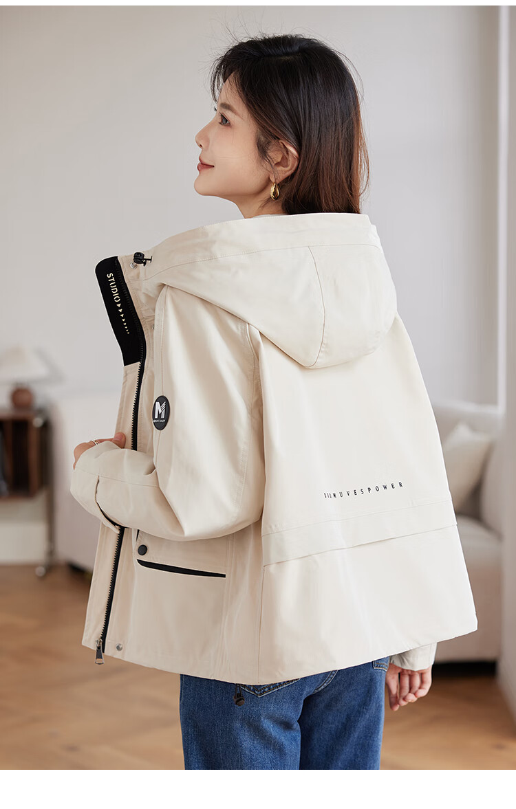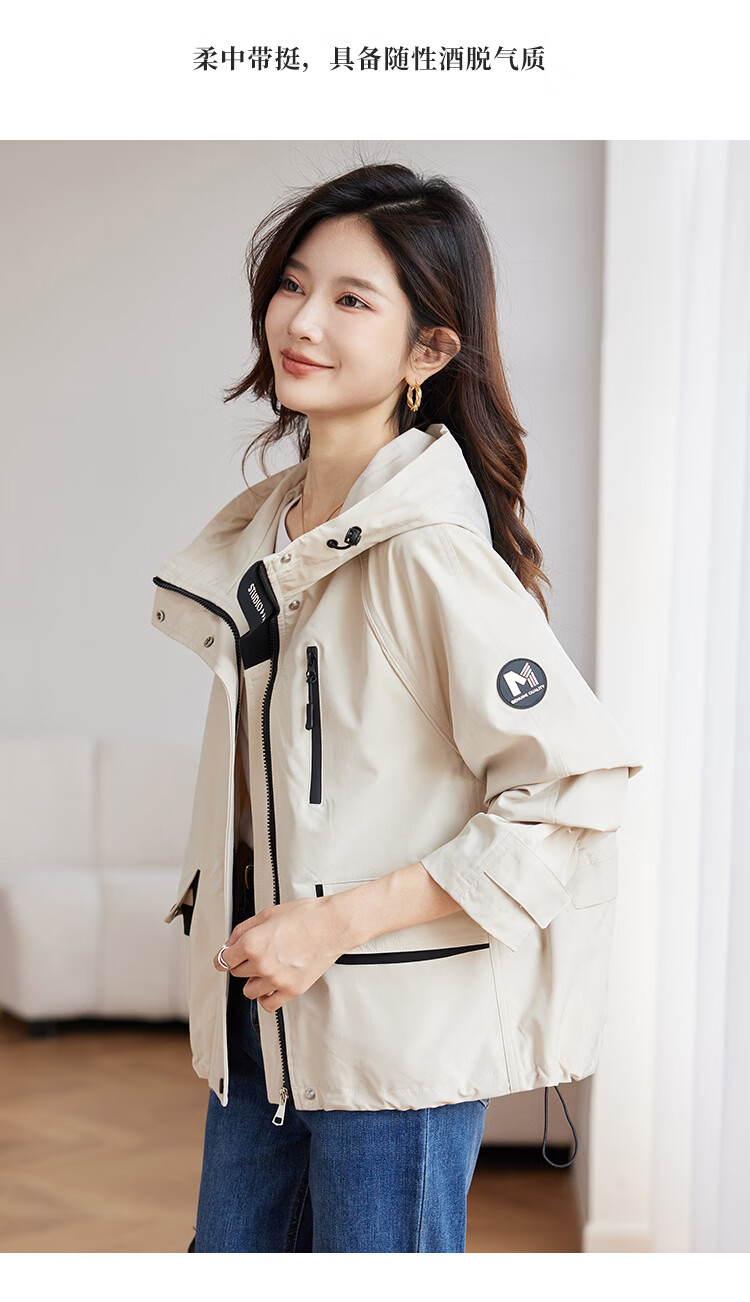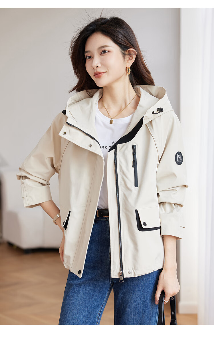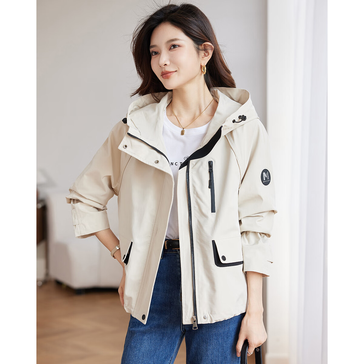 TERRE BLEUE fashionable versatile jacket for women 2025 autumn new age-reducing hooded cardigan windbreaker beige M