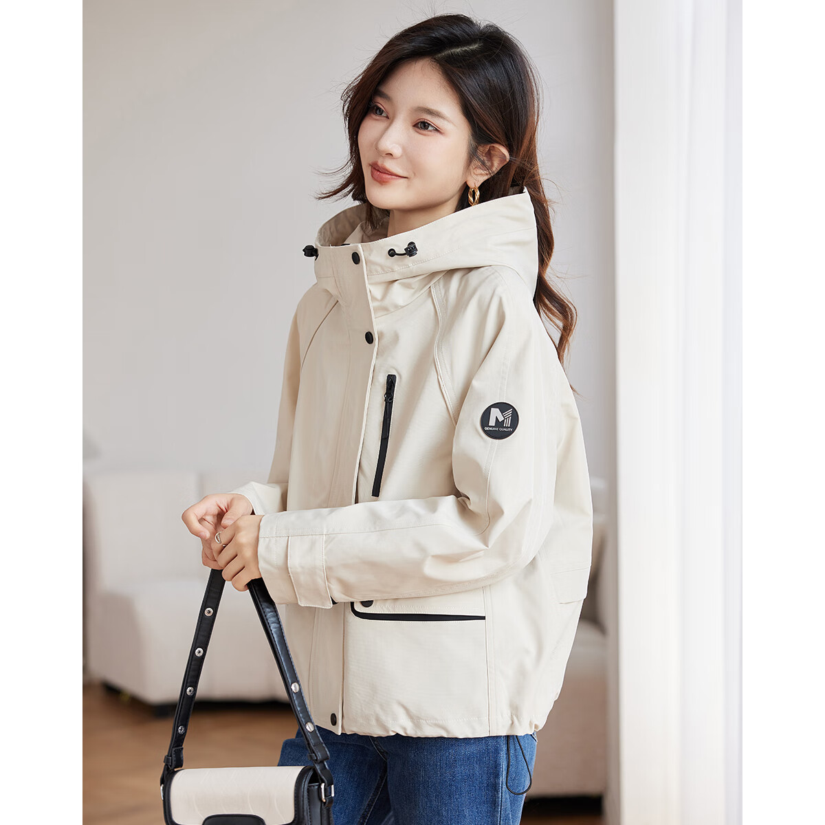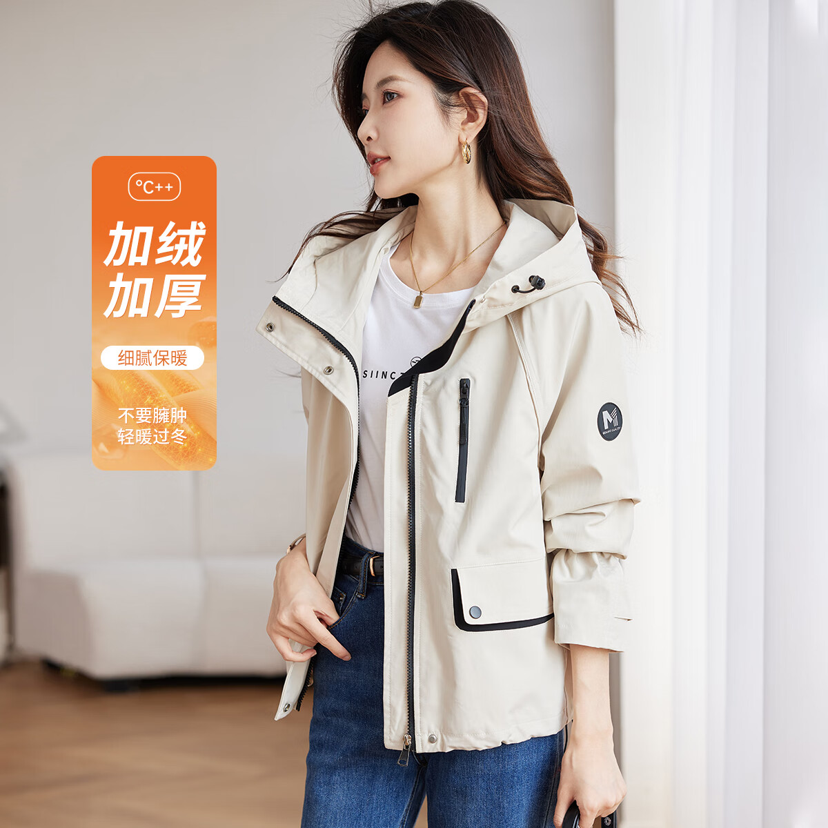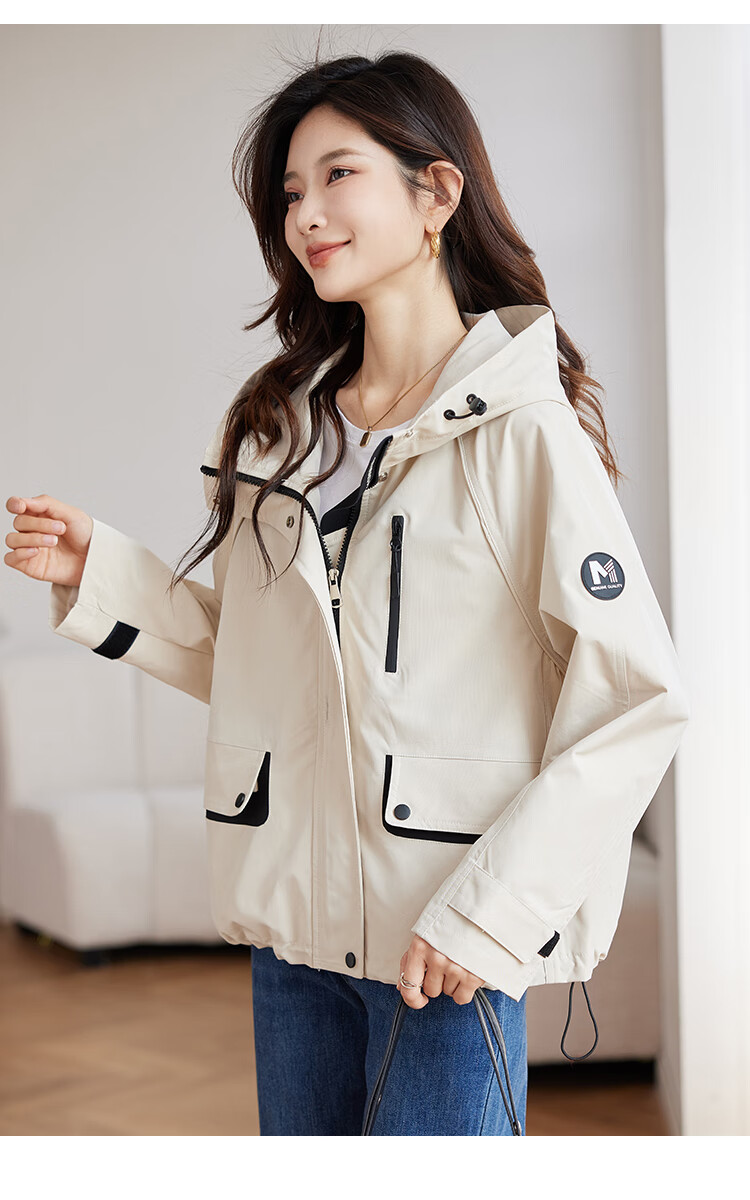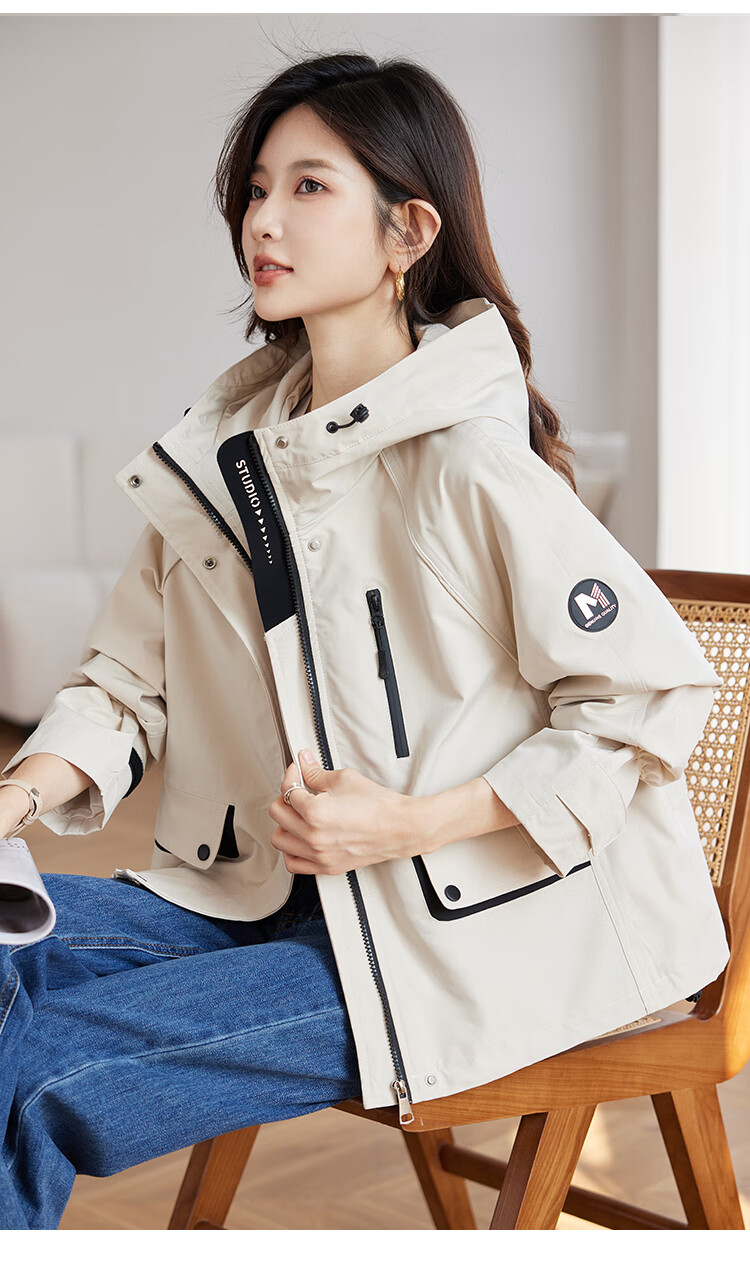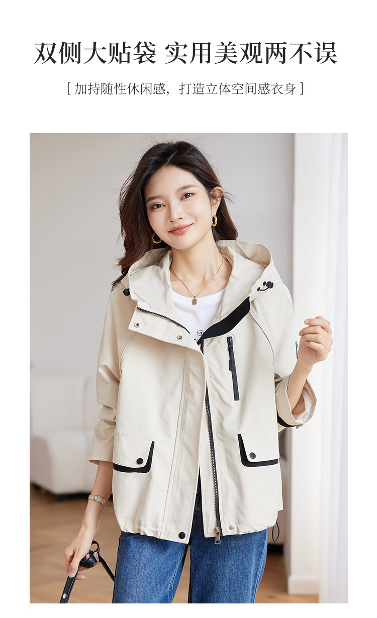 TERRE BLEUE fashionable versatile jacket for women 2025 autumn new age-reducing hooded cardigan windbreaker beige M