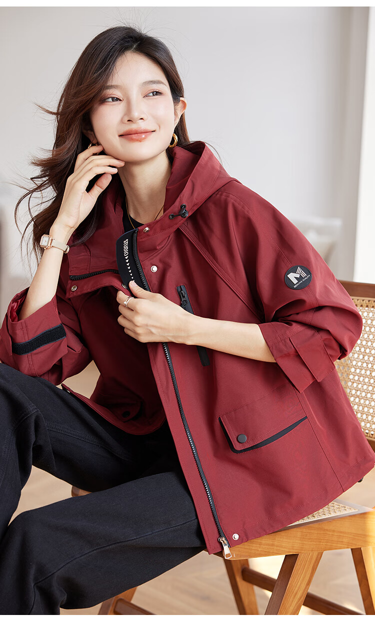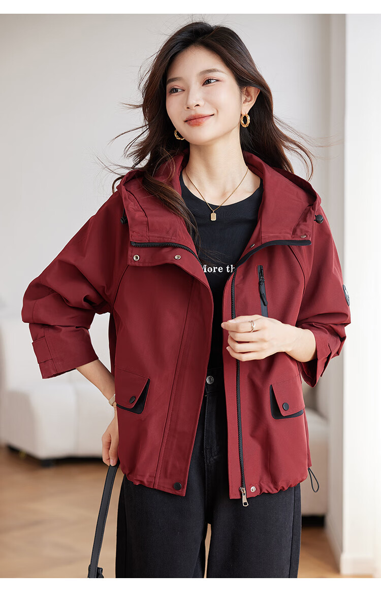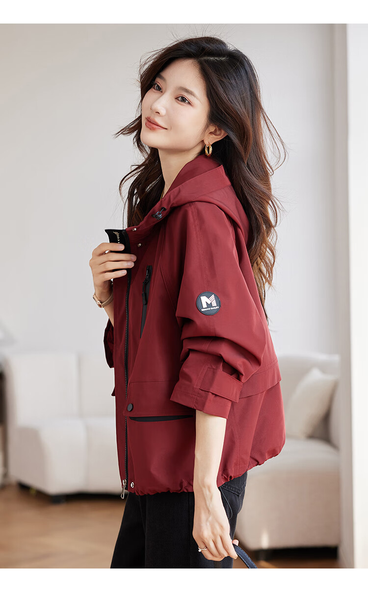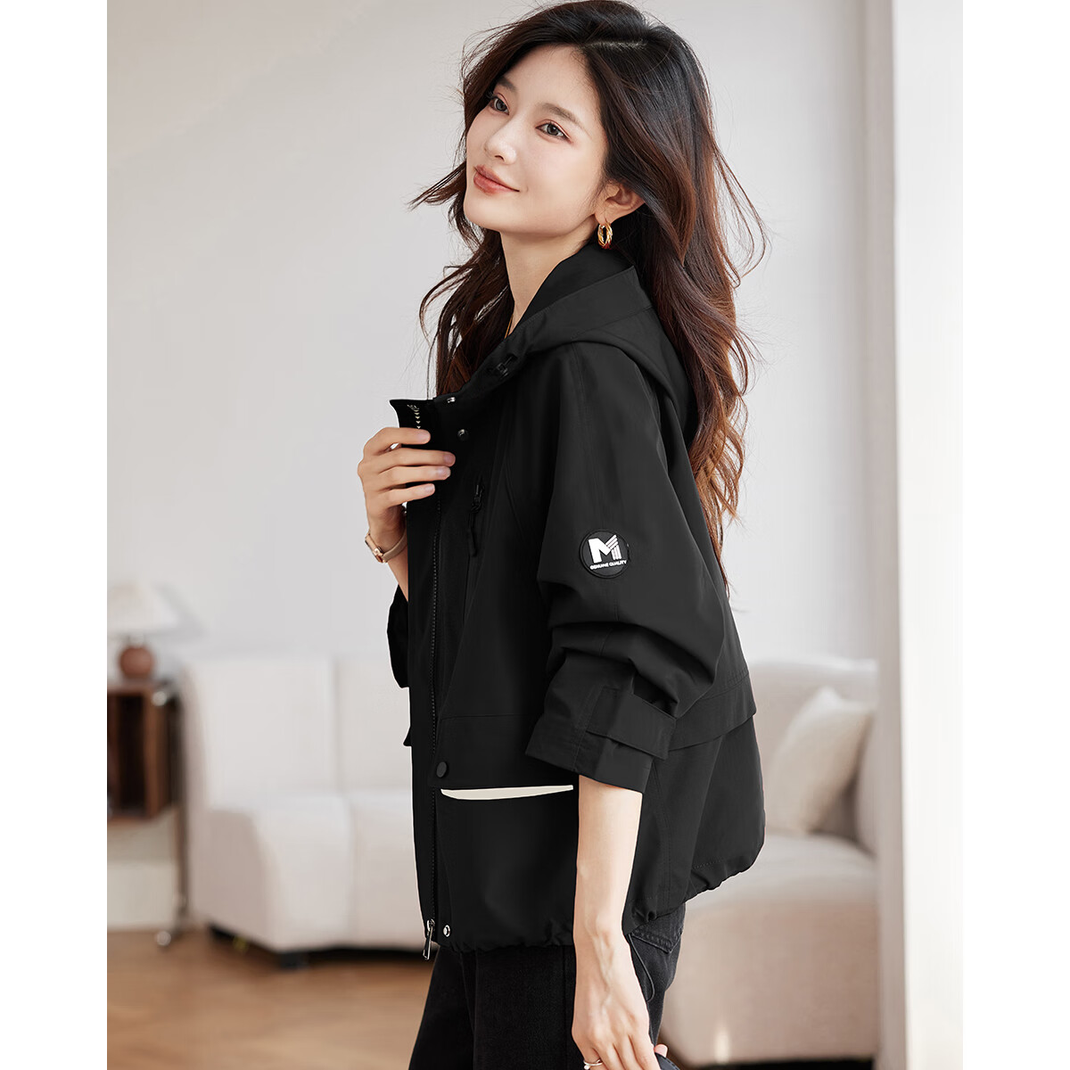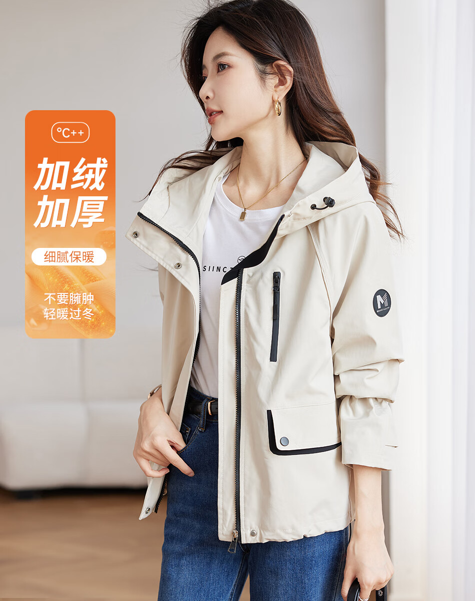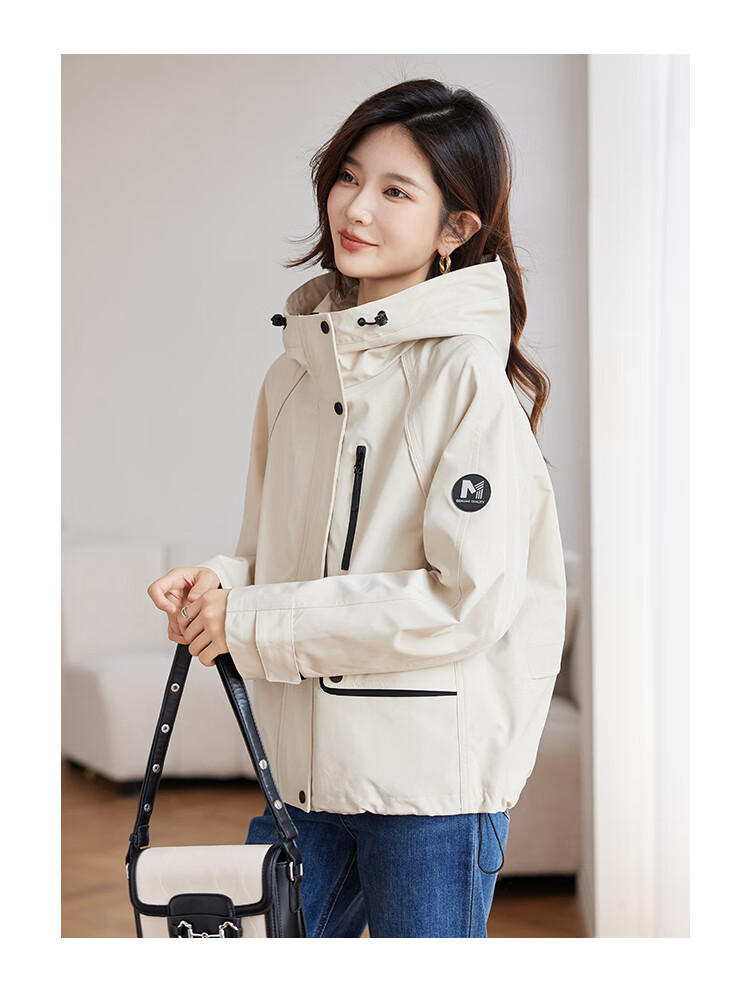 TERRE BLEUE fashionable versatile jacket for women 2025 autumn new age-reducing hooded cardigan windbreaker beige M