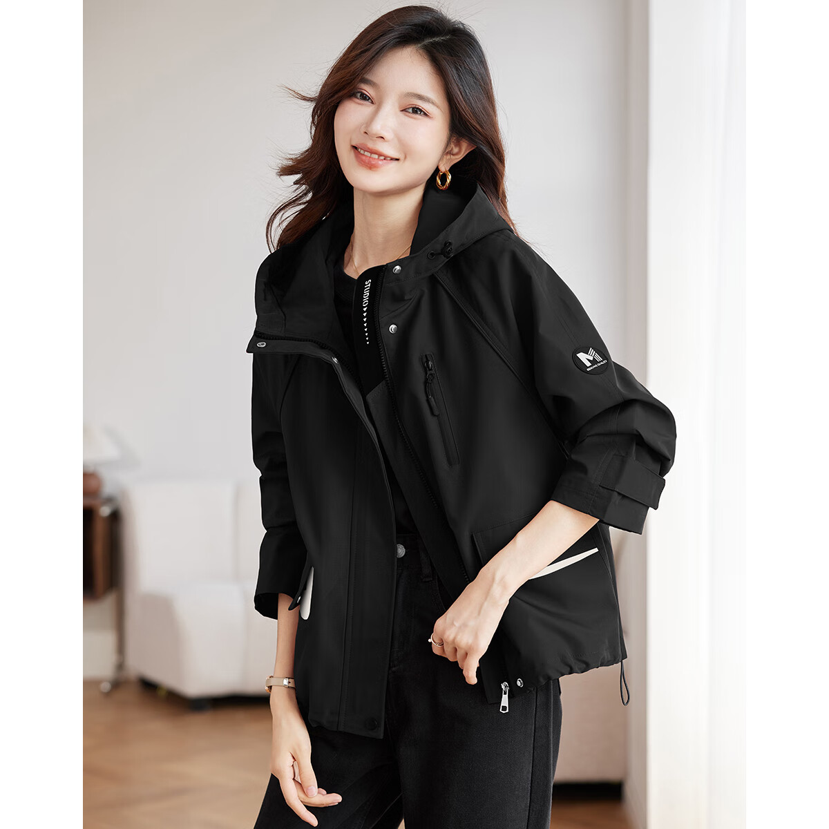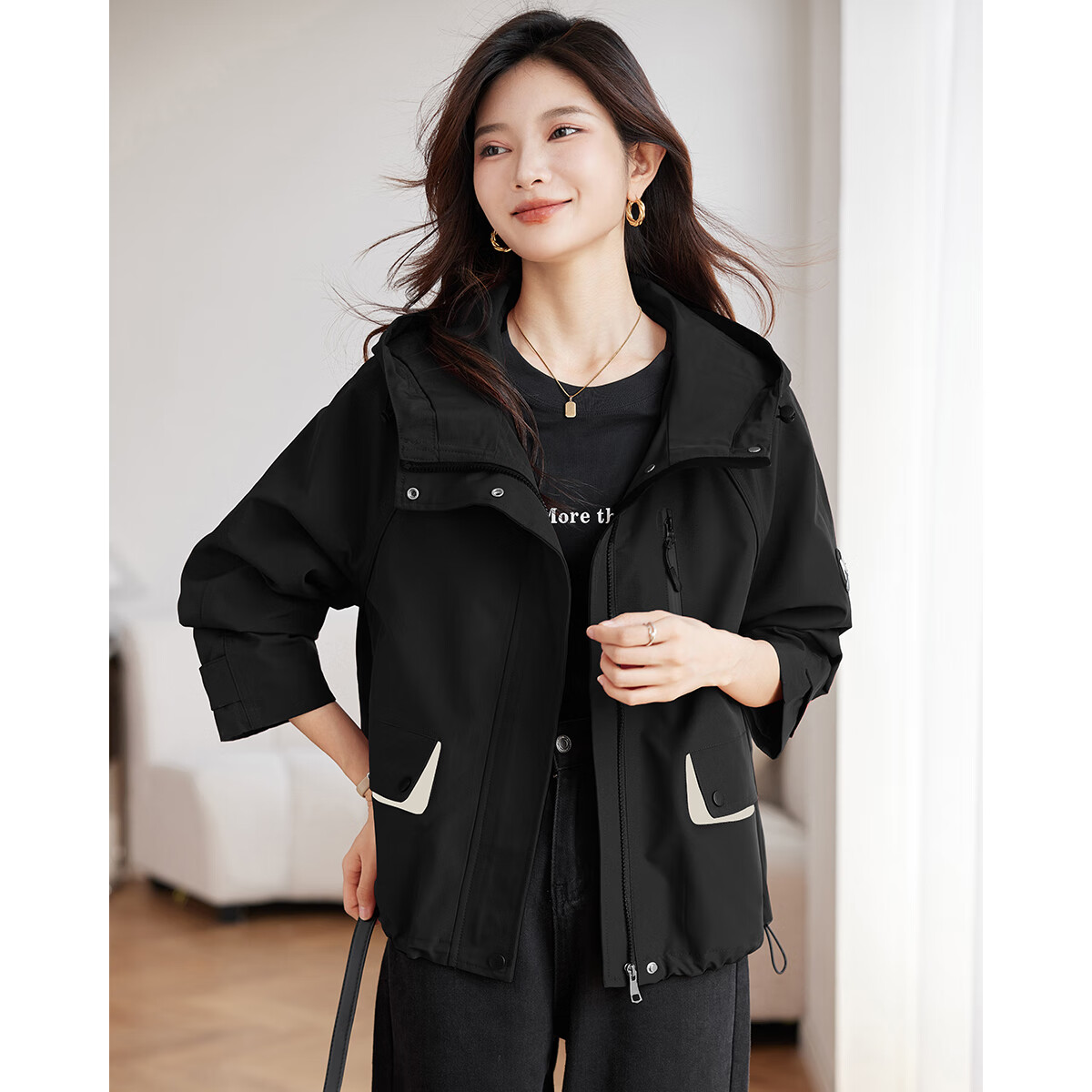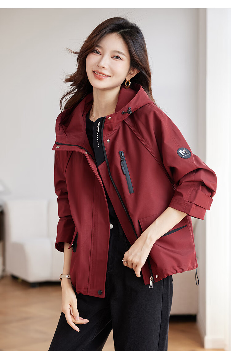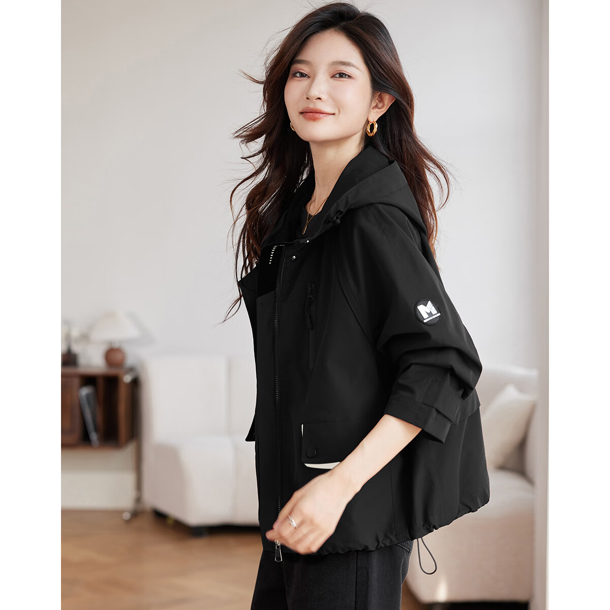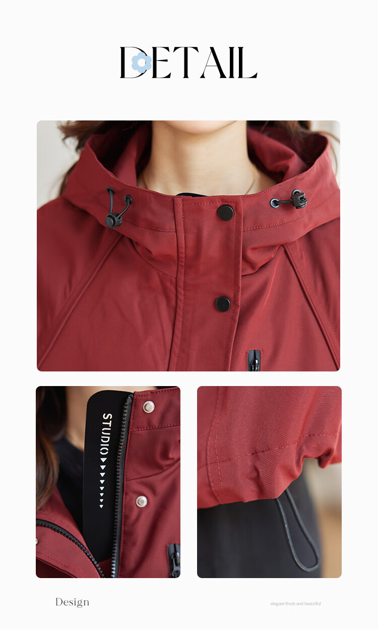 TERRE BLEUE fashionable versatile jacket for women 2025 autumn new age-reducing hooded cardigan windbreaker beige M