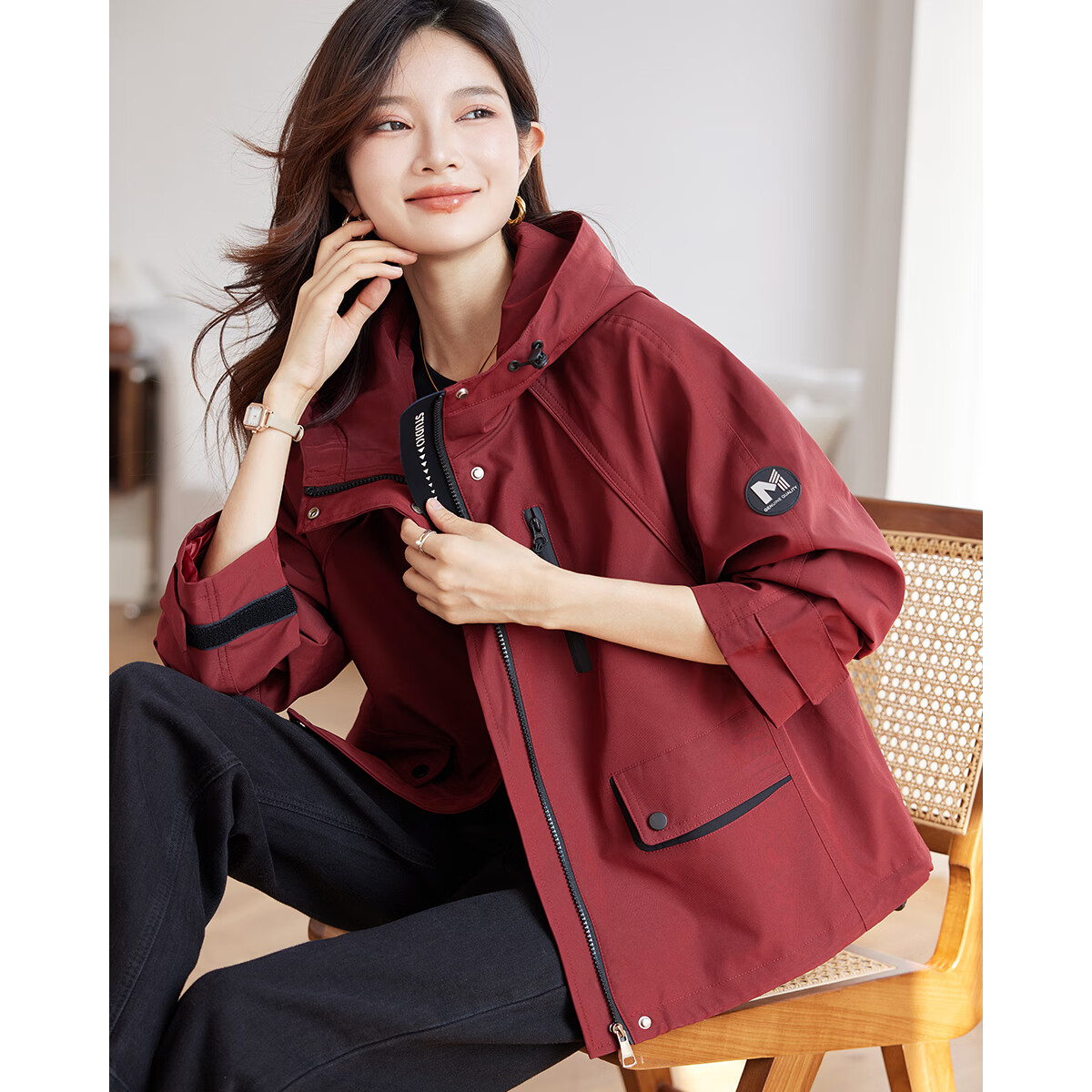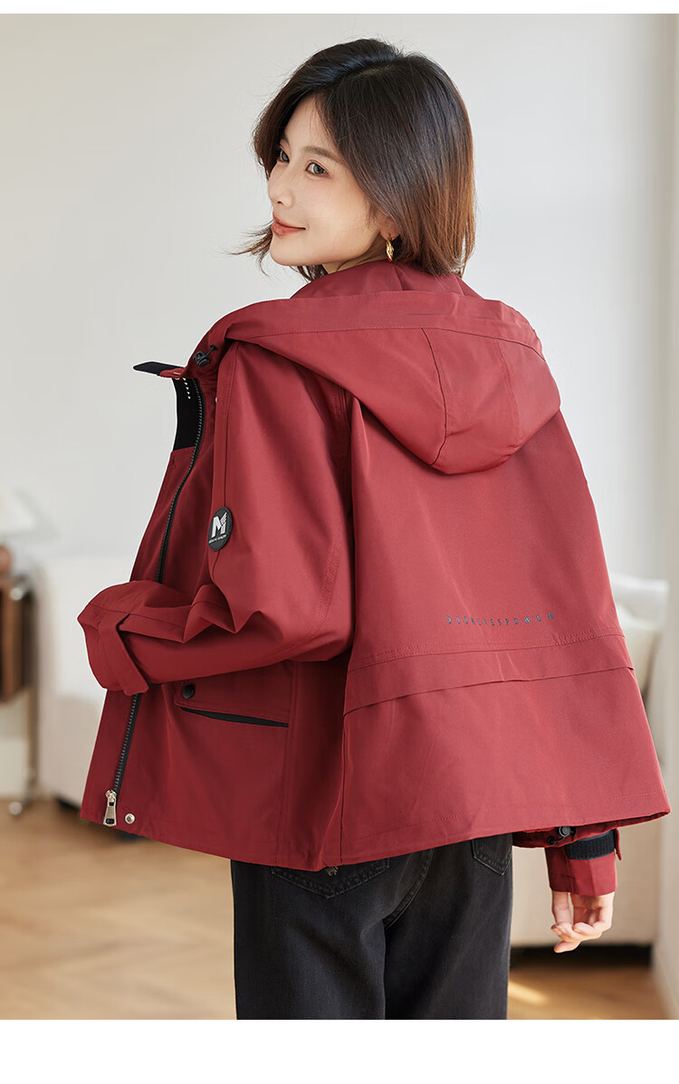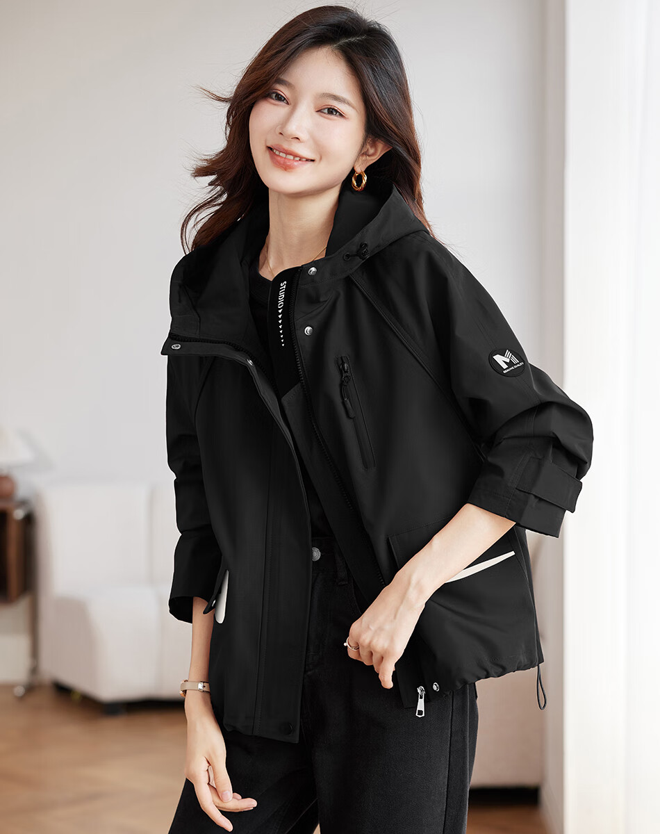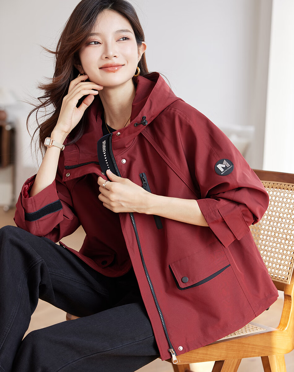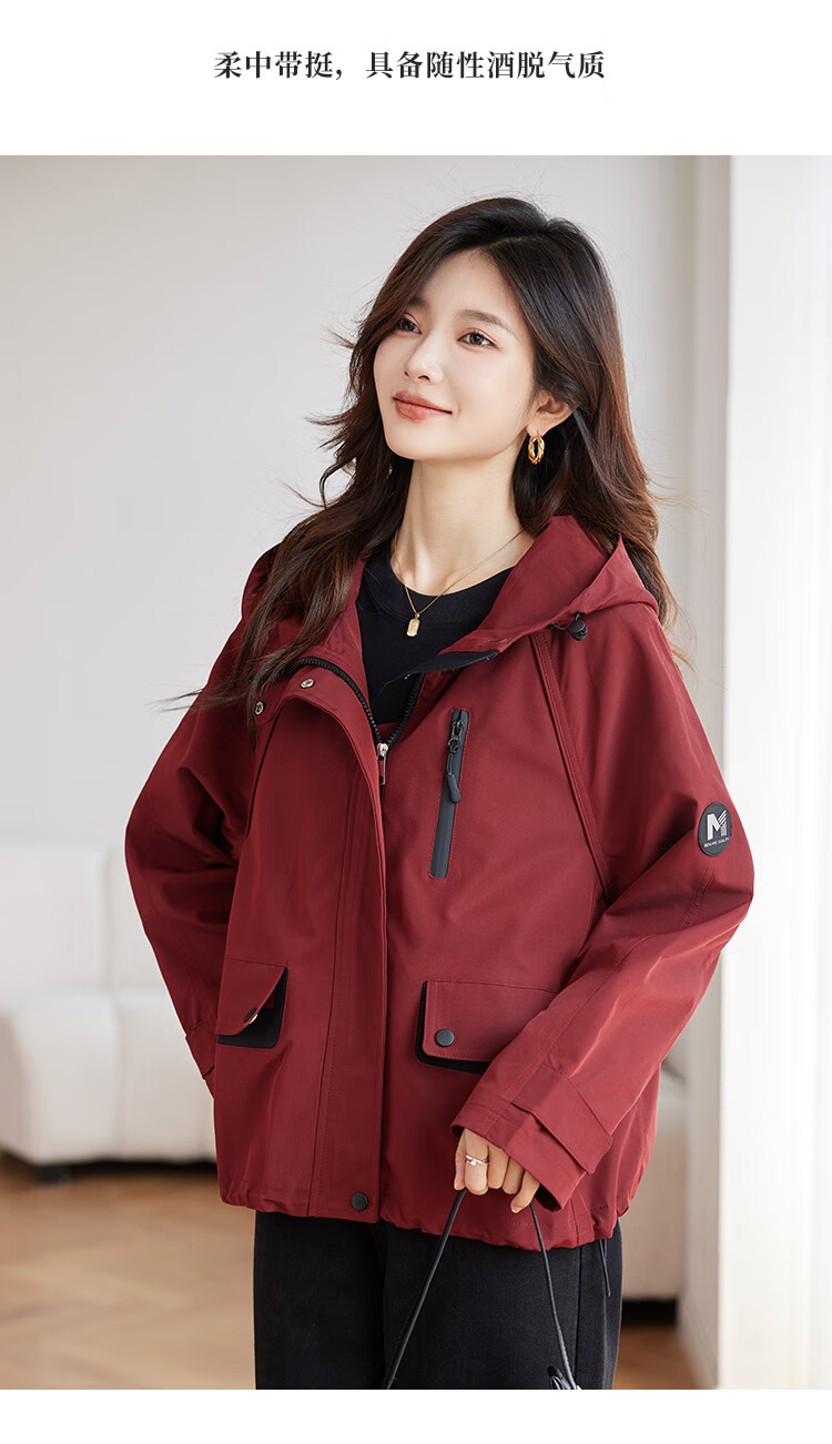 TERRE BLEUE fashionable versatile jacket for women 2025 autumn new age-reducing hooded cardigan windbreaker beige M