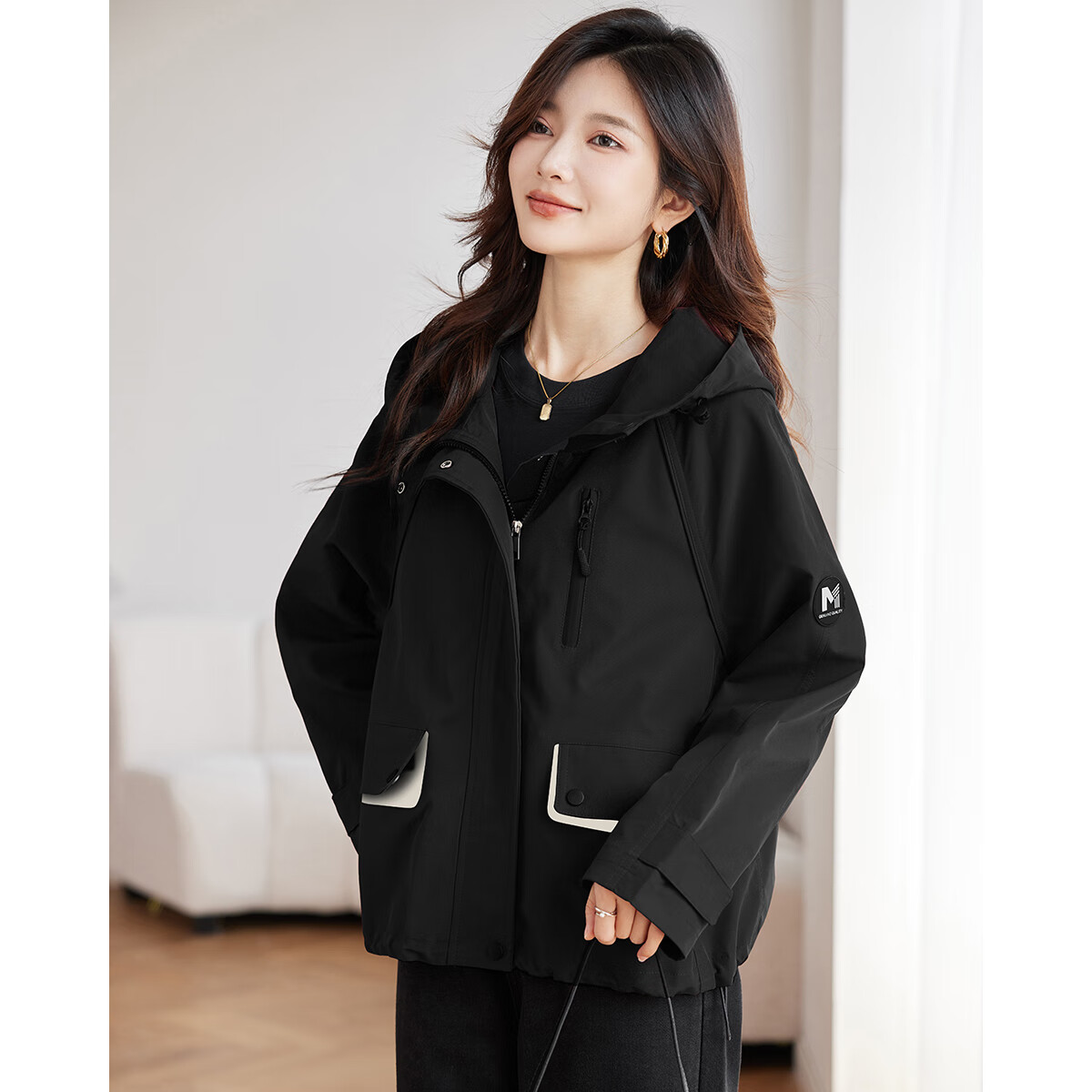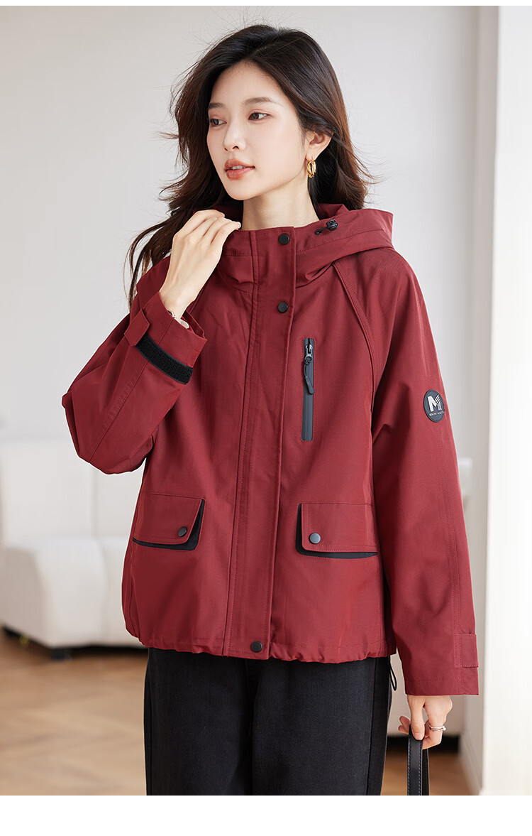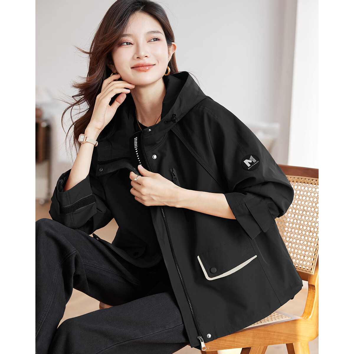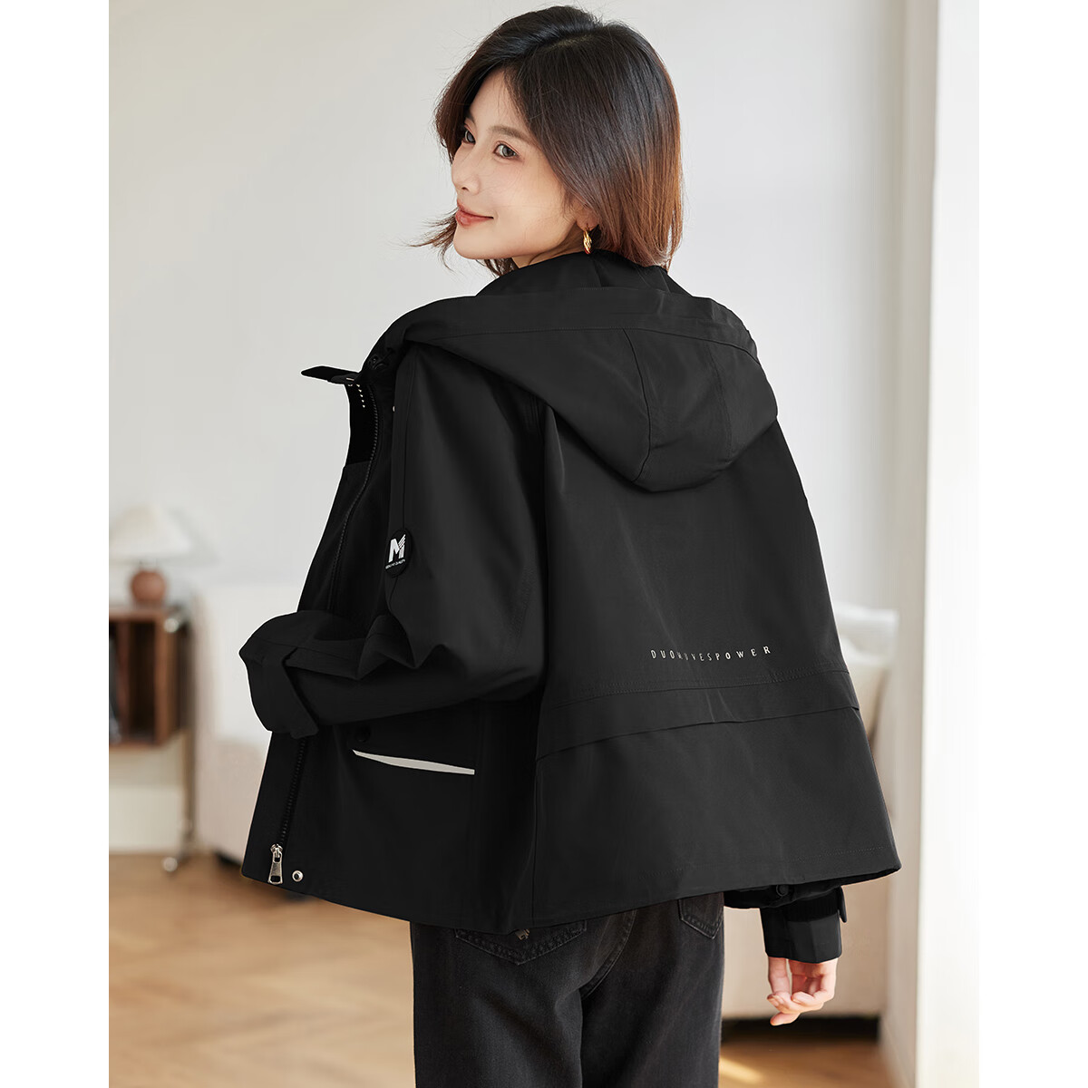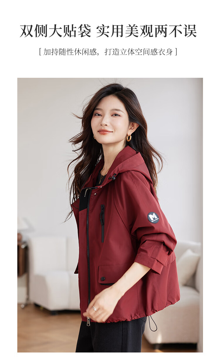 TERRE BLEUE fashionable versatile jacket for women 2025 autumn new age-reducing hooded cardigan windbreaker beige M
