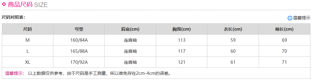 China (cm) 160-165/84-86 165-170 / 88-90 167-172 / 92-96 168-173 / 98-102 170-176 / 106-110
