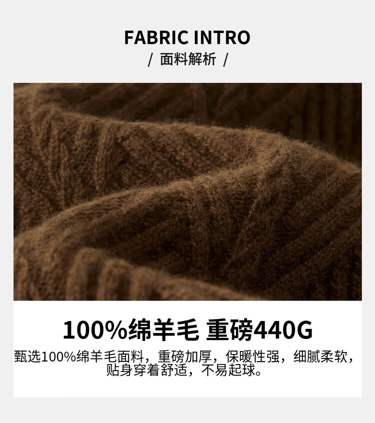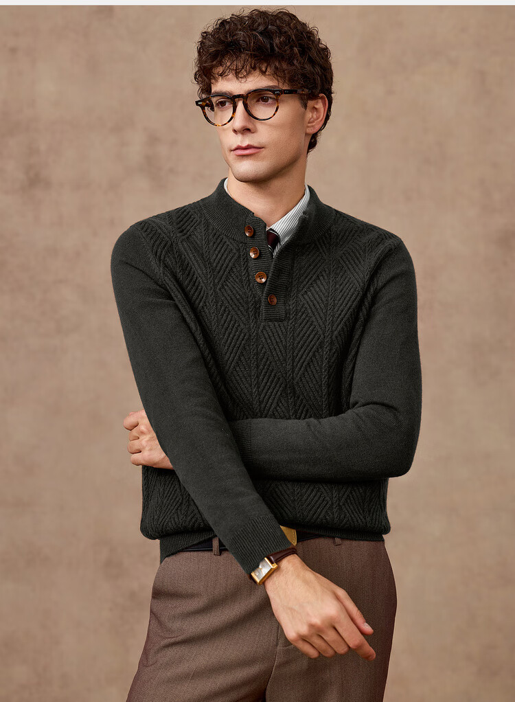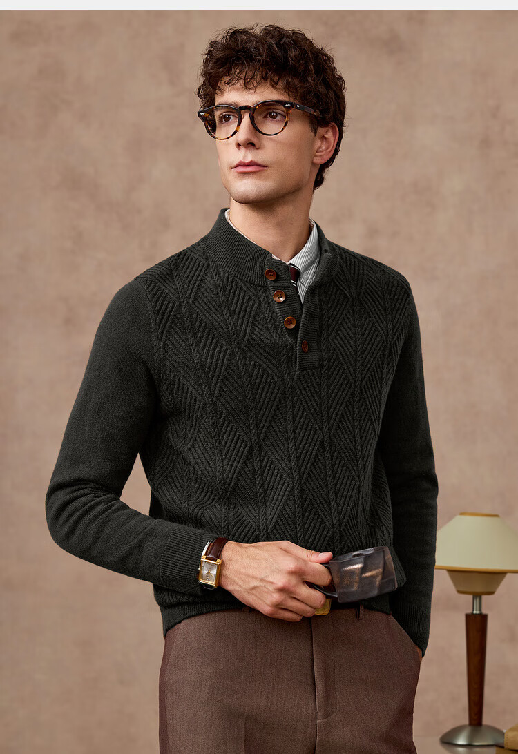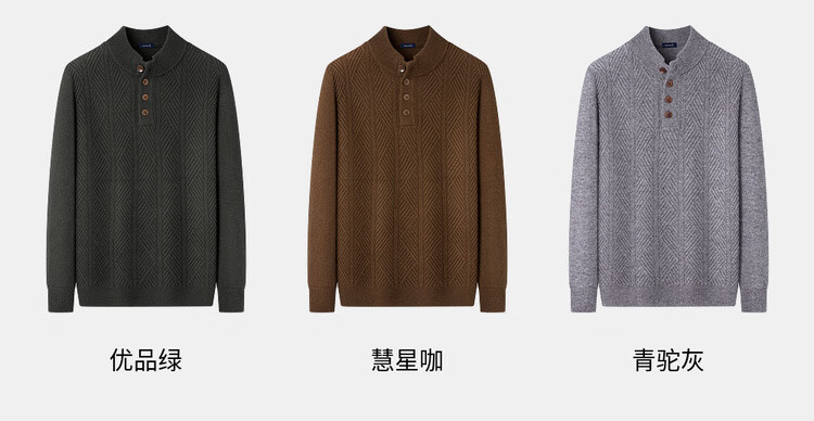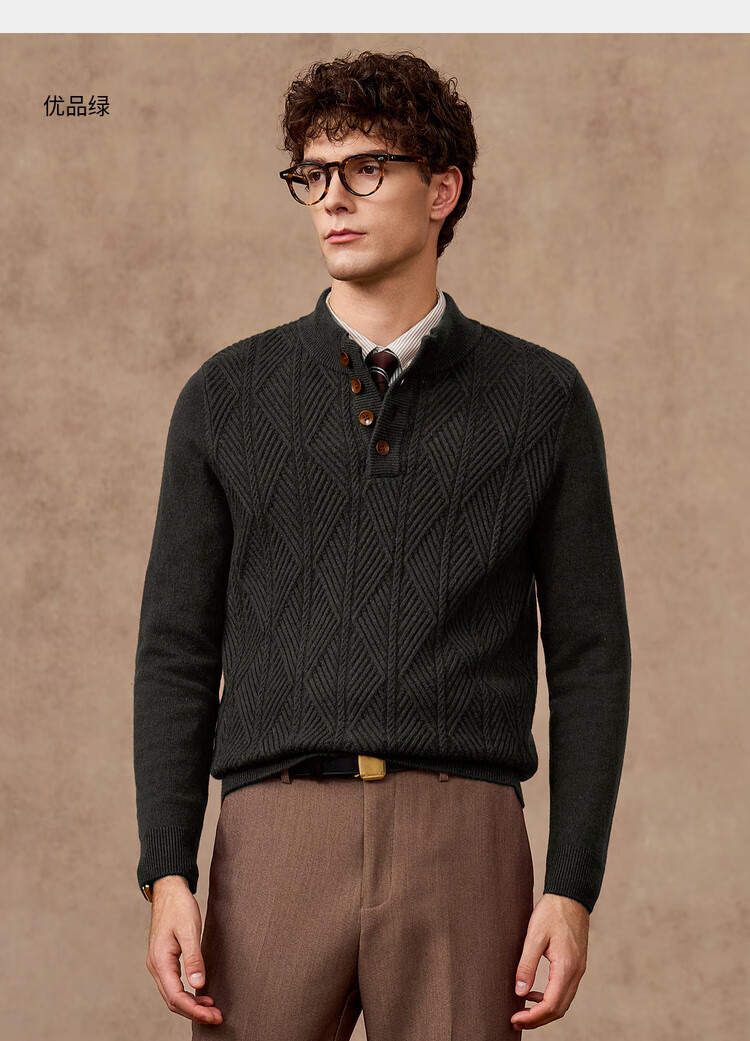 庄吉(Judger)【440克重磅 100%羊毛】庄吉男士纯羊毛衫2025秋冬半高亨利领毛衣