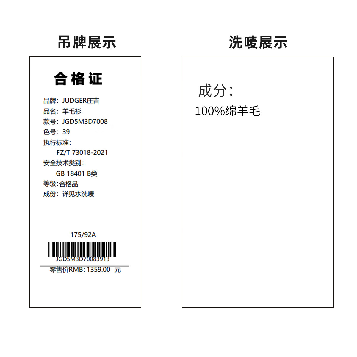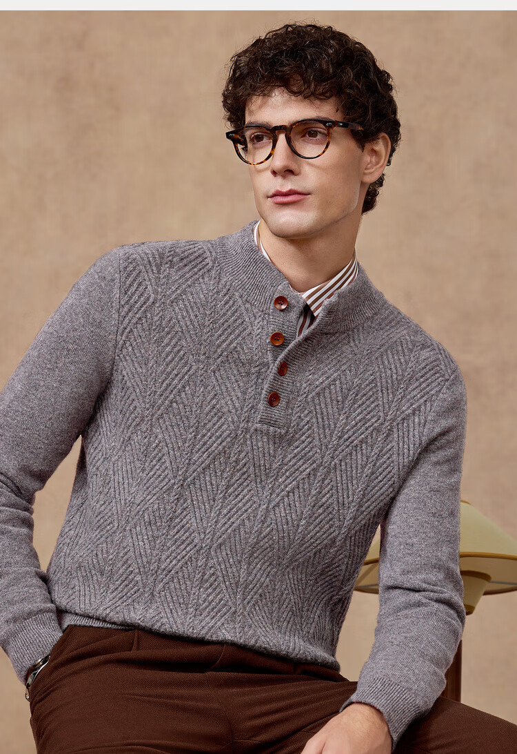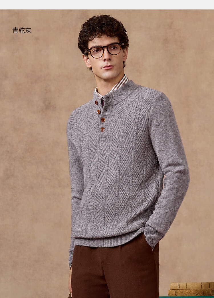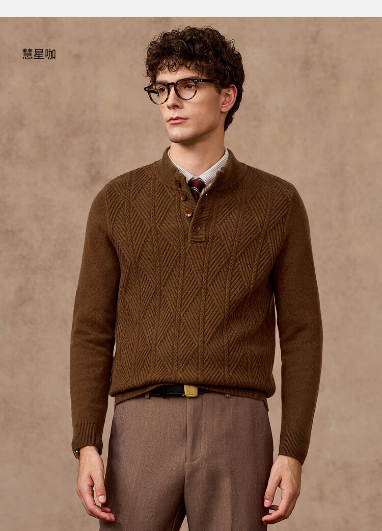 庄吉(Judger)【440克重磅 100%羊毛】庄吉男士纯羊毛衫2025秋冬半高亨利领毛衣