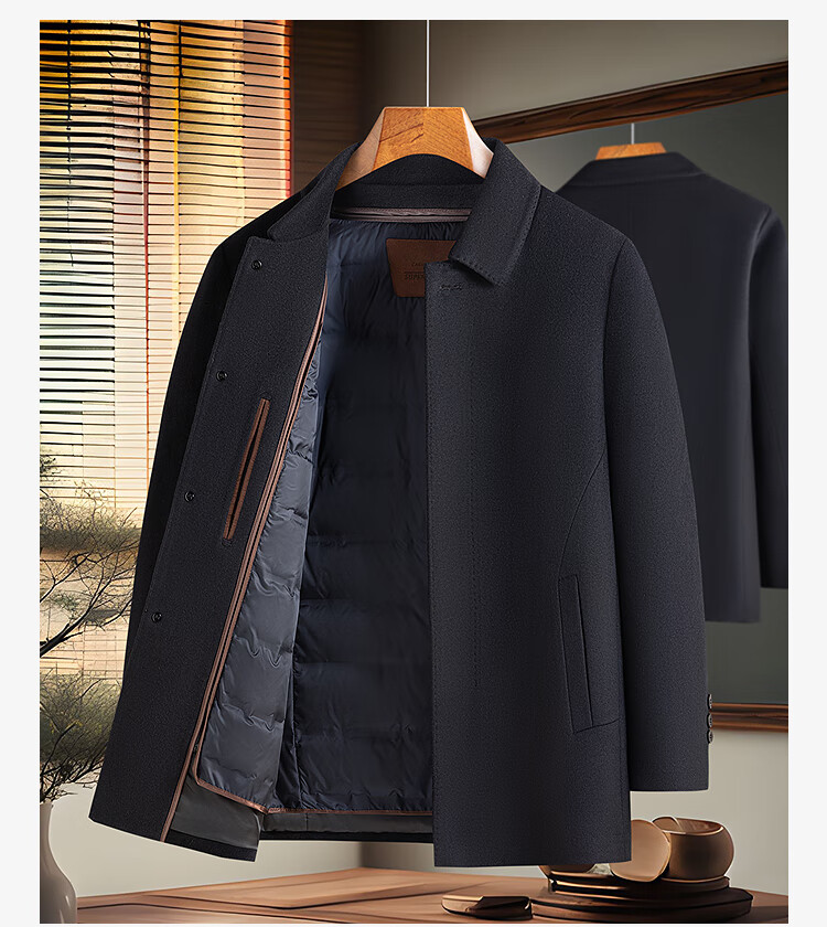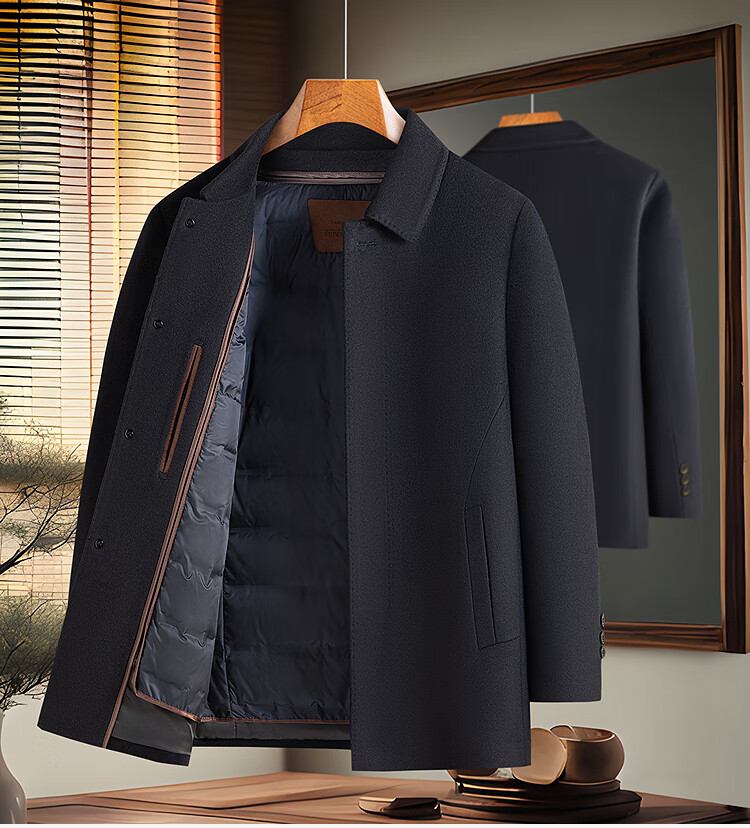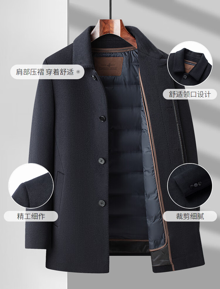 FAPAI duck down lining removable double-wear wool coat men's warm coat