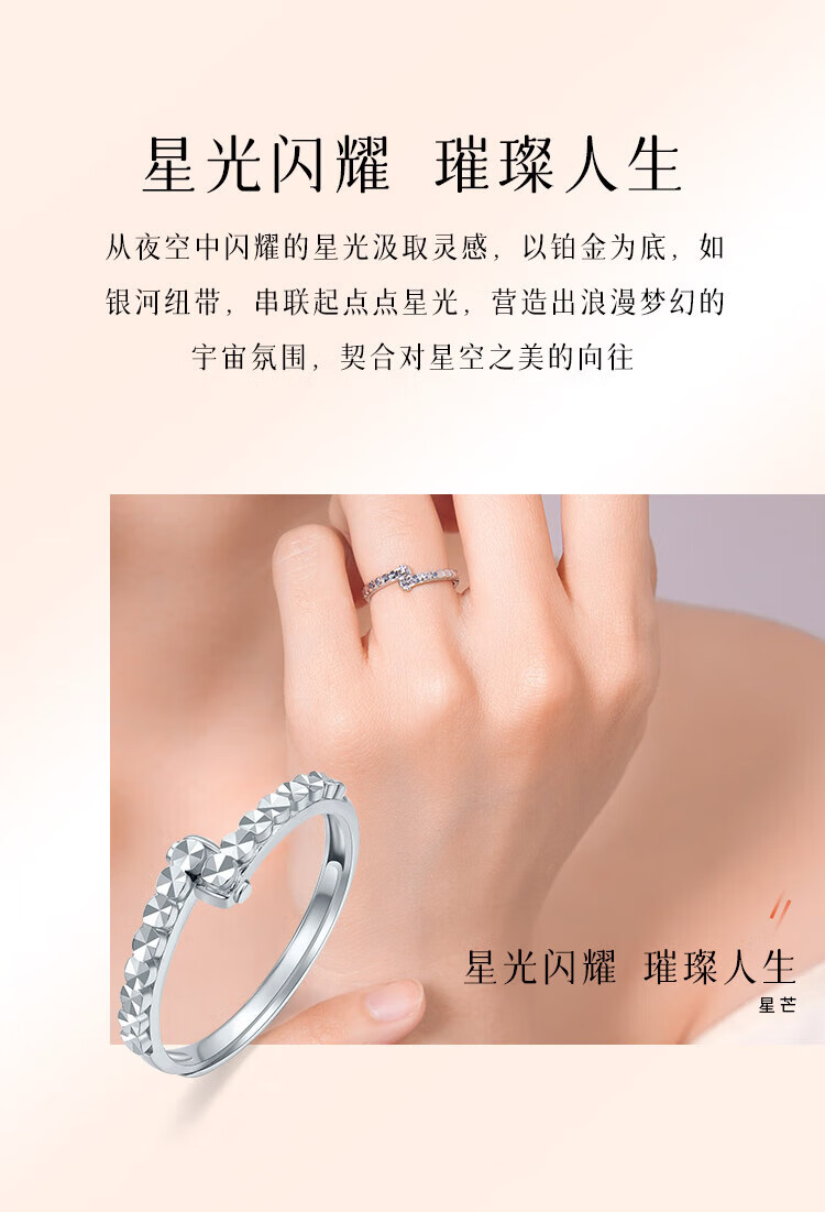 Liuguifu Jewelry Platinum Ring Xingmang PT950 Platinum Ring Women's Gift PT0100285 2.80g