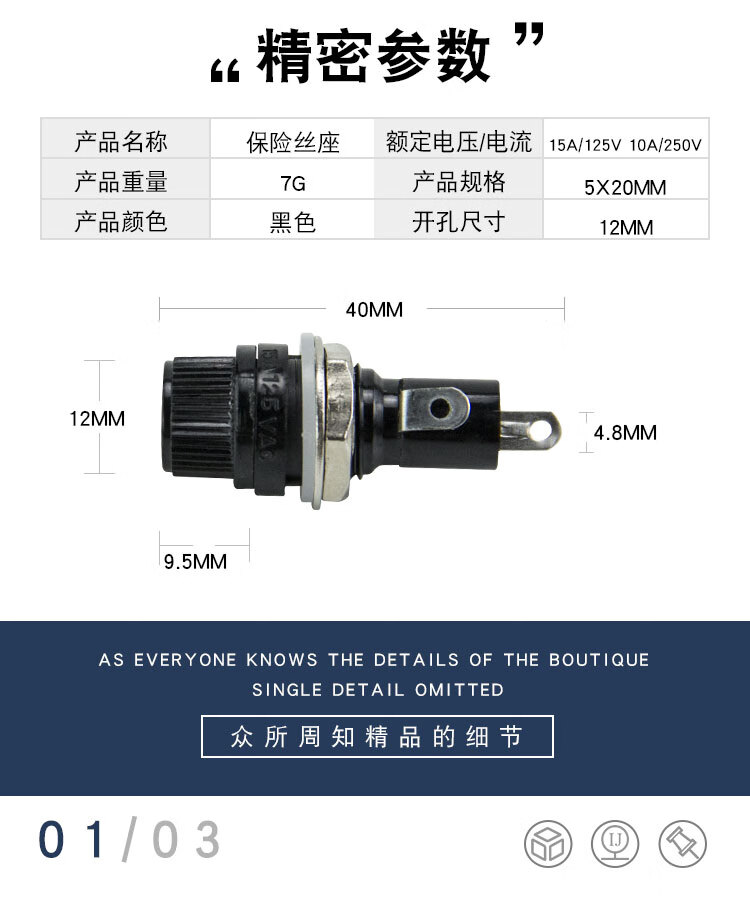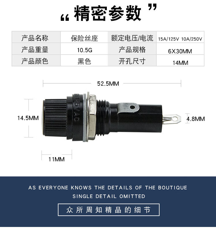Huijun (HUIJUN) glass fuse circuit charger protection glass tube fuse holder 5 pieces/5*20mm