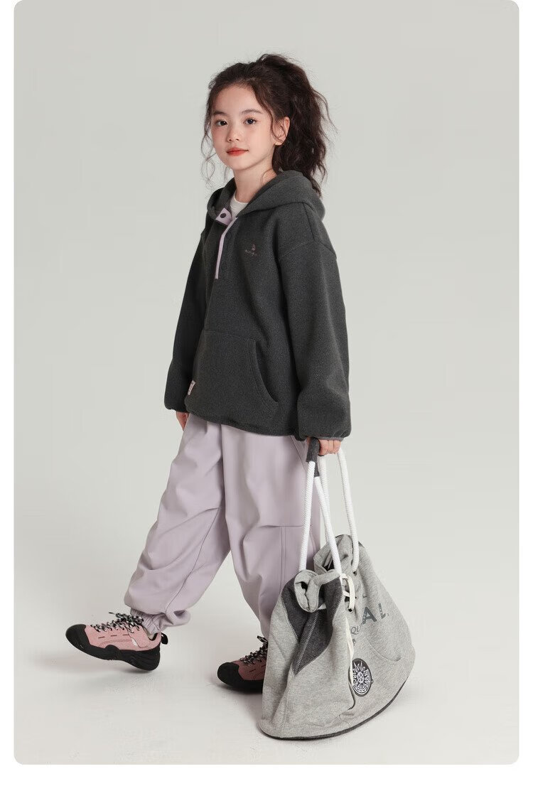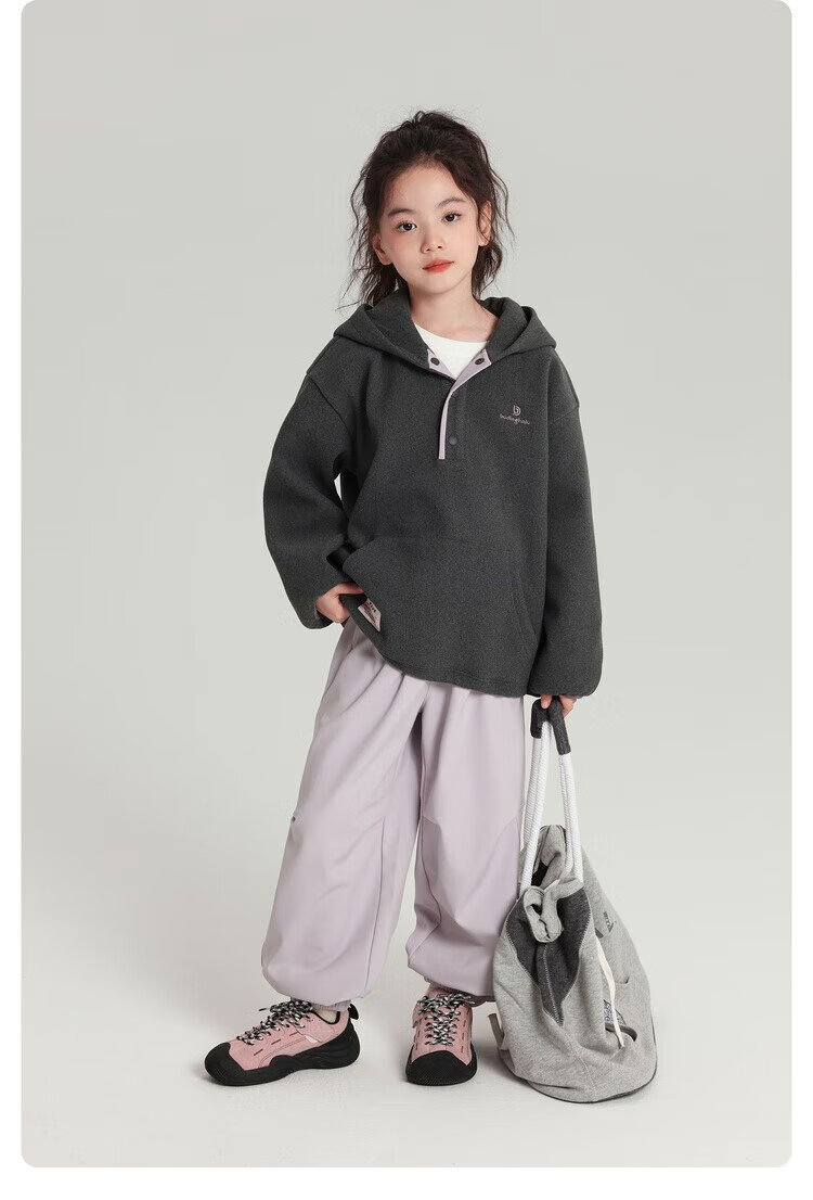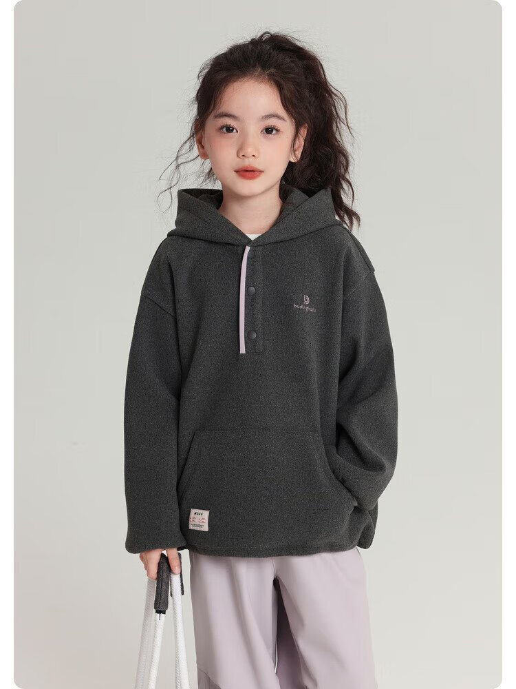 Pudding Haru Girls Contrast Color Knitted Thick Hooded Sweatshirt Autumn and Winter New Products Medium and Large Children's Brand Letter Embroidered Loose Sweatshirt Trendy
