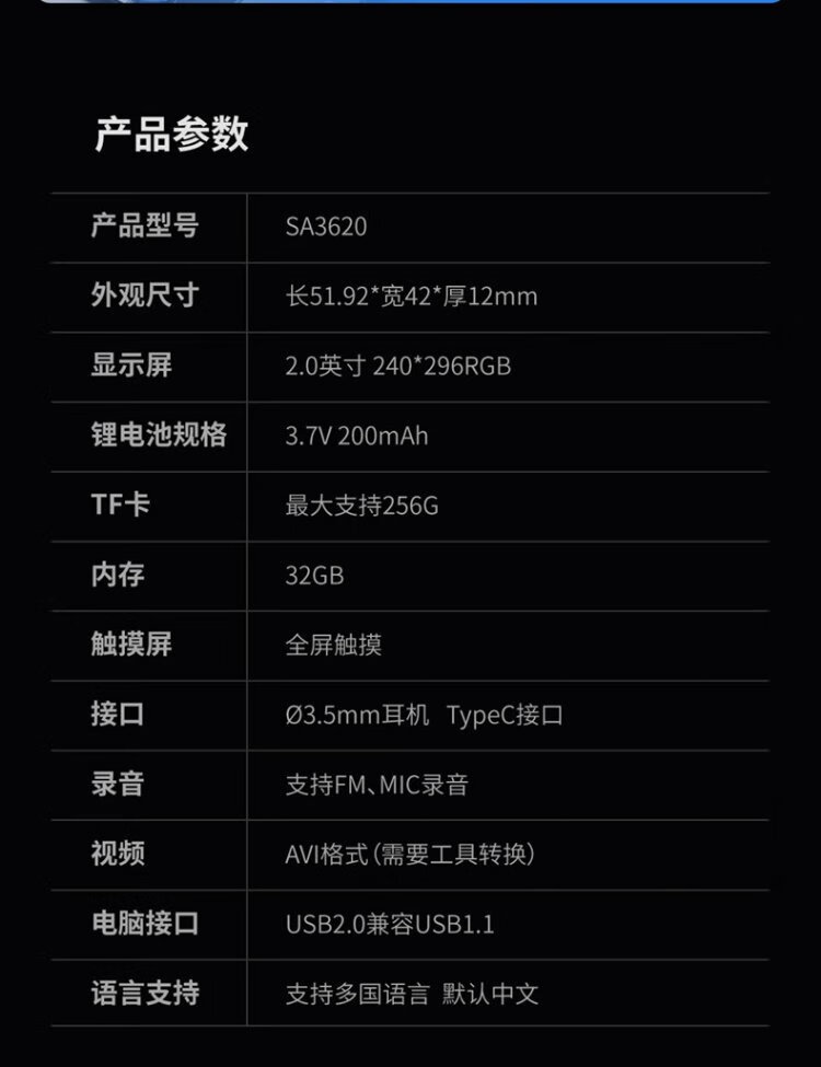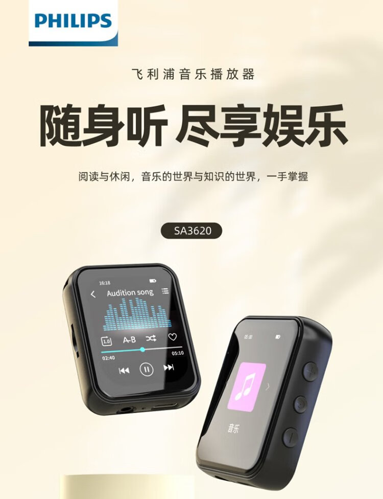 PHILIPS SA3620 MP3 Walkman Sports Portable Lossless Music Player for High School Students 32G