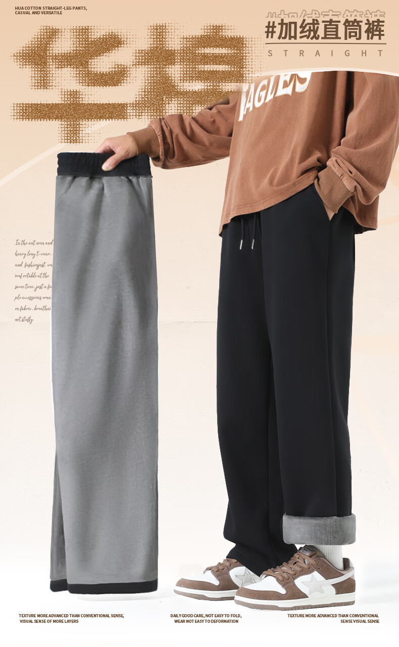 VANCL trousers men's new winter velvet warm casual trousers men's versatile loose straight trousers black XL