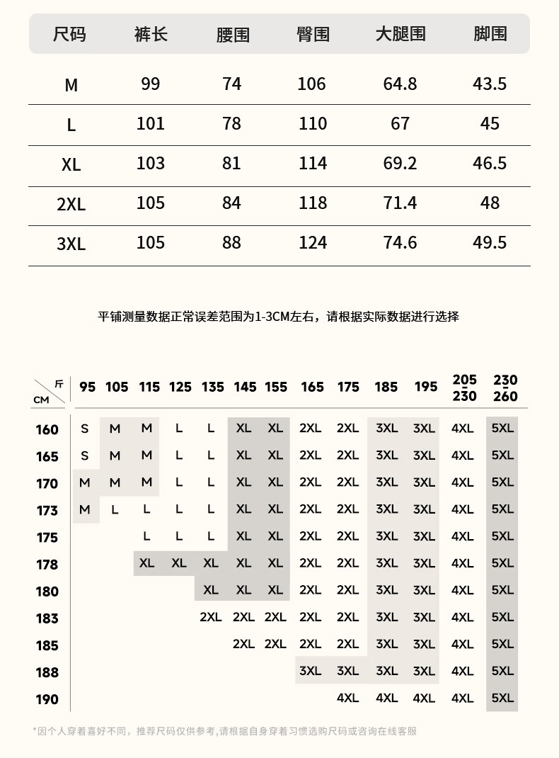 Outseam (cm) 99 cm 101.5 cm 104 cm 106.5 cm 109 cm