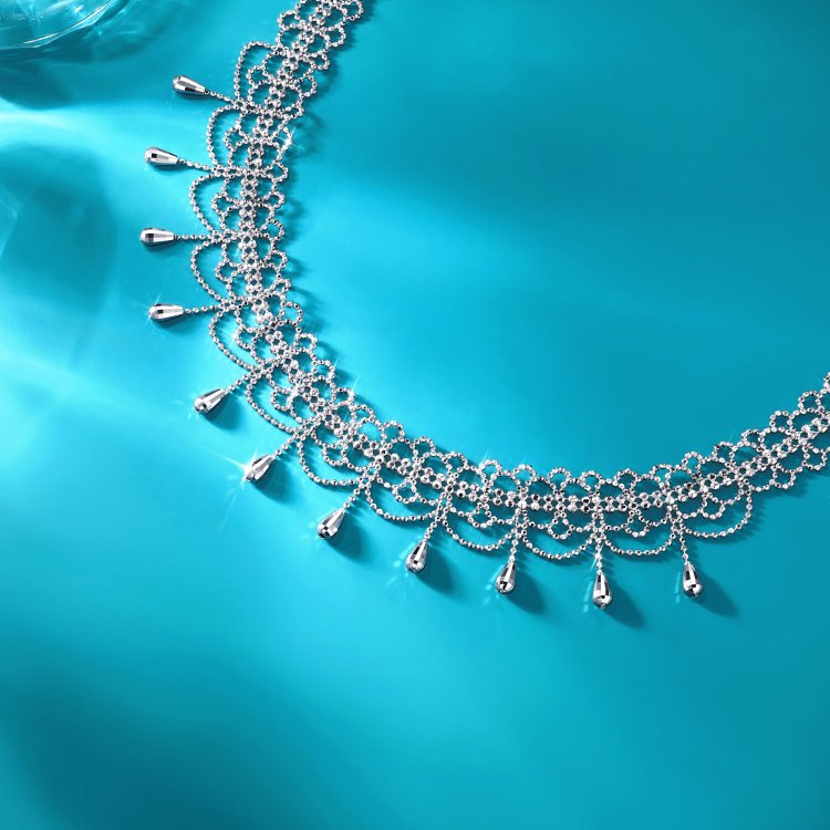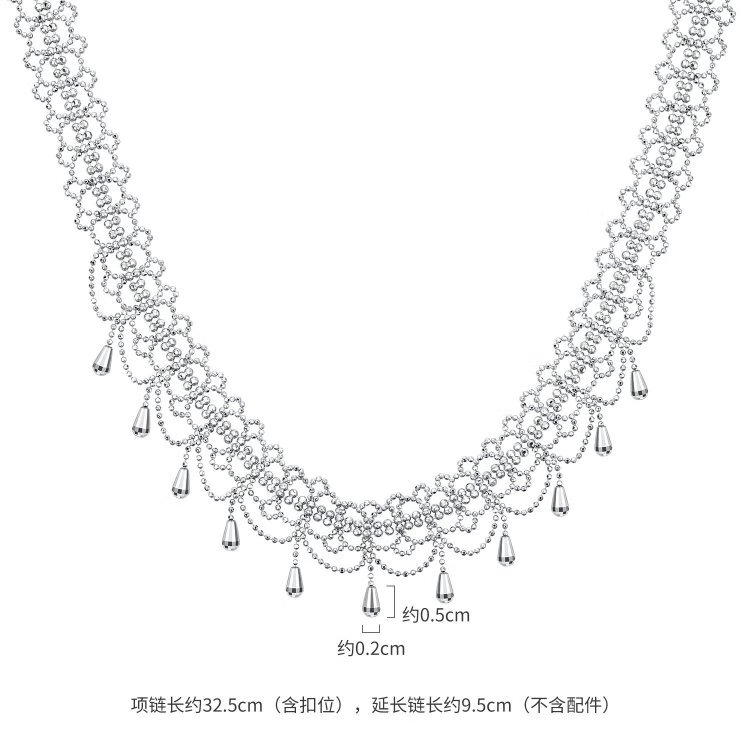 Lukfook Jewelry platinum necklace lace drop platinum 950 choker clavicle chain priced about 22.14 grams