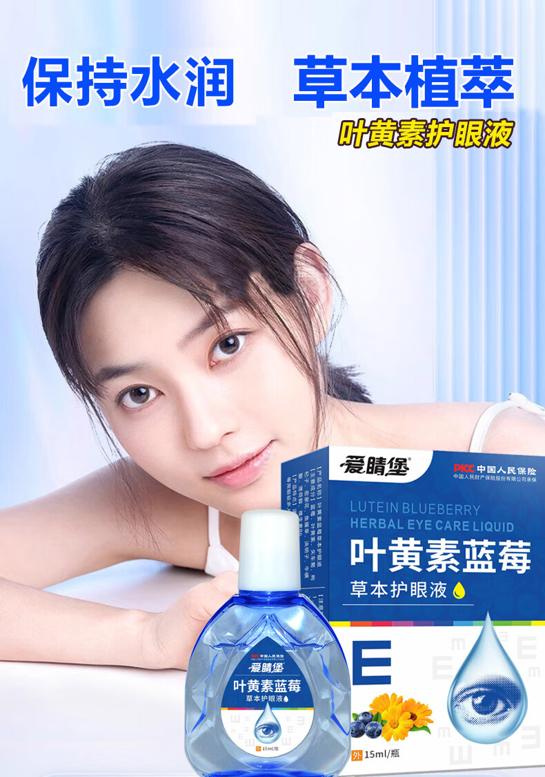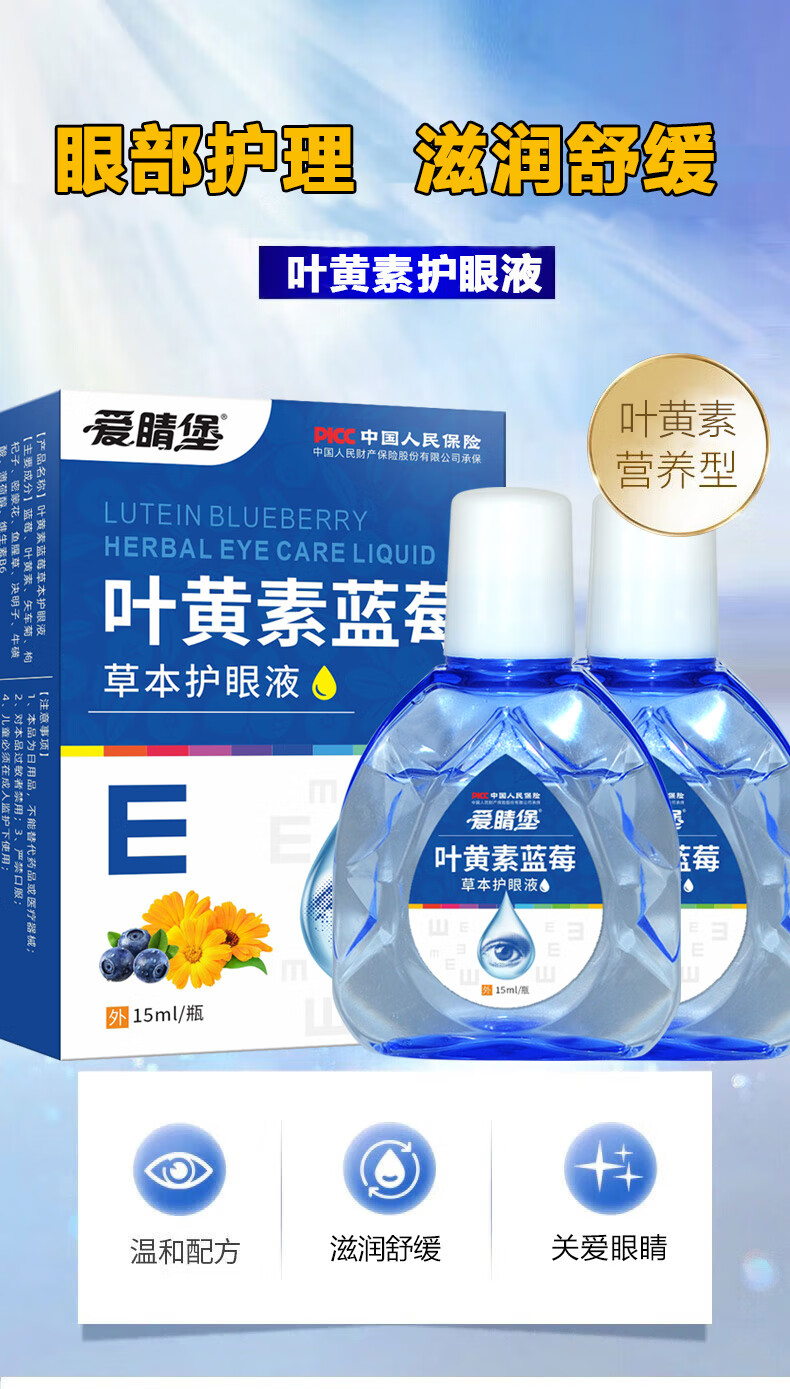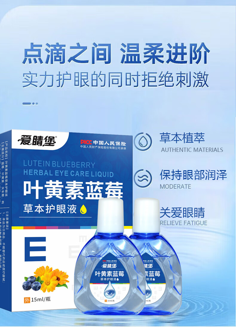 Aijingbao Lutein Eye Care Solution Blueberry Dry Eyes Moisturizing and Soothing Herbal Eyes for Adults and Elderly Fatigue 15mL 2 Bottles