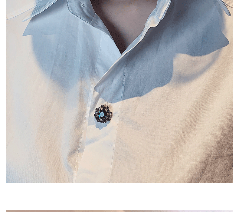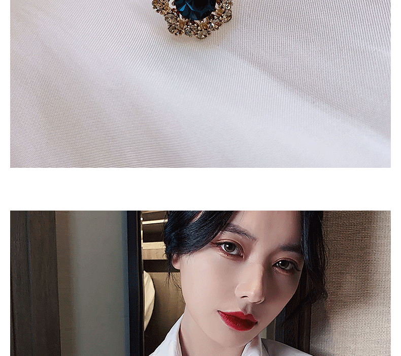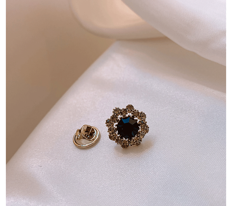 Idel retro imitation blue crystal anti-exposure buckle brooch Japanese fashion fixed clothing accessories neckline decoration birthday gift elegant blue corsage XZ0191
