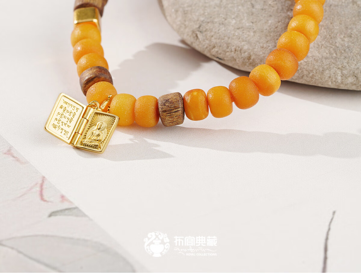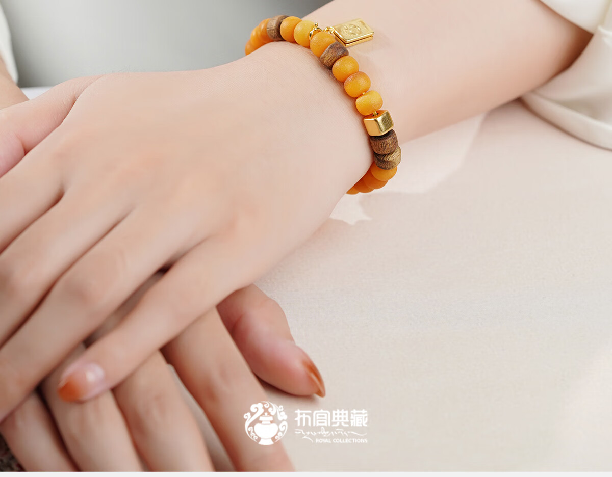 Potala Palace Beeswax Agarwood Bracelet Single Circle Beads for Men and Women 925 Silver Wooden Transfer Bead Bracelet as a Birthday Gift for Girlfriend