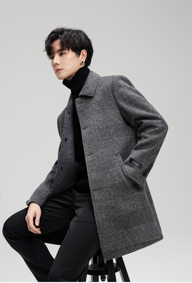 FAPAI down coat double-wear men's coat double-sided woolen coat mid-length coat for men