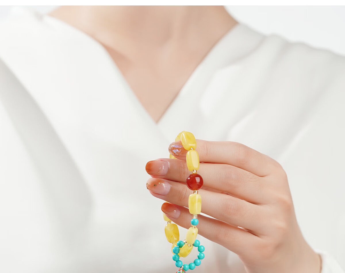 Potala Palace beeswax agate glazed bracelet holding men's and women's 925 silver transfer bead bracelet as a birthday gift to your girlfriend