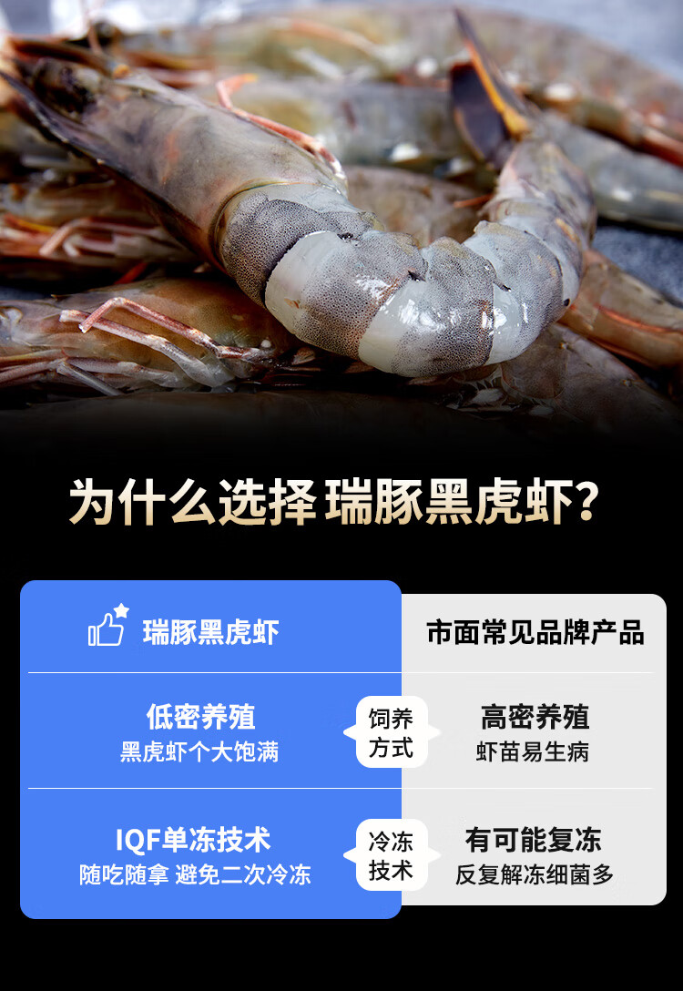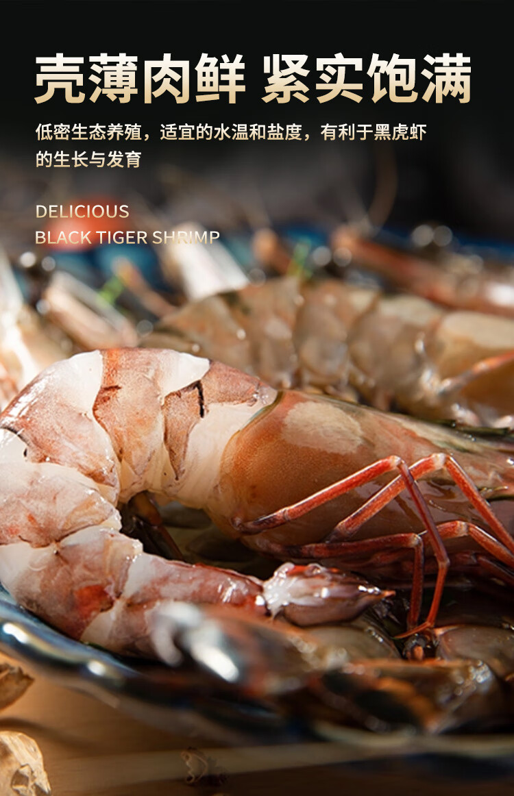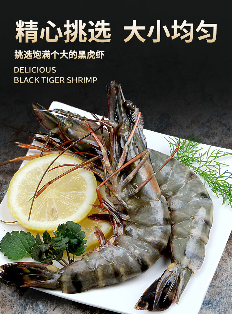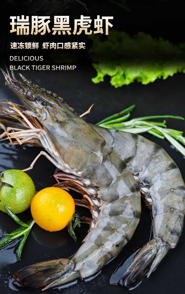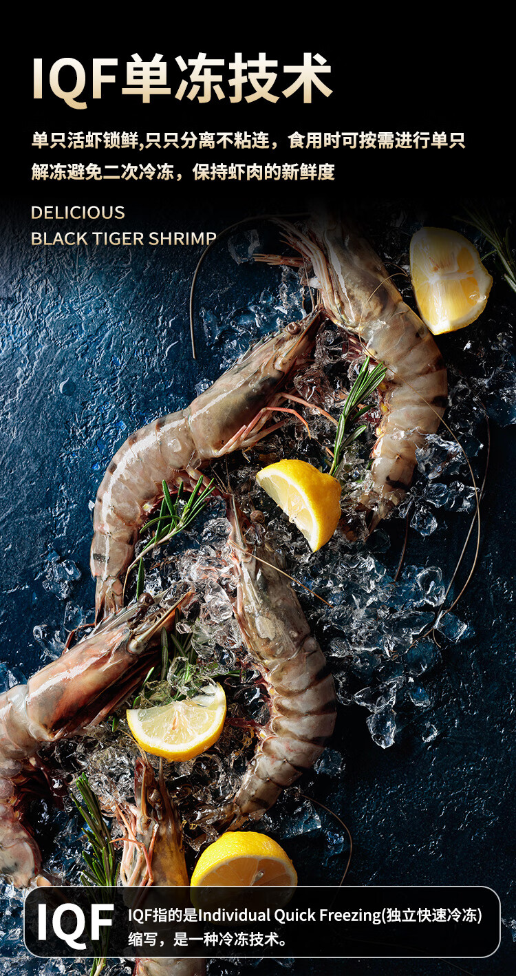 Swiss dolphin, Vietnamese extra large live frozen black tiger shrimp, Penaeus monodon, seafood, net weight 3Jin Jin equals 0.5kg (10-20/KG)