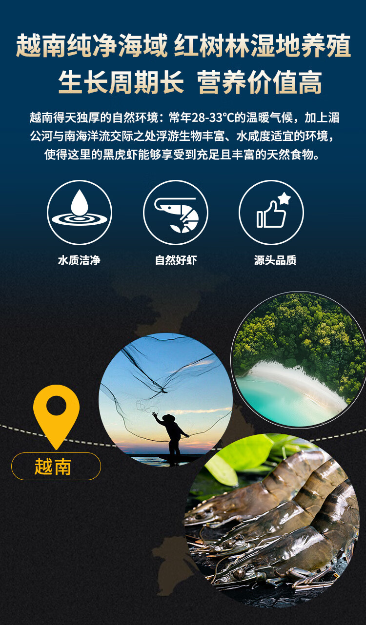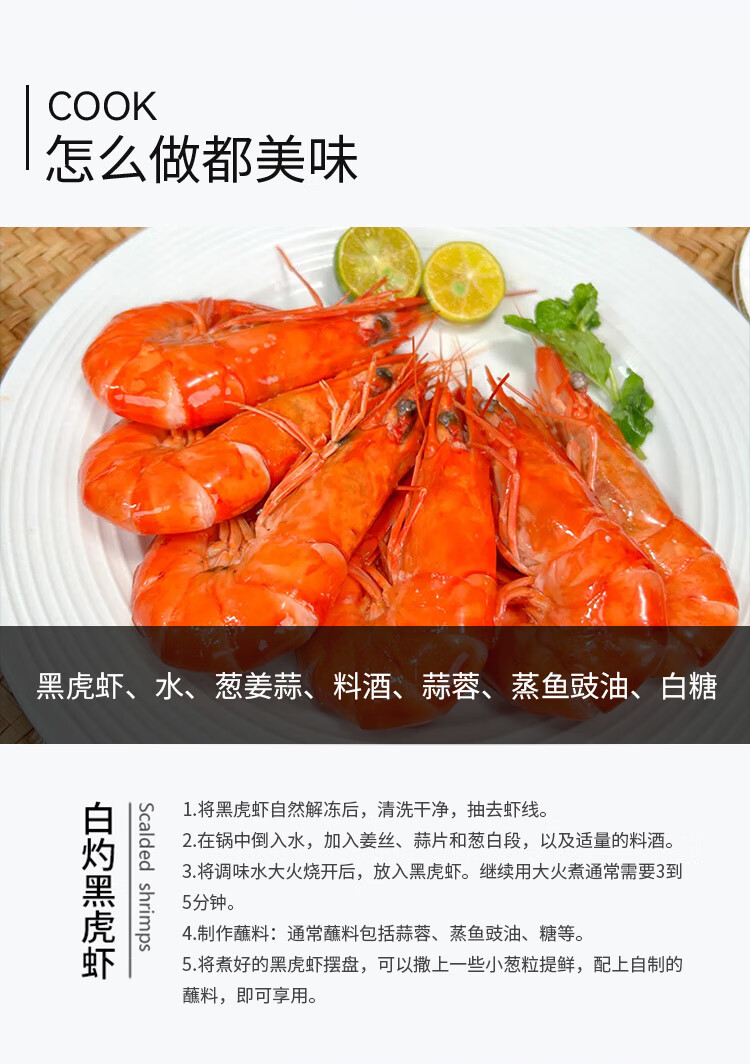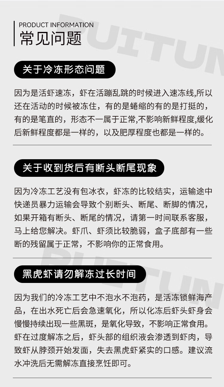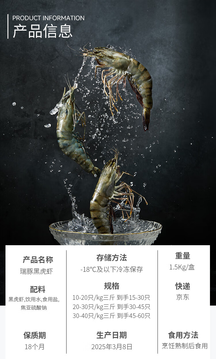 Swiss dolphin, Vietnamese extra large live frozen black tiger shrimp, Penaeus monodon, seafood, net weight 3Jin Jin equals 0.5kg (10-20/KG)