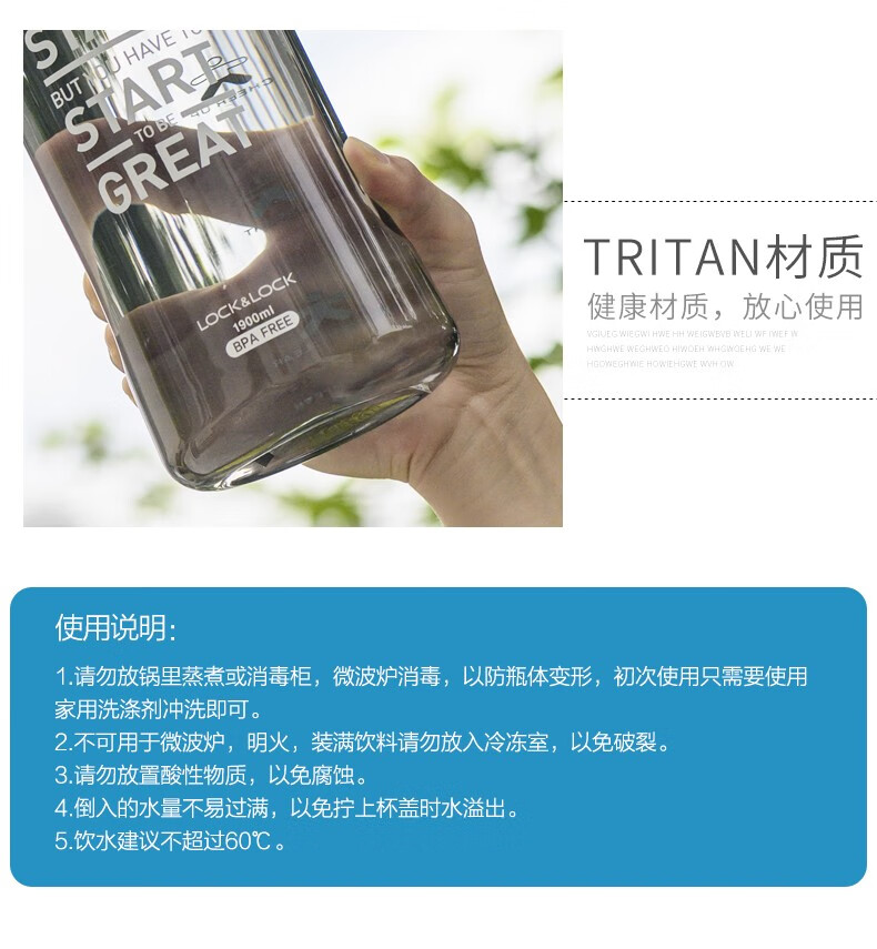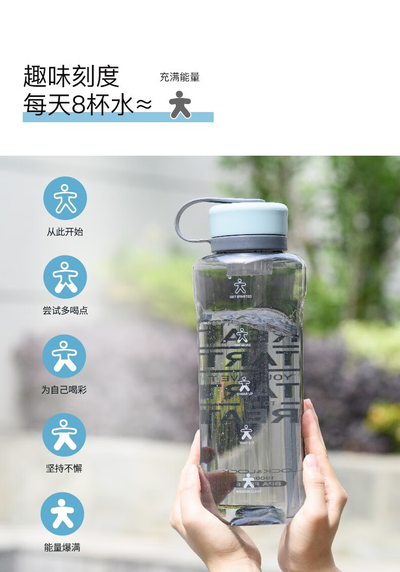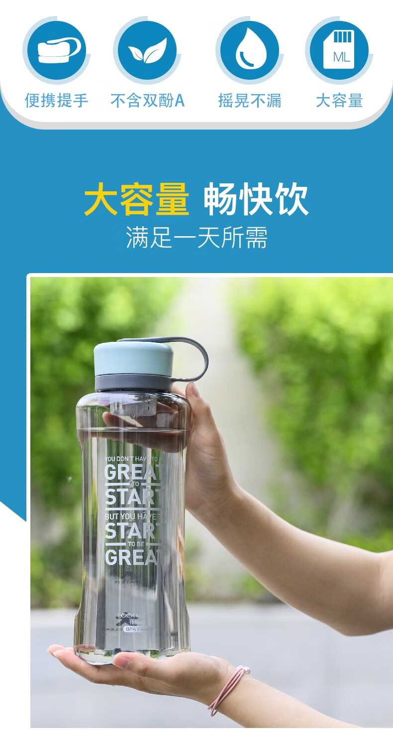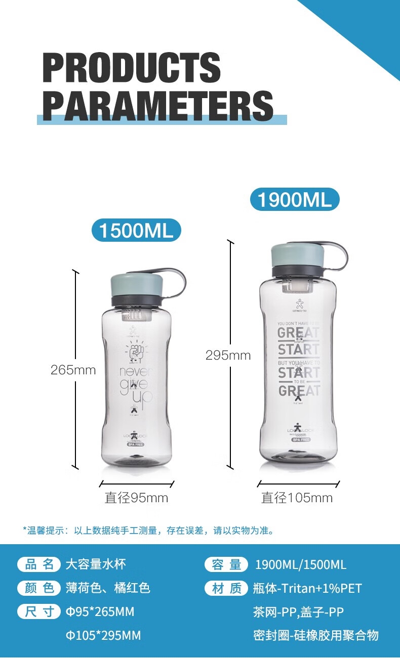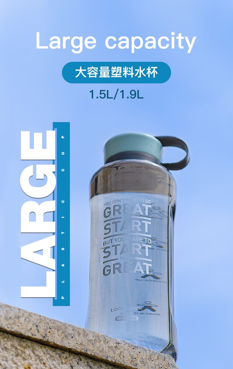 LOCK&LOCK Large Capacity Water Cup Extra Large Portable Handheld Plastic Kettle Sports Men's Summer Outdoor Tea Mint Green 1500ml