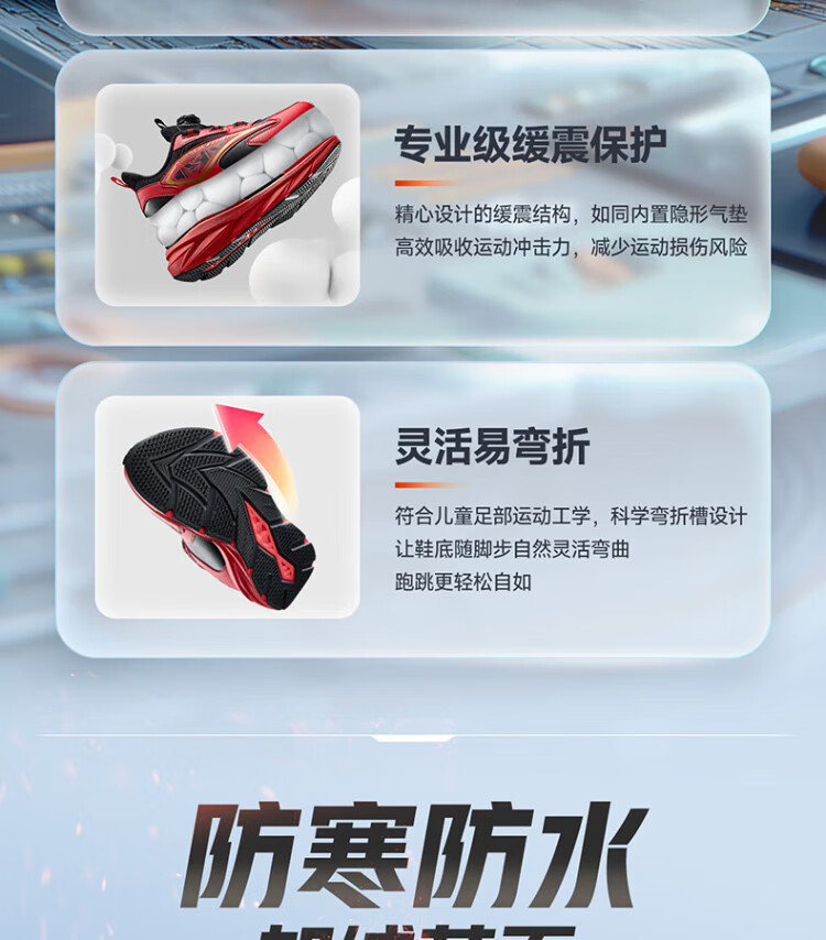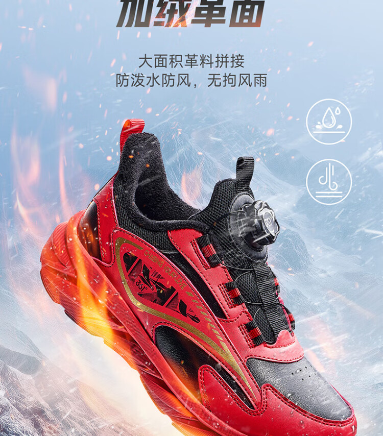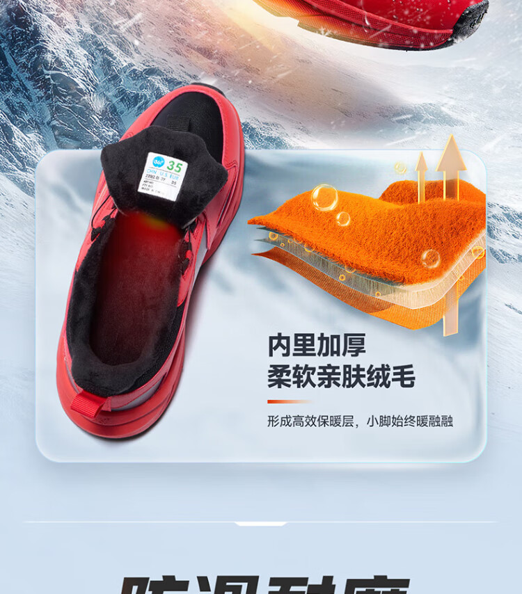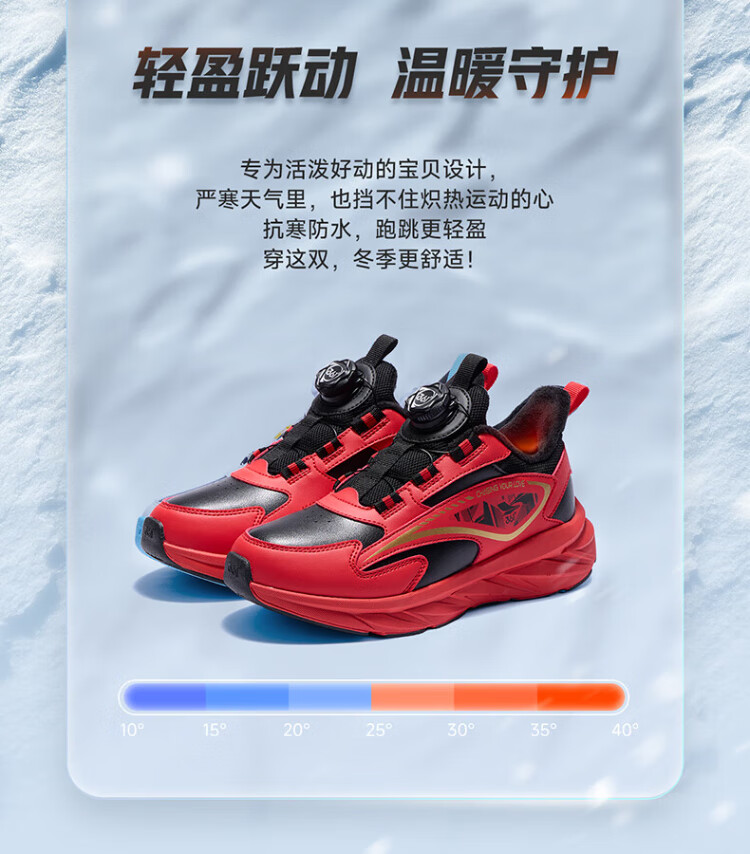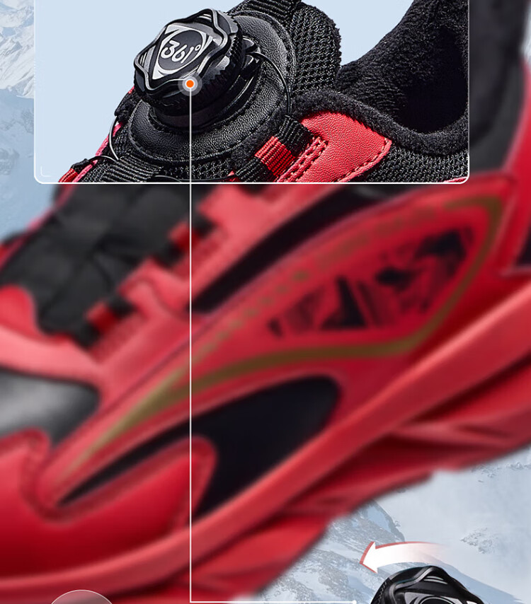 361 Children's Cotton Shoes 2025 Winter Men's and Women's Small, Medium and Large Children's Leather and Velvet Warm and Flexible Sports Running Shoes Red 35