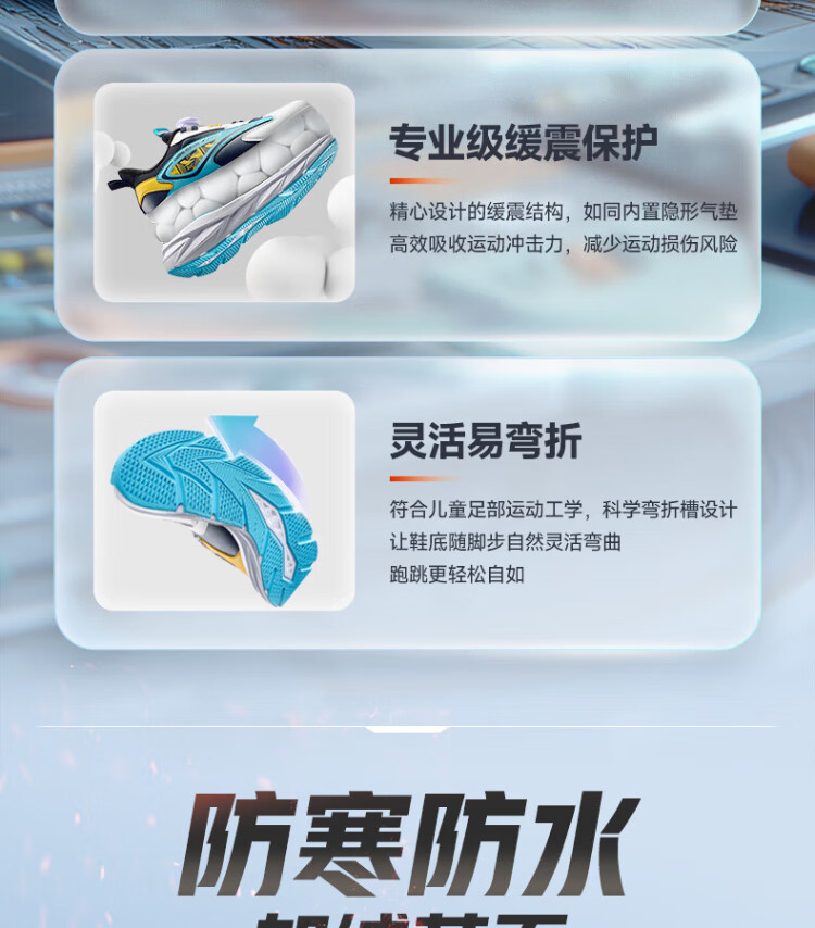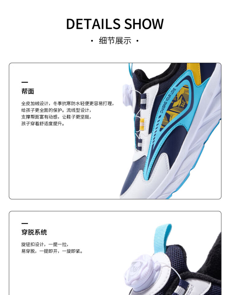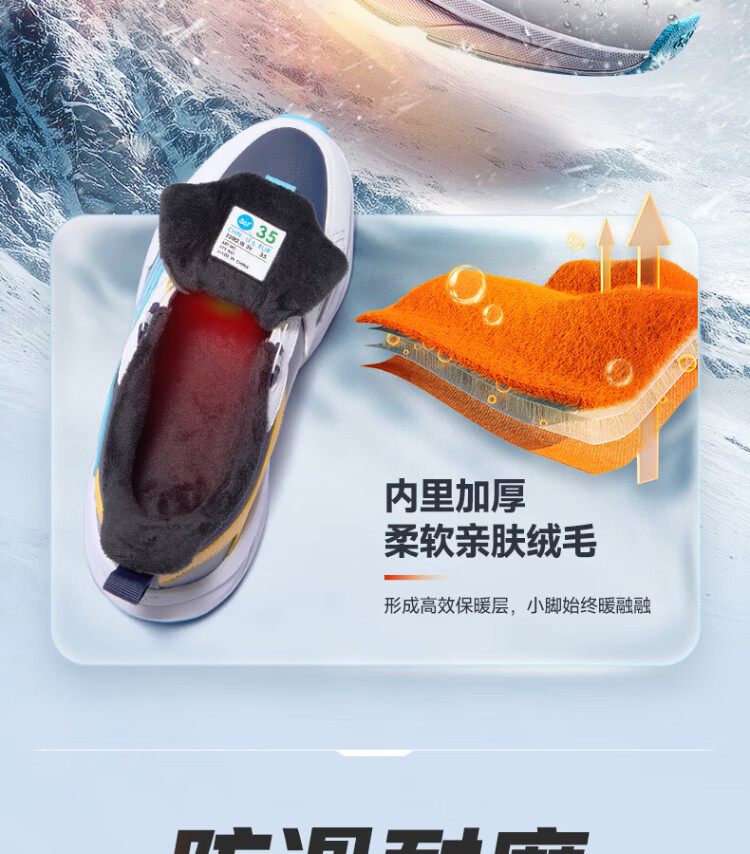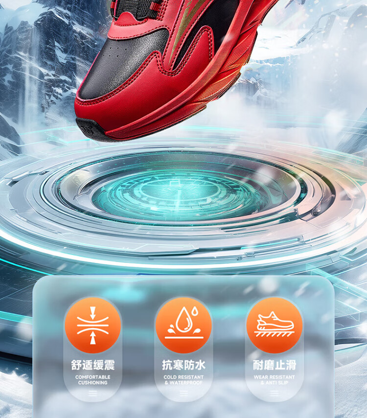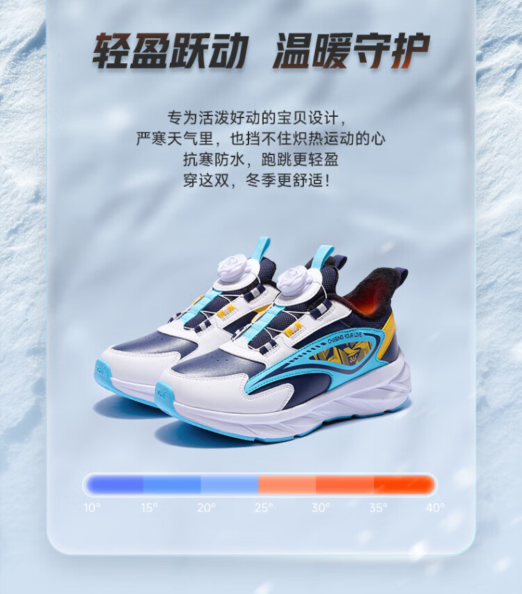 361 Children's Cotton Shoes 2025 Winter Men's and Women's Small, Medium and Large Children's Leather and Velvet Warm and Flexible Sports Running Shoes Red 35