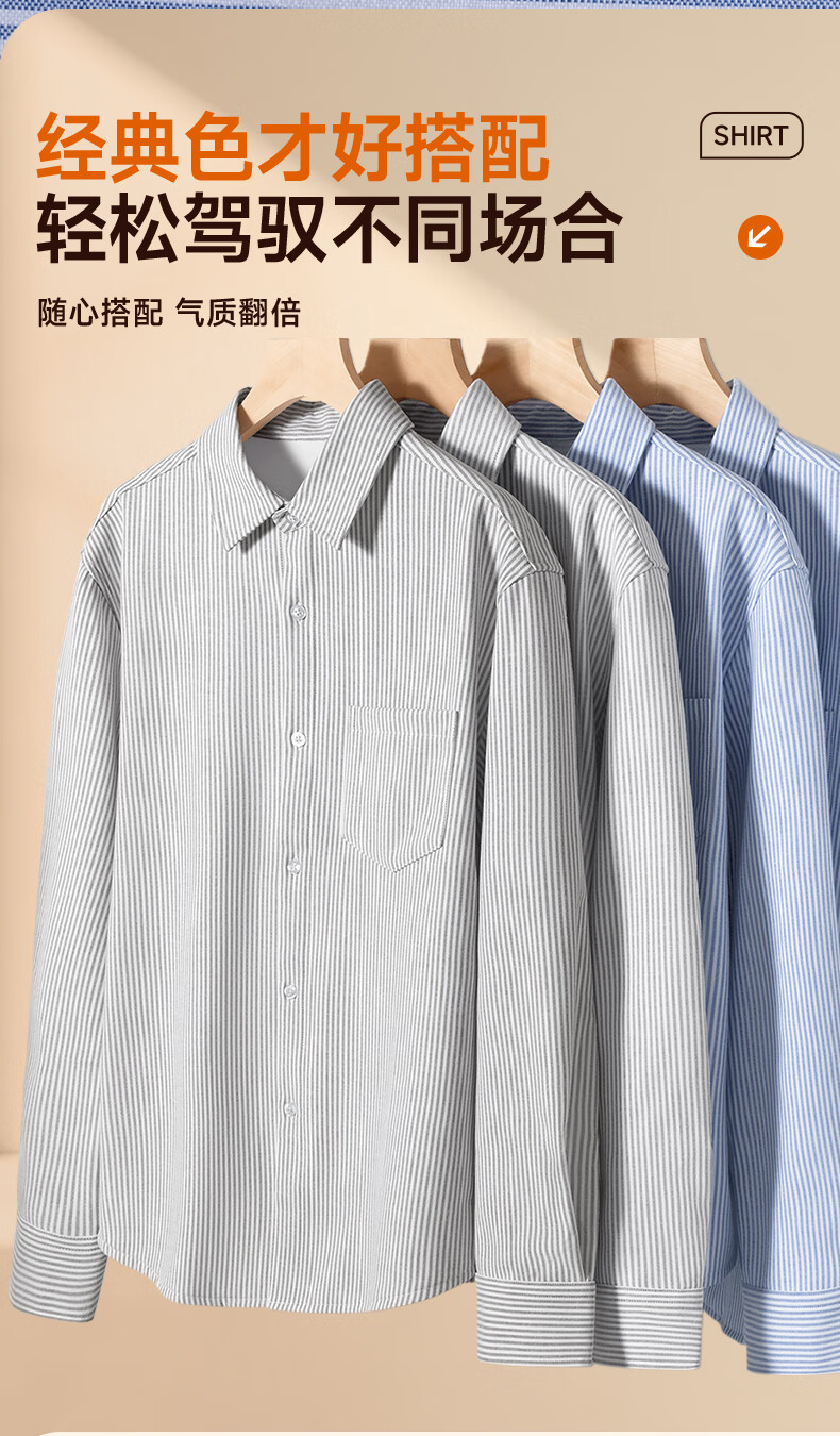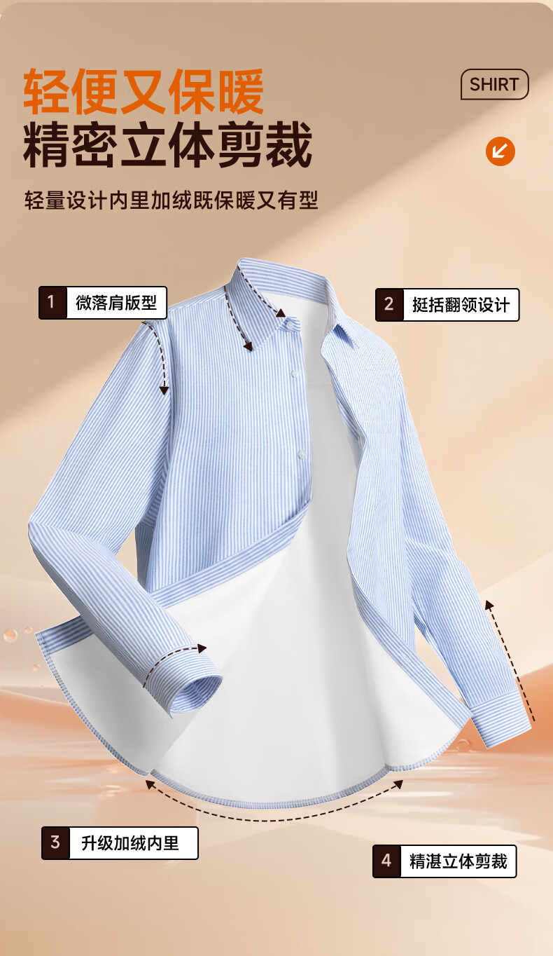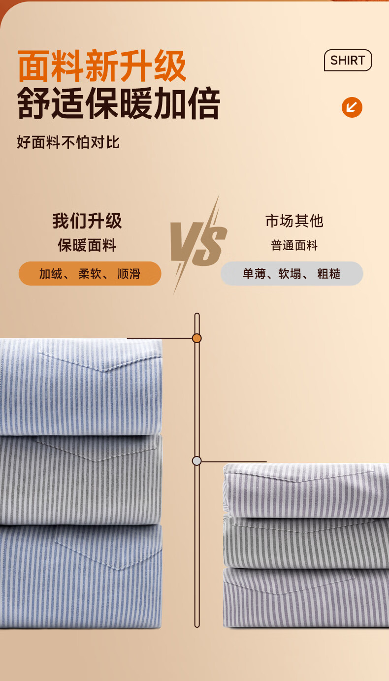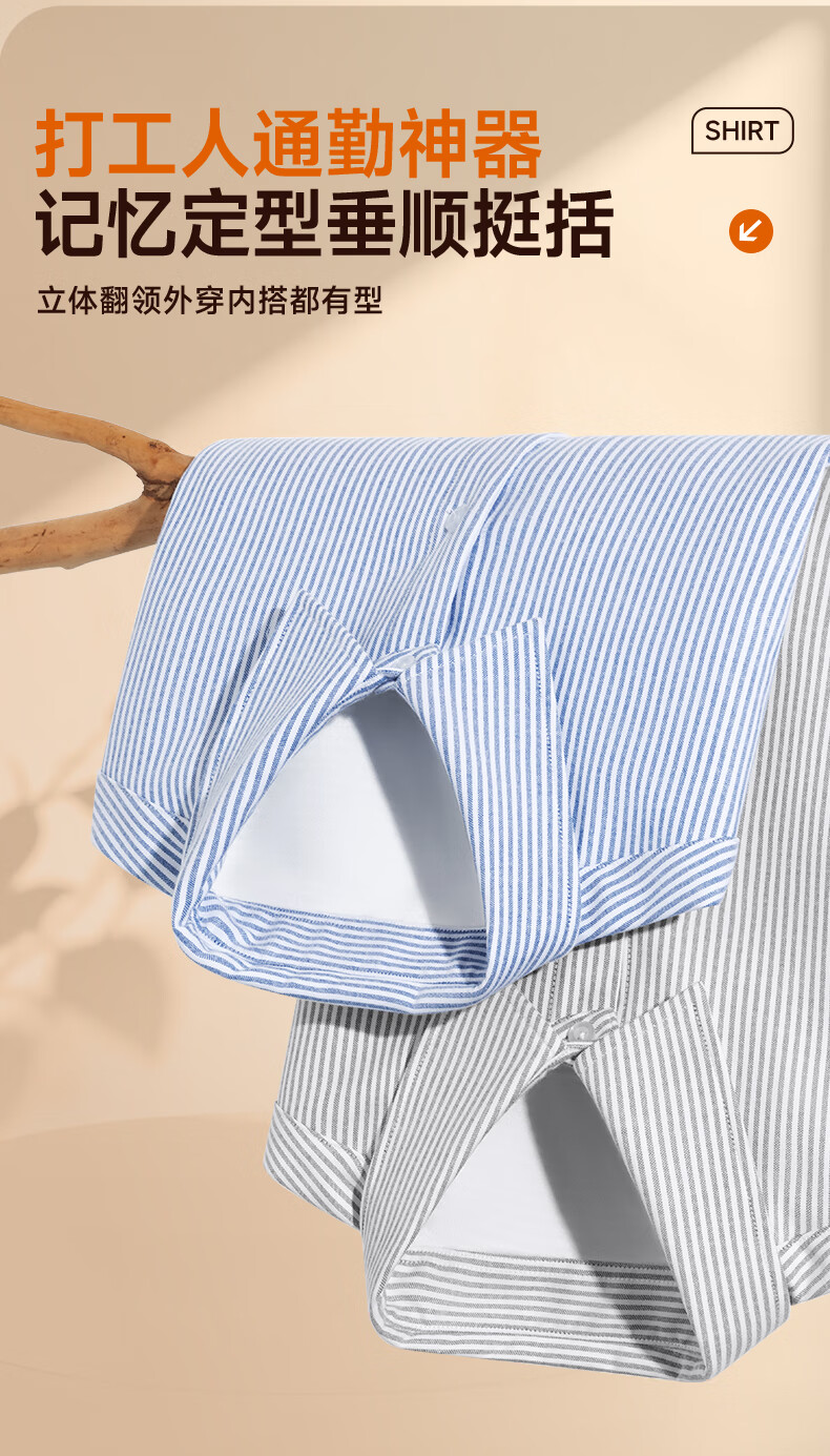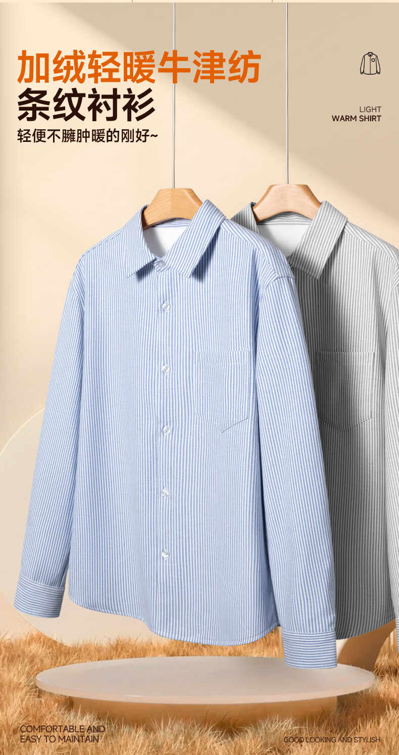 VANCL velvet shirt men's winter commuting inner wear Oxford striped long-sleeved classic lapel shirt T gray and white strips XL