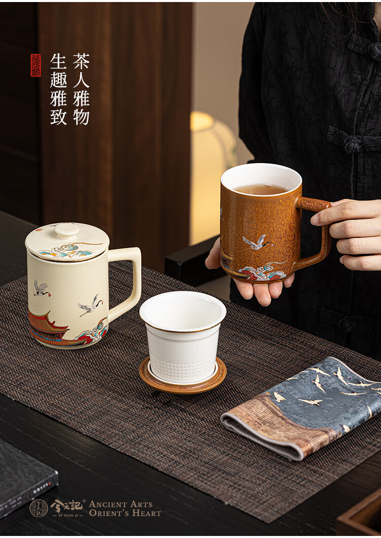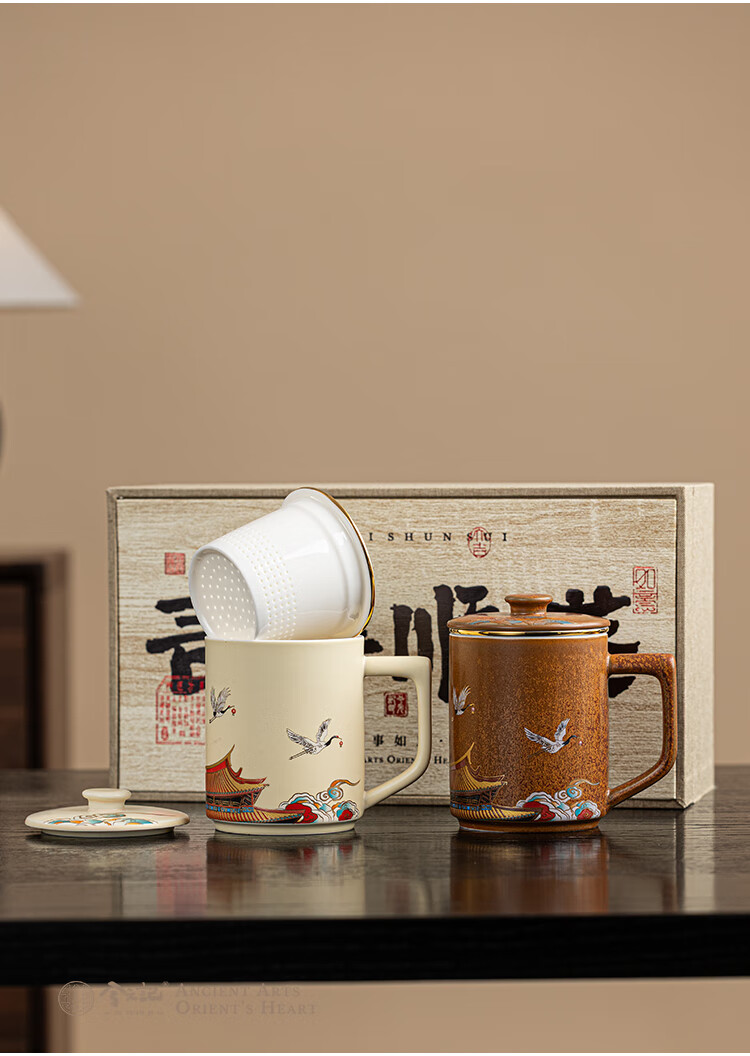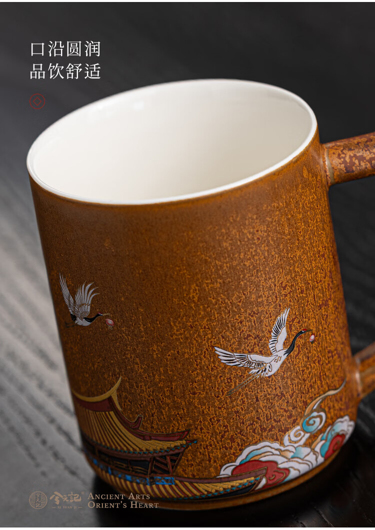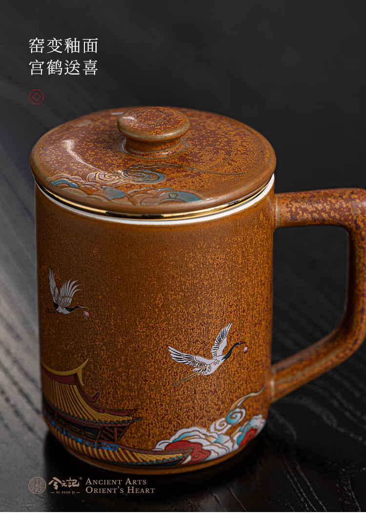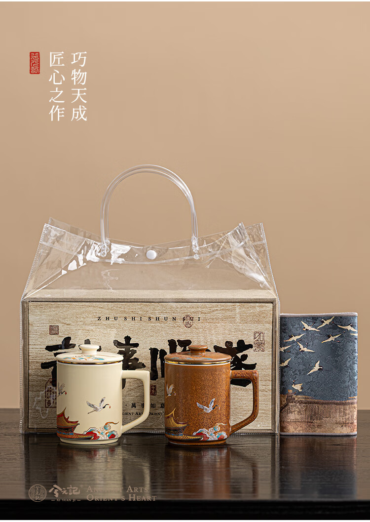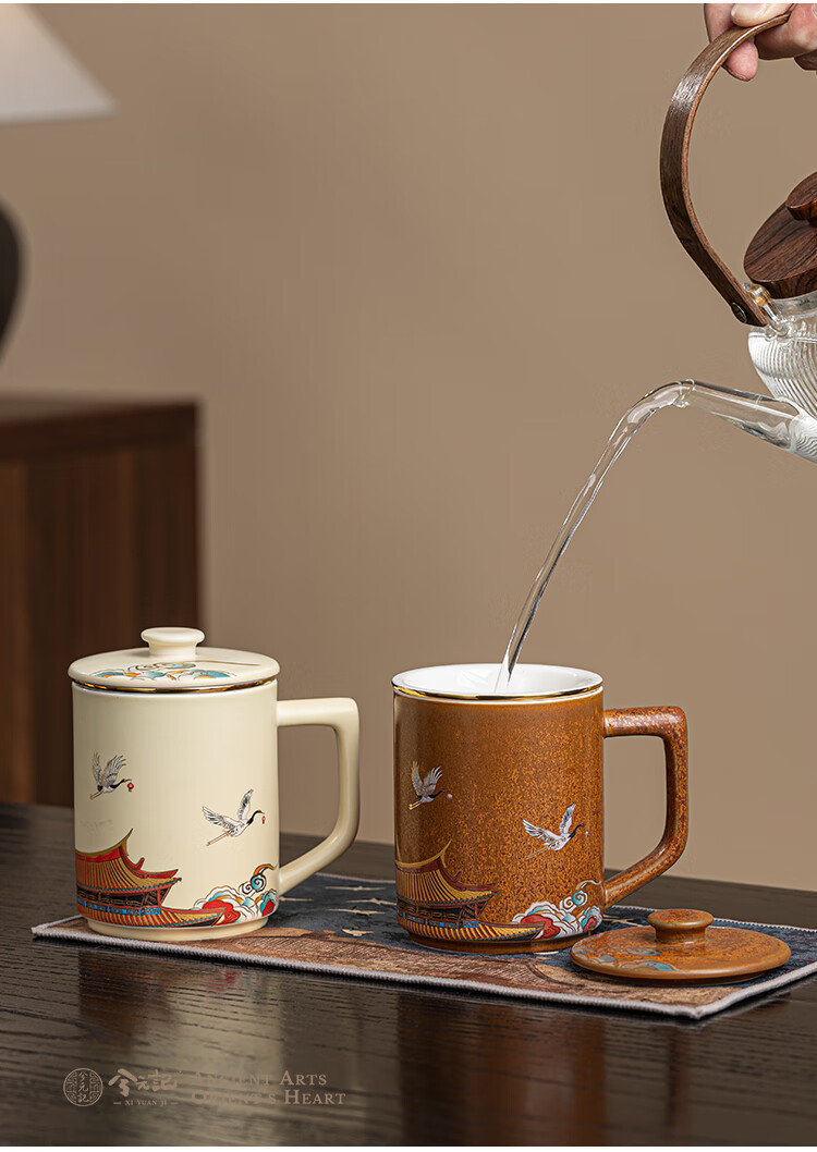 Xiyuanji Forbidden City Cultural and Creative Palace Crane Ceramic Tea Cup Couple Cup High-end Souvenir for Friend's Dad Birthday Housewarming Gift