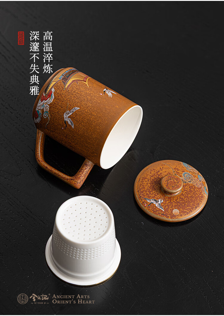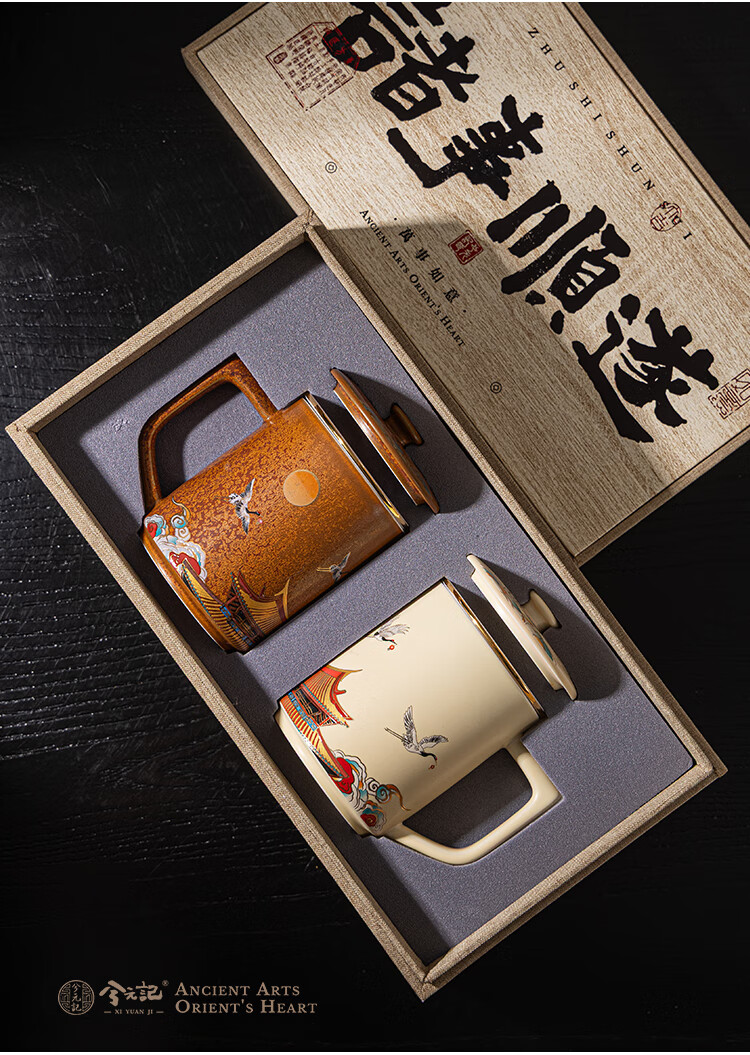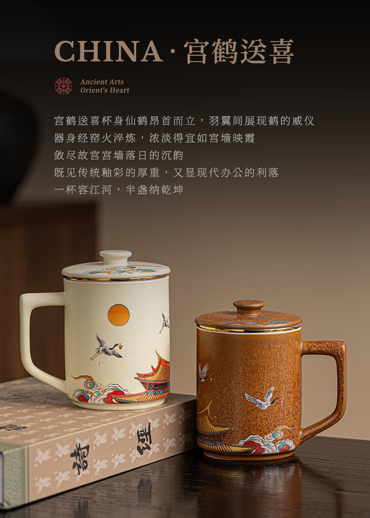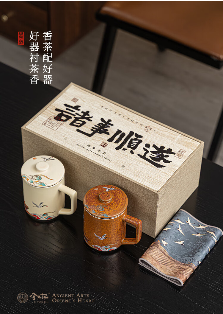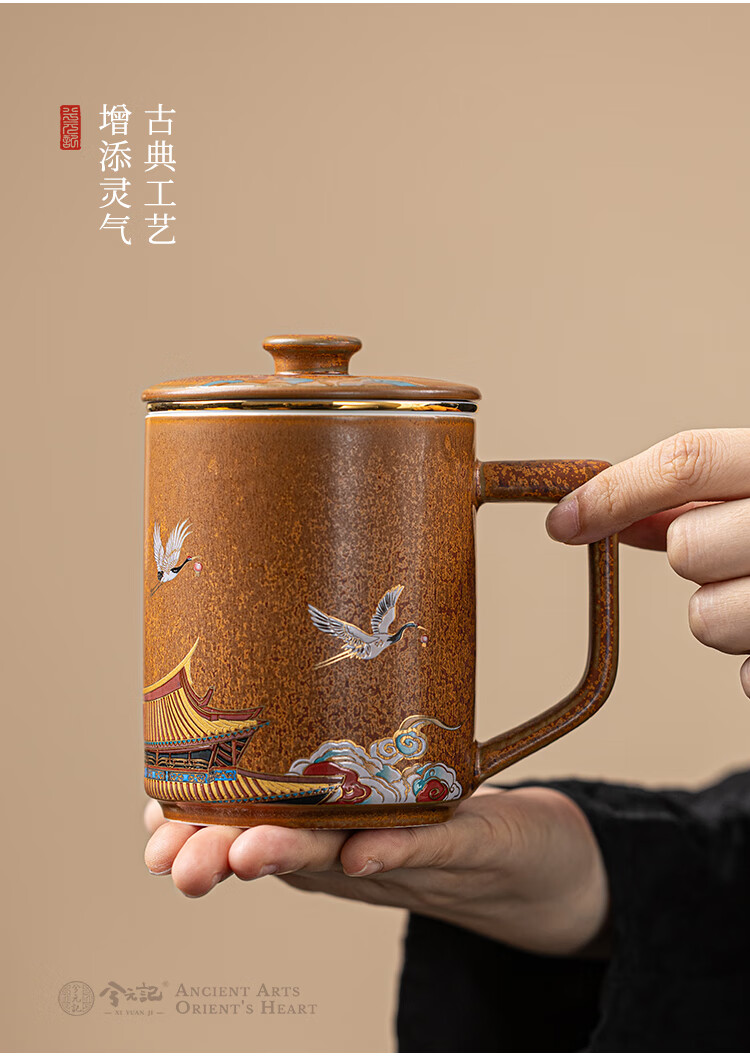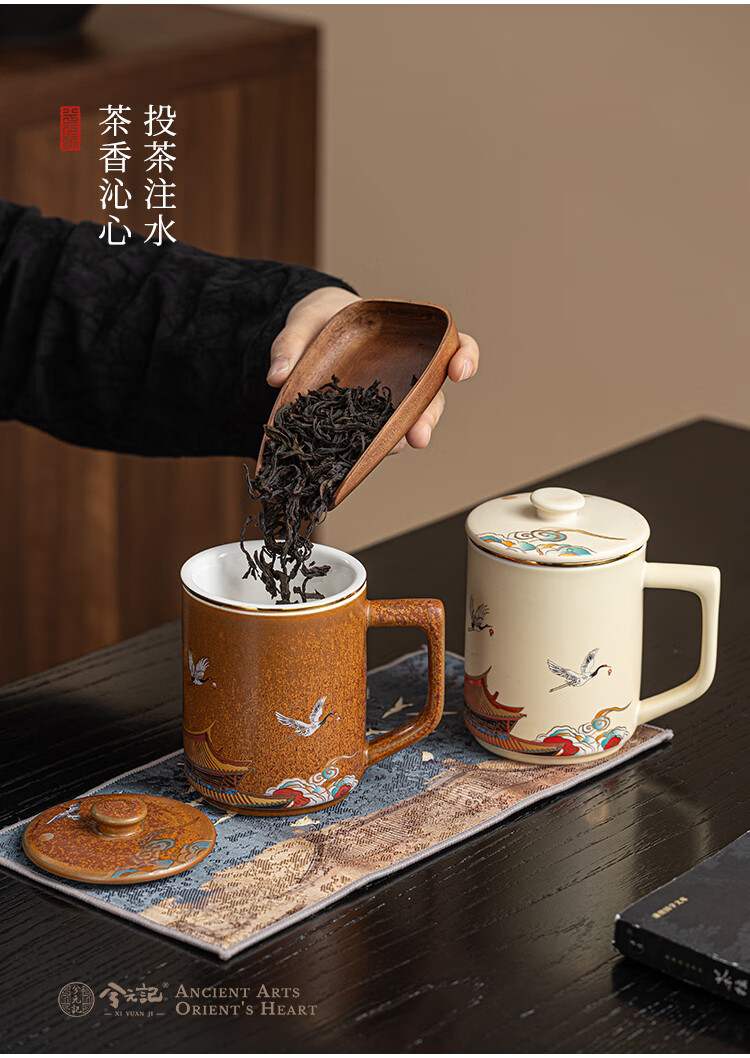Xiyuanji Forbidden City Cultural and Creative Palace Crane Ceramic Tea Cup Couple Cup High-end Souvenir for Friend's Dad Birthday Housewarming Gift