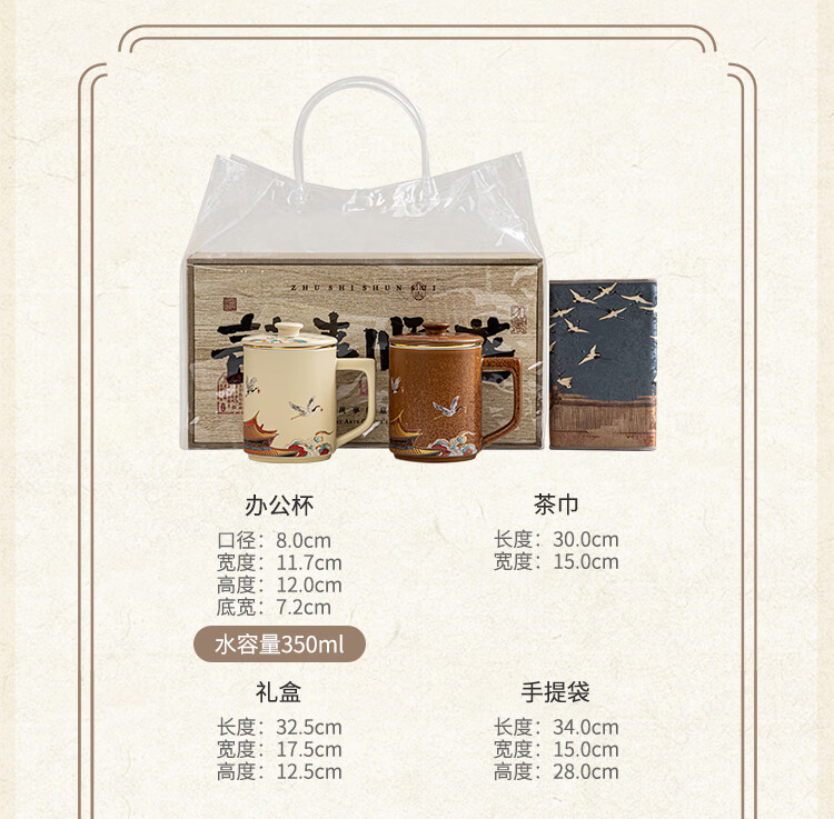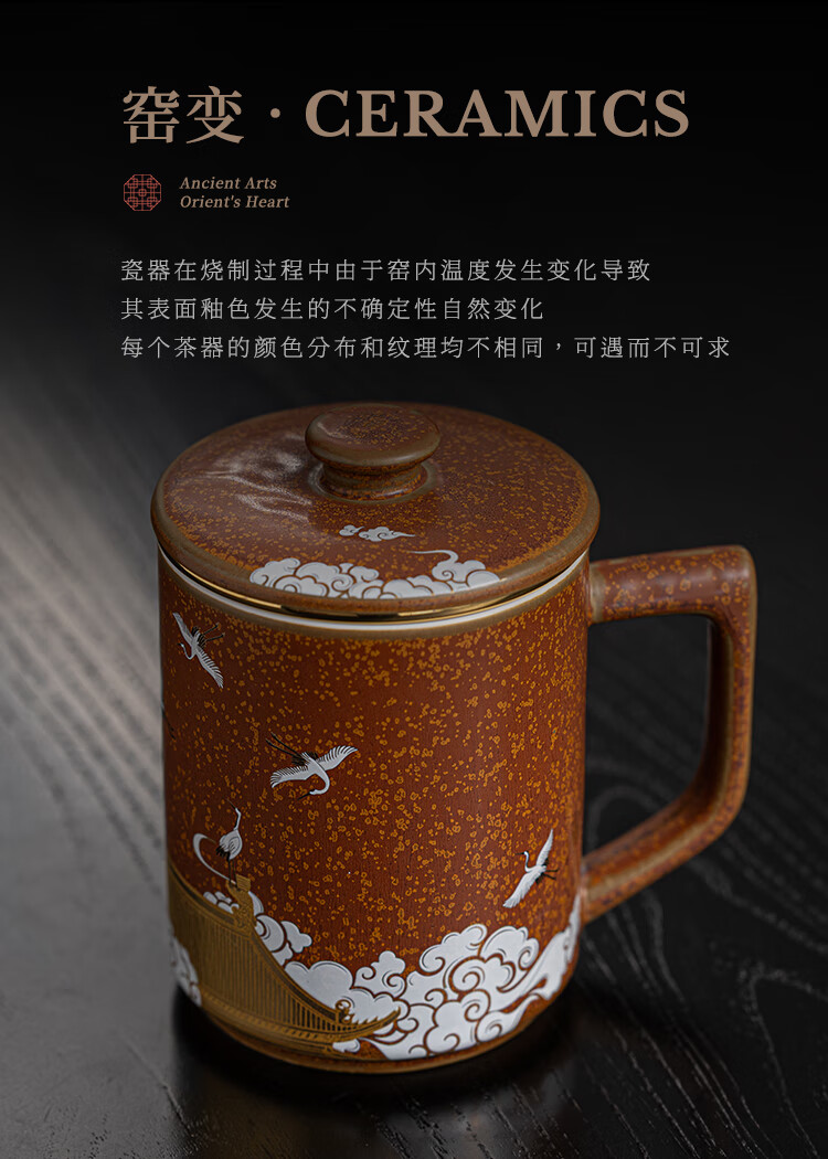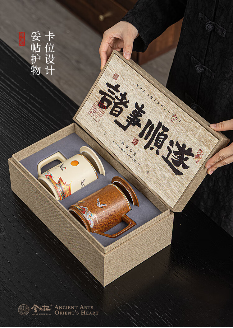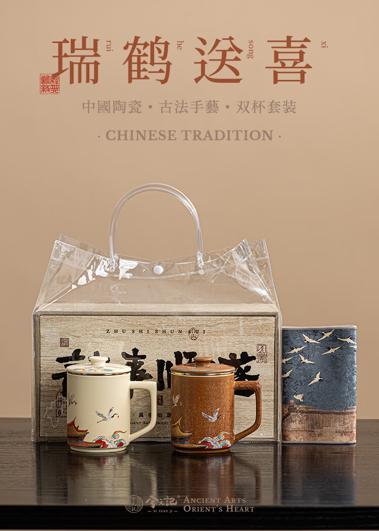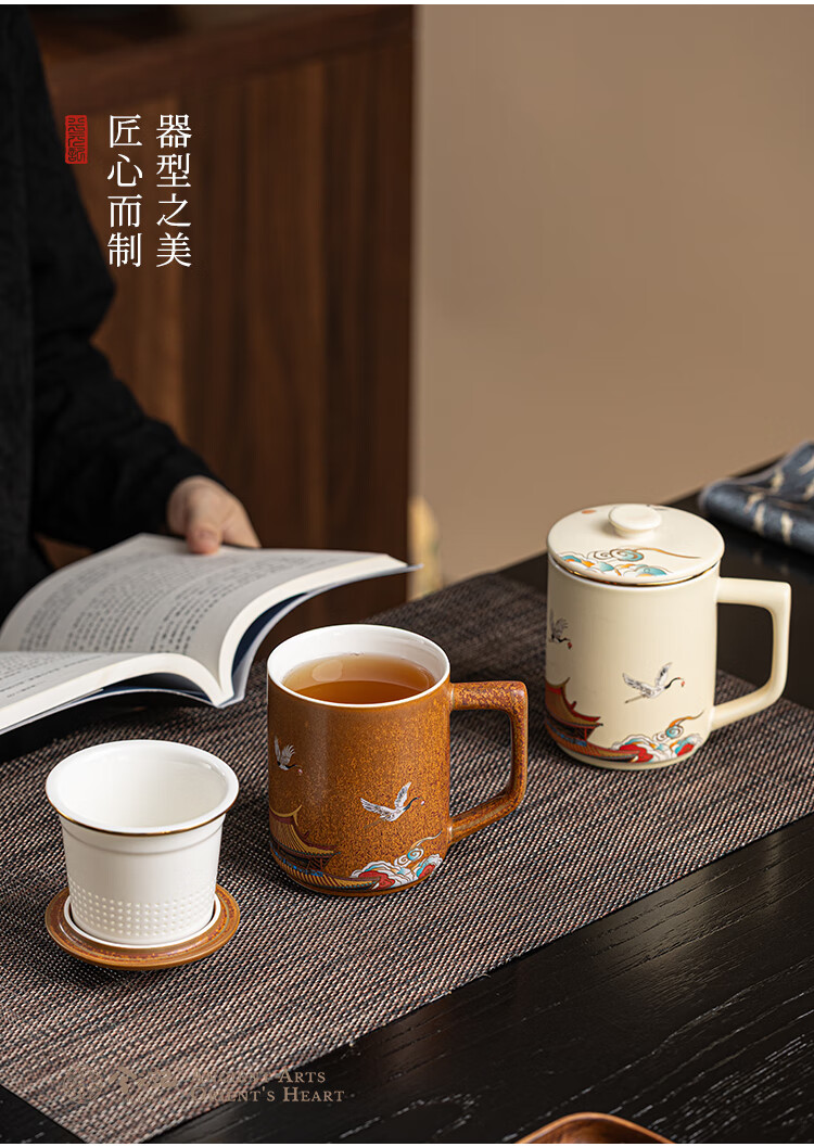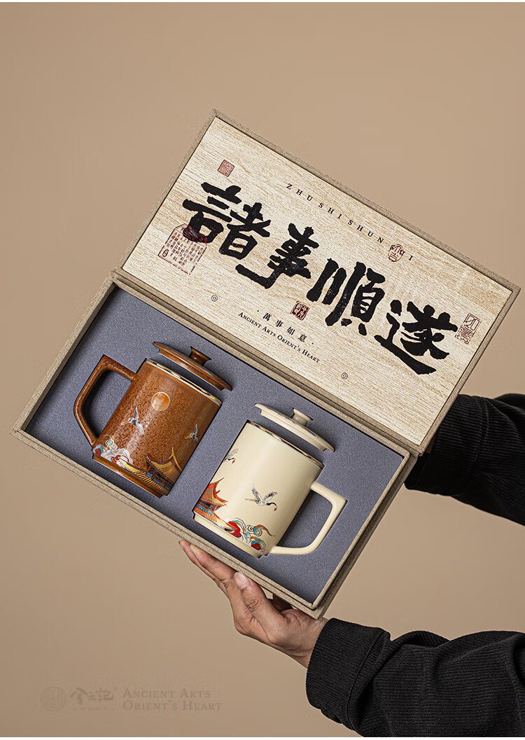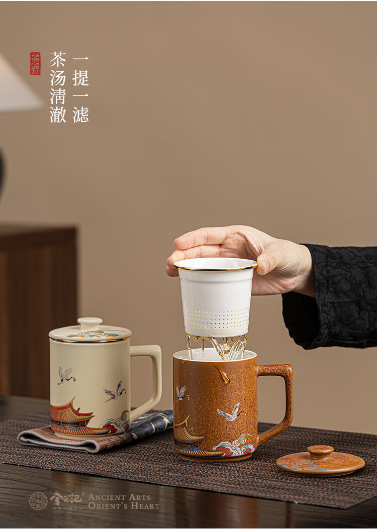 Xiyuanji Forbidden City Cultural and Creative Palace Crane Ceramic Tea Cup Couple Cup High-end Souvenir for Friend's Dad Birthday Housewarming Gift