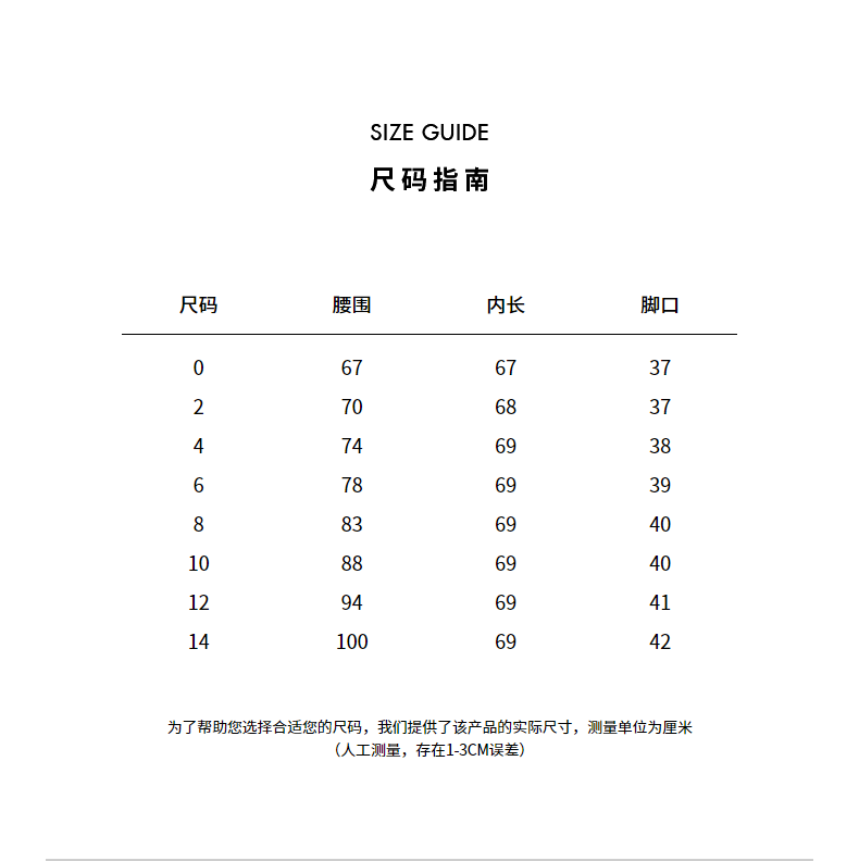 Outseam (cm) 99 cm 101.5 cm 104 cm 106.5 cm 109 cm