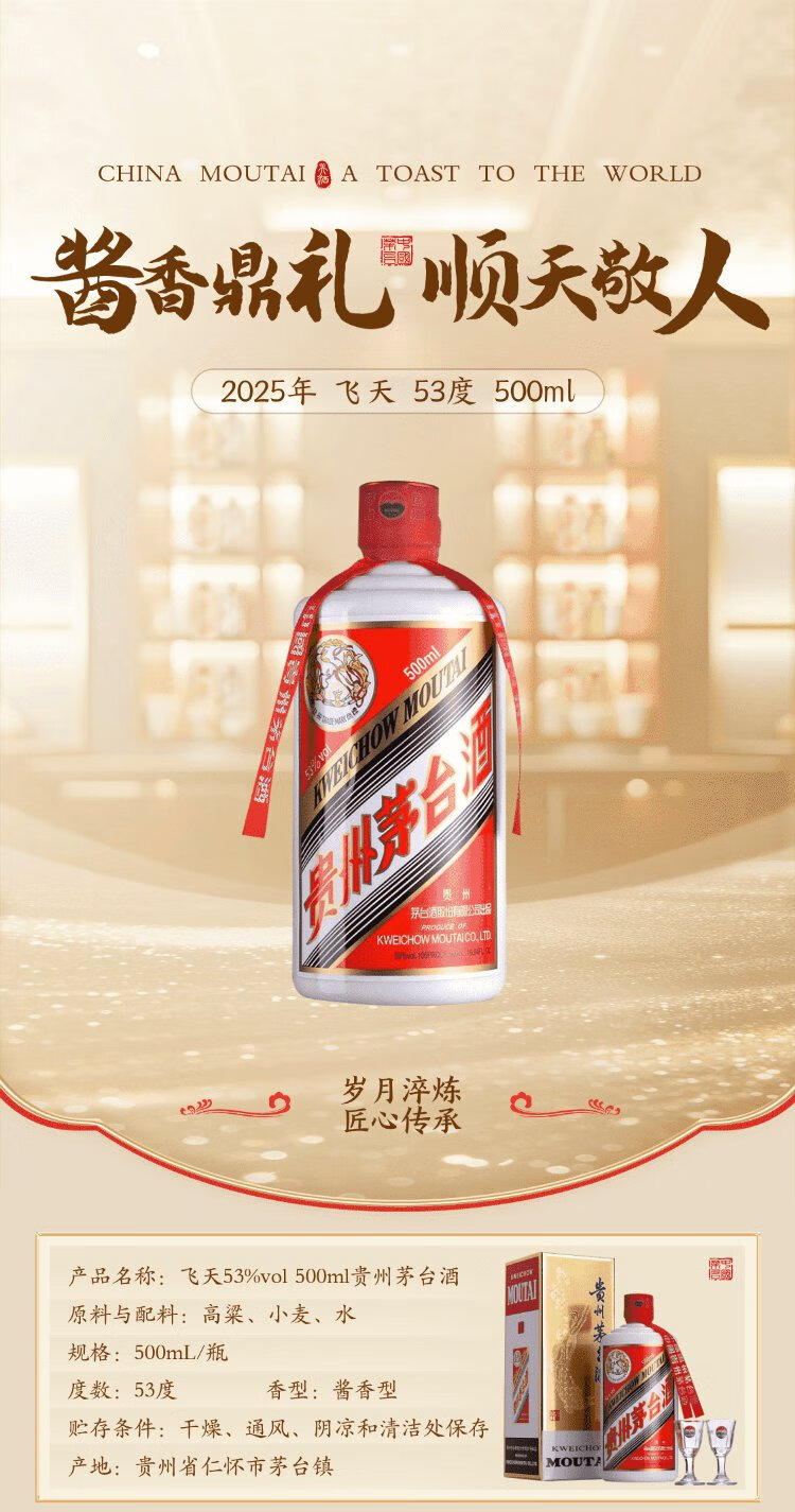 Moutai 2025 Feitian Maotai-flavor liquor 53% 500ml single bottle Famous Liquor Appreciation