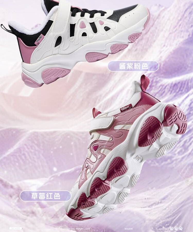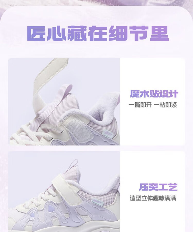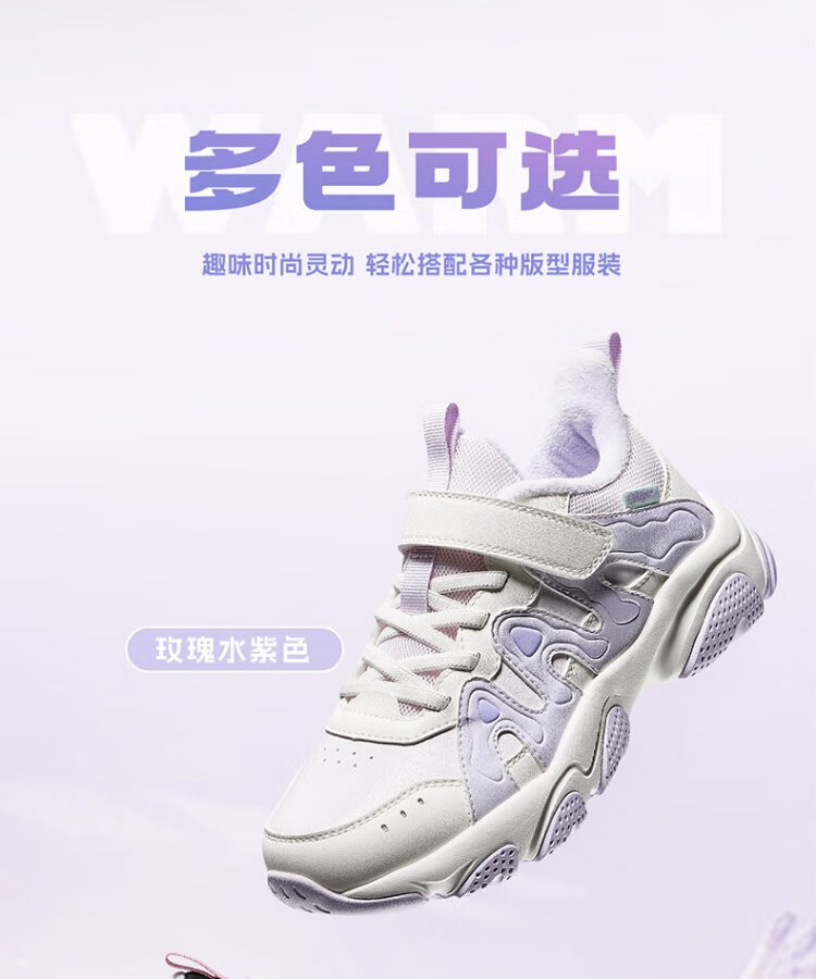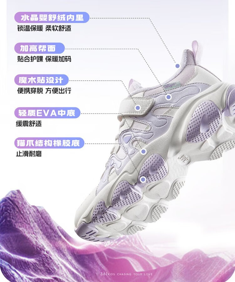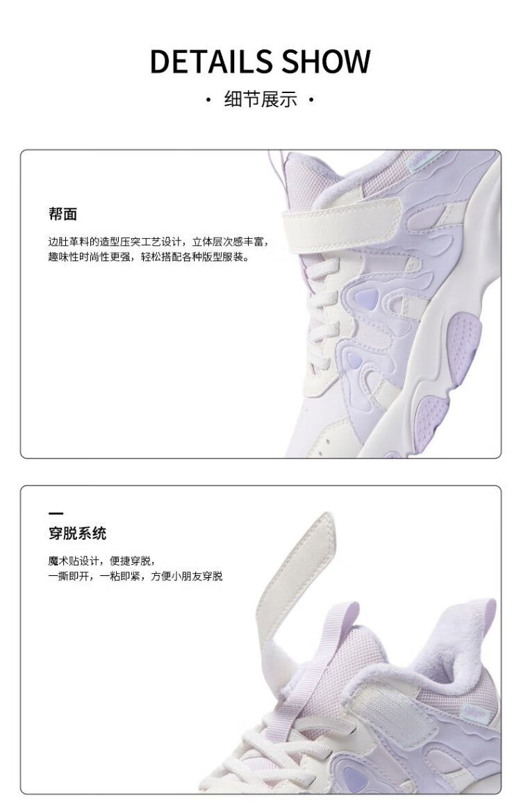 361 Children's Cotton Shoes 2025 Winter Women's Large Leather and Velvet Warm Cushioning and Wear-Resistant Sports Shoes Purple 37