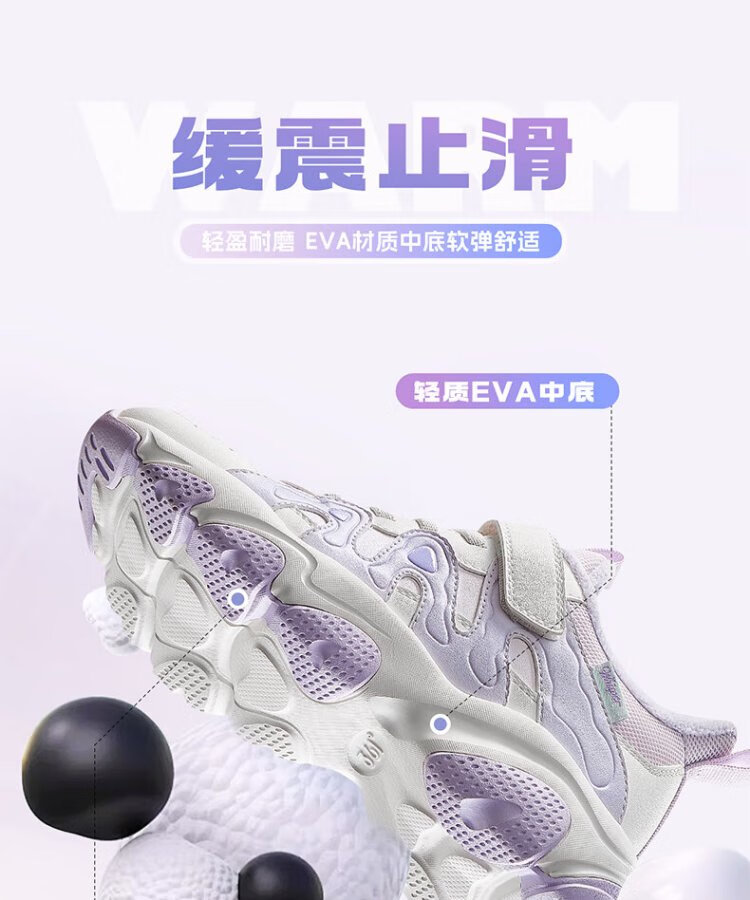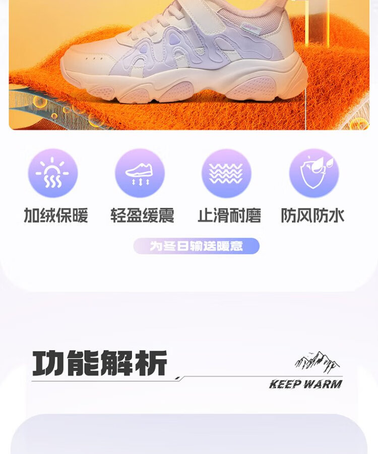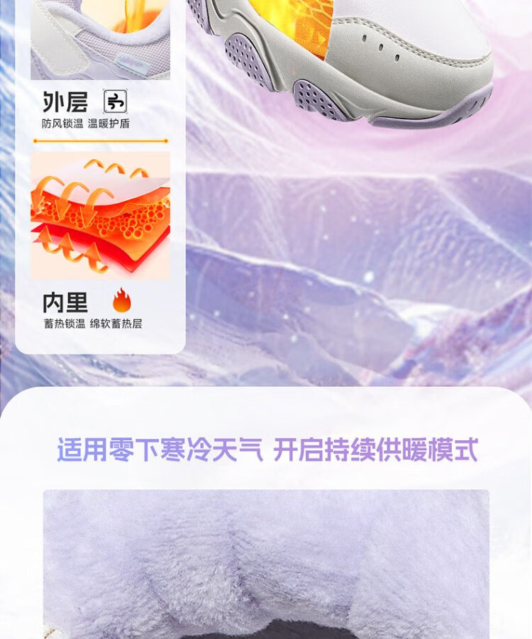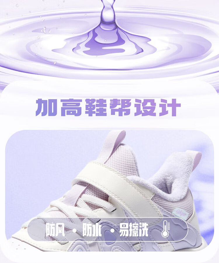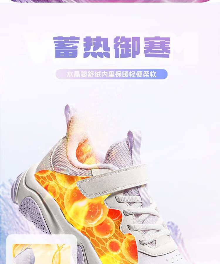 361 Children's Cotton Shoes 2025 Winter Women's Large Leather and Velvet Warm Cushioning and Wear-Resistant Sports Shoes Purple 37