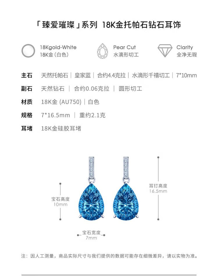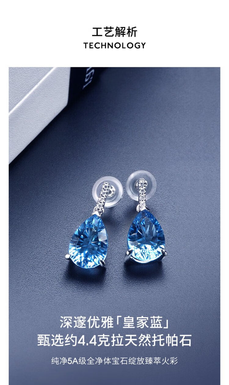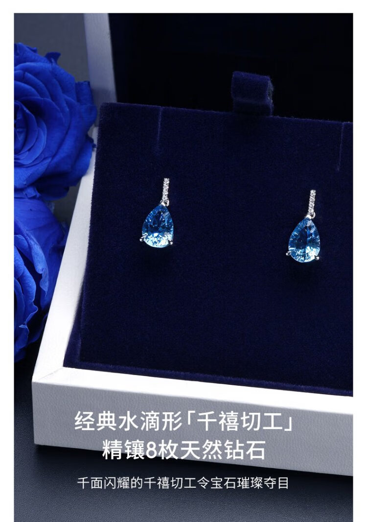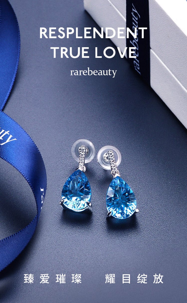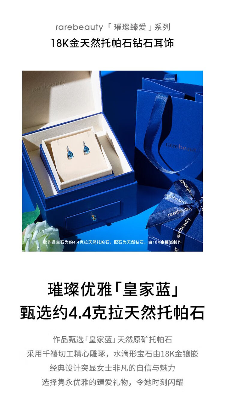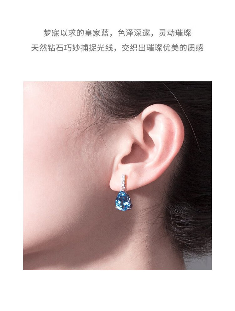 Rarebeauty 18k gold royal blue topaz earrings women's gemstone earrings high-end light luxury jewelry birthday gift for girlfriend