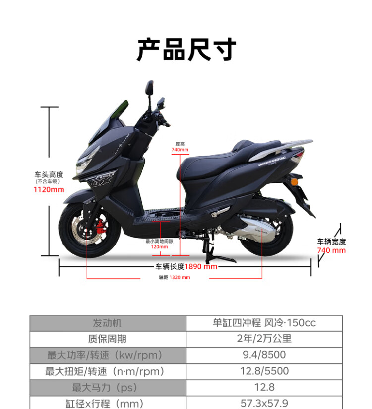 Breakthrough GX150 dual disc brake ABS keyless start TCS fuel scooter can be purchased in black high-end version