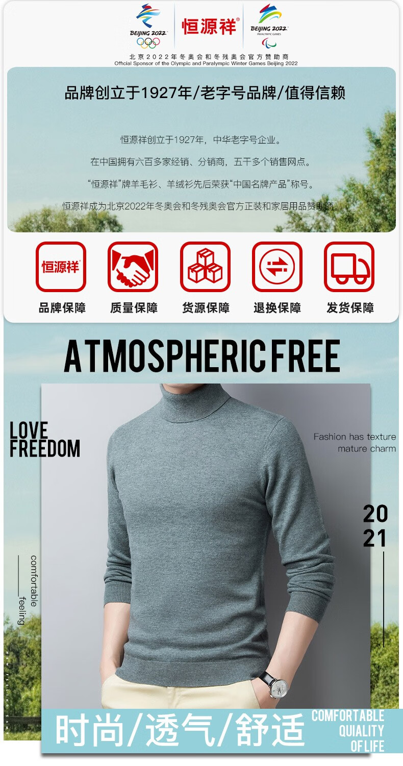 Hengyuanxiang sweater men's turtleneck winter long-sleeved 100% pure woolen sweater winter thick warm middle-aged men's base HYX5820 black (280g thin) XL (175) (suitable for 130-145Jin Jin equals 0.5 kg)