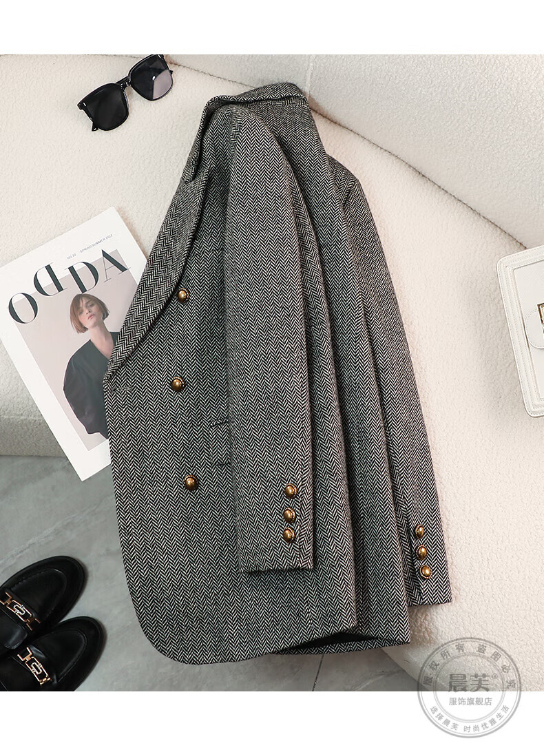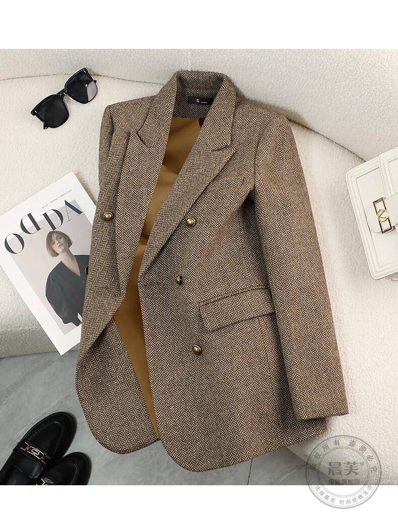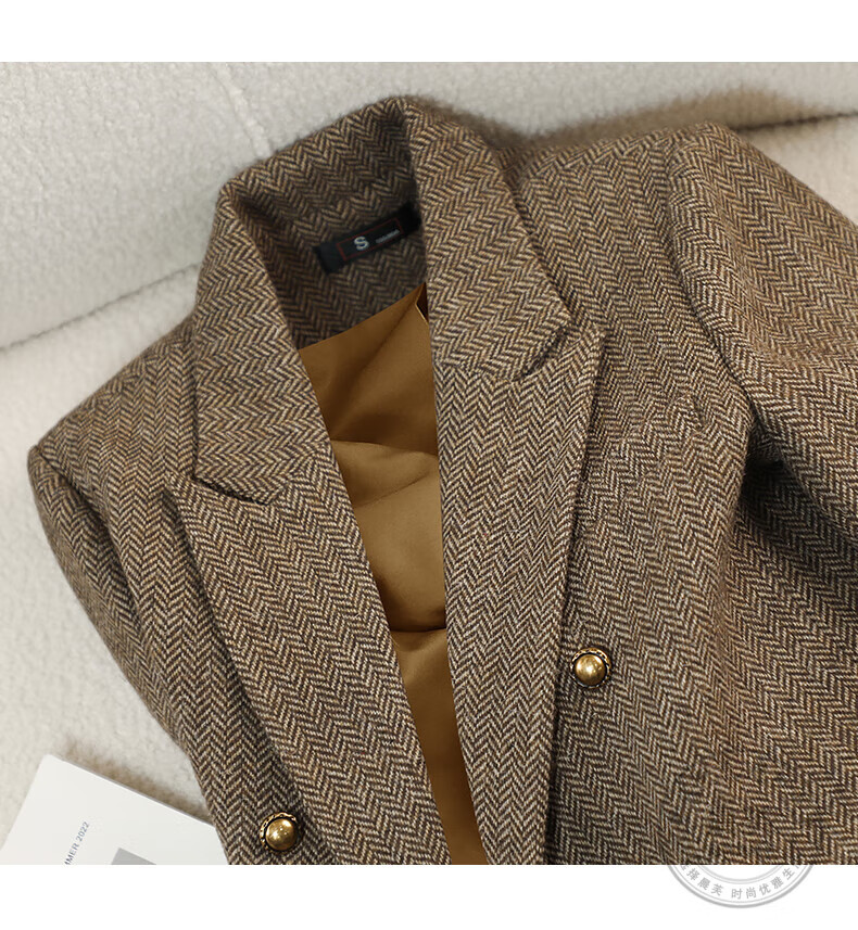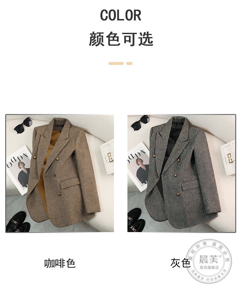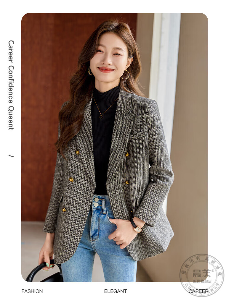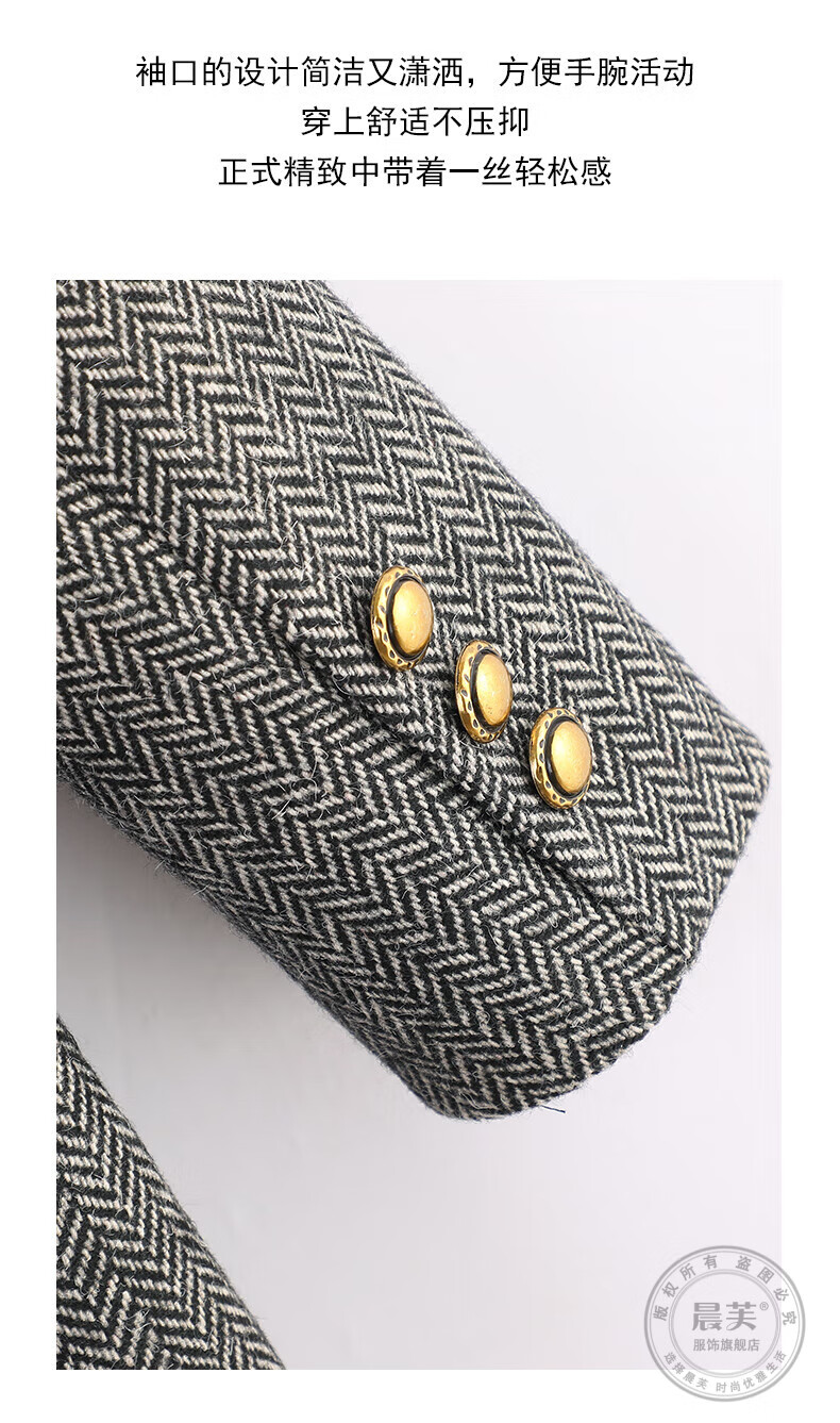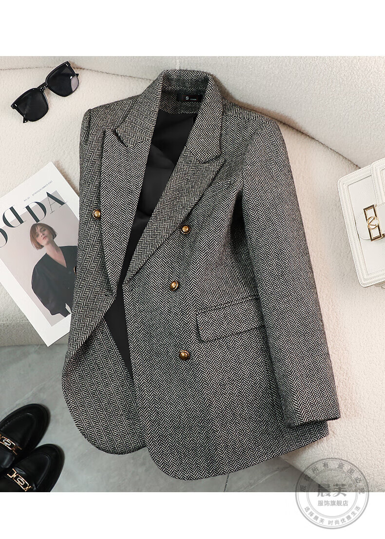 Chenfu woolen suit jacket for women spring and autumn new high-end wool small back slit casual fashion temperament suit regular style gray suit L recommended 105-114 Jin Jin equals 0.5 kg